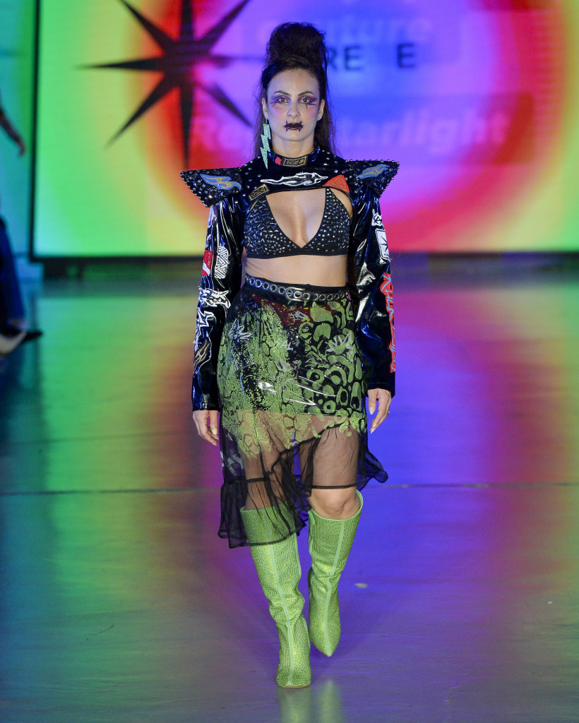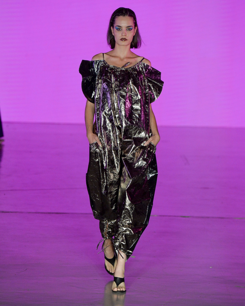 A Fkawallys levou à passarela a vibração intensa do “Rock Doido”, expressão cultural paraense que mistura tecnobrega, funk, carimbó e eletrônica em festas marcadas por luz, movimento e identidade. Para esta temporada, a marca transportou essa energia para São Paulo em parceria com Rege Starlight, traduzindo o universo das aparelhagens em moda: cores pulsantes, atitude irreverente e uma estética que celebra tecnologia popular e orgulho regional.