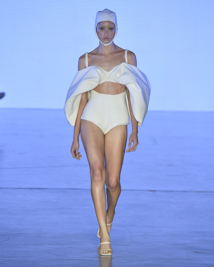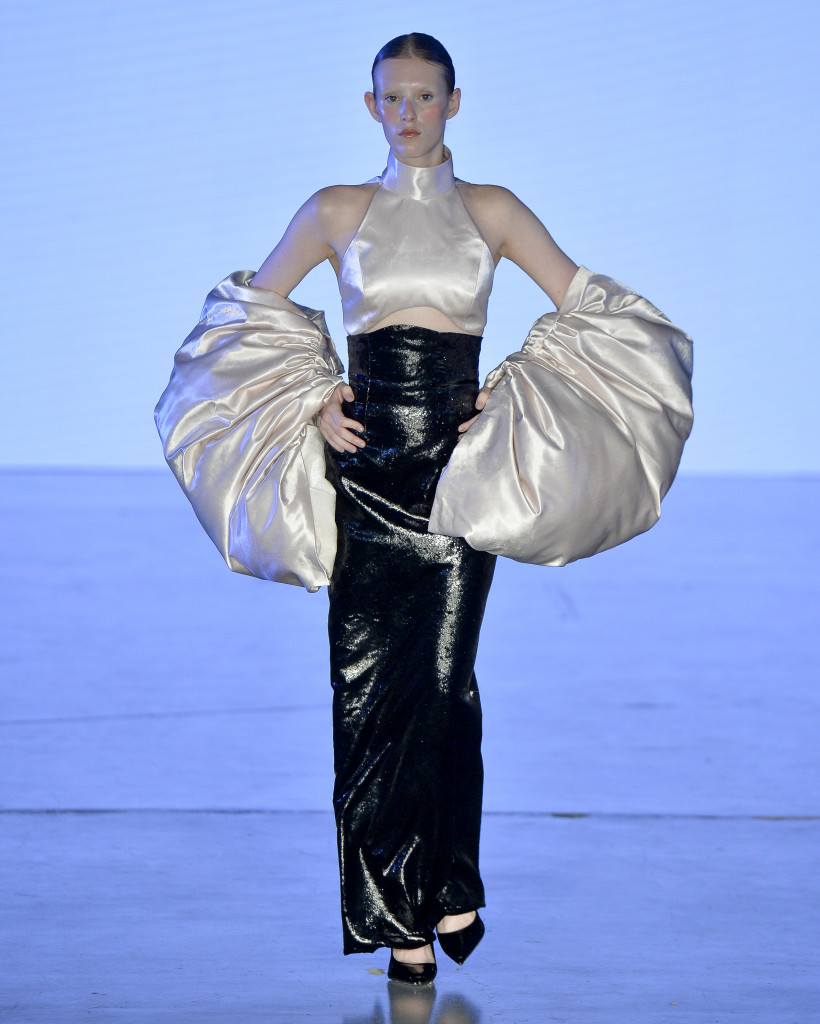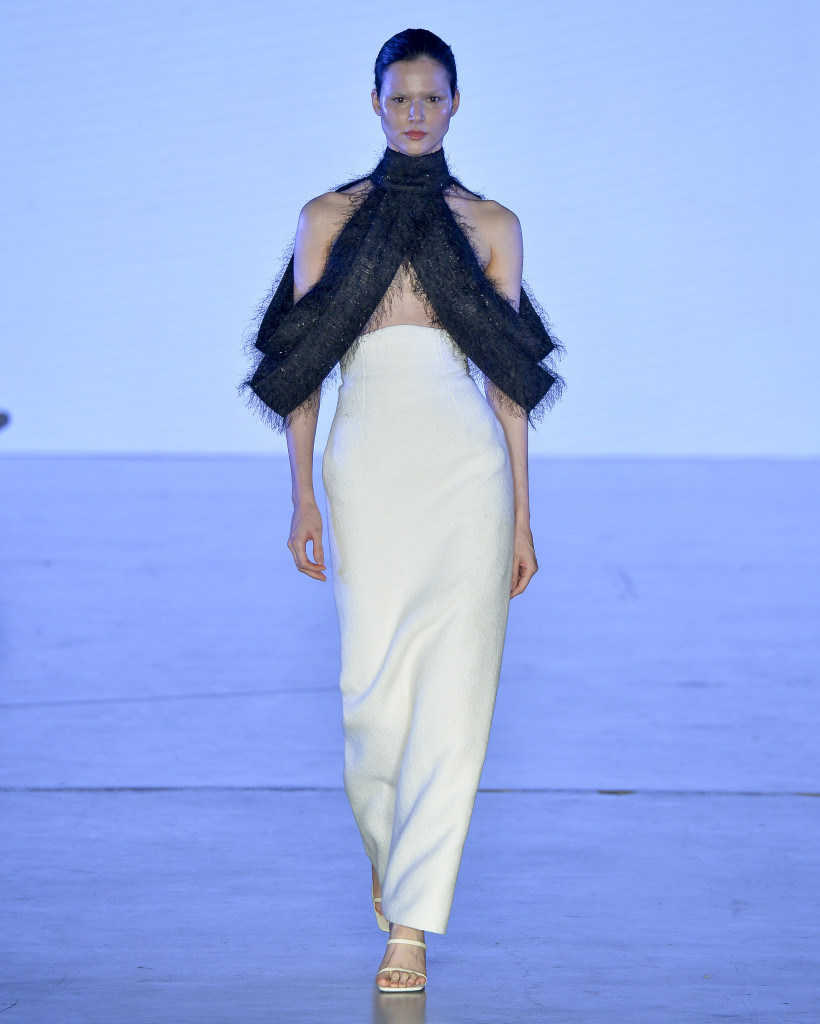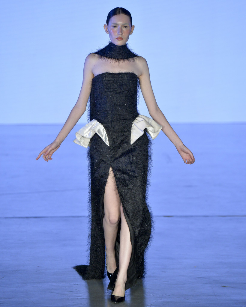 Um ano após seu retorno à Casa de Criadores, a Koia apresentou Hot Couture, coleção que aprofunda a pesquisa da marca sobre o encontro entre alfaiataria clássica e moda festa. Se na temporada anterior a tensão entre estrutura e sedução já se insinuava, agora ela ganha corpo em uma proposta mais madura e assertiva, que brinca com os códigos da haute couture. A marca se apropria de silhuetas e técnicas tradicionais, mas as desloca para um território livre, irreverente e abertamente sensual: volumes exuberantes, recortes que revelam pele e uma modelagem precisa que flerta com o humor.