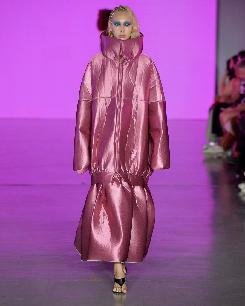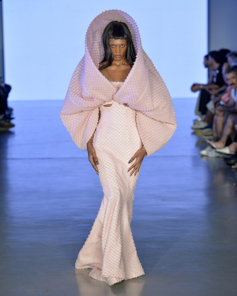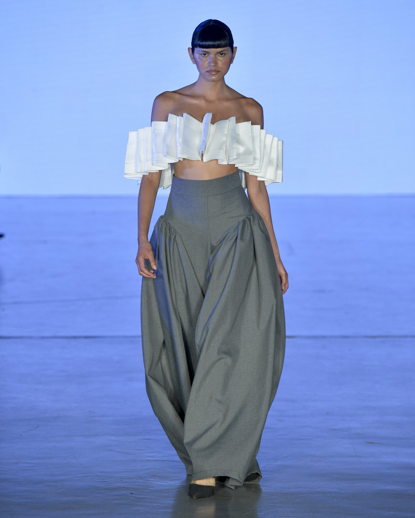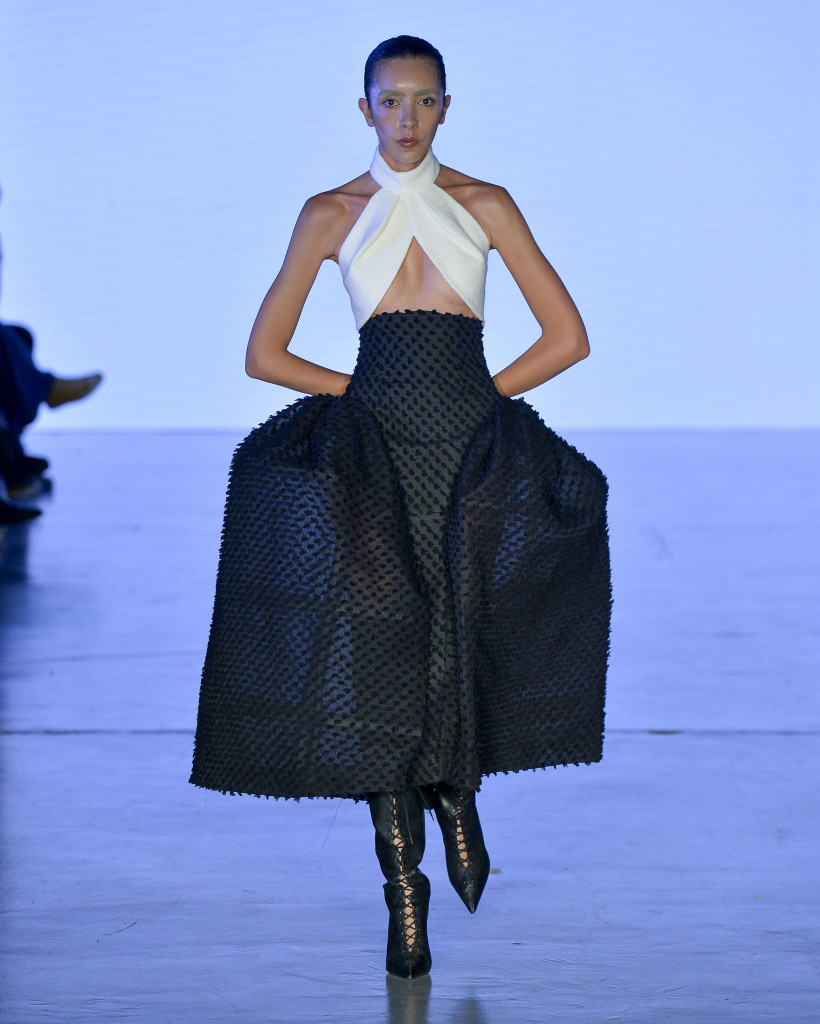Um ano após seu retorno à Casa de Criadores, a Koia apresentou Hot Couture, coleção que aprofunda a pesquisa da marca sobre o encontro entre alfaiataria clássica e moda festa. Se na temporada anterior a tensão entre estrutura e sedução já se insinuava, agora ela ganha corpo em uma proposta mais madura e assertiva, que brinca com os códigos da haute couture. A marca se apropria de silhuetas e técnicas tradicionais, mas as desloca para um território livre, irreverente e abertamente sensual: volumes exuberantes, recortes que revelam pele e uma modelagem precisa que flerta com o humor.