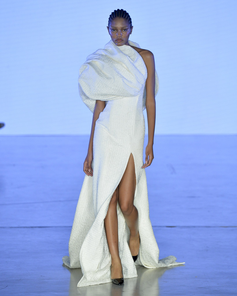 Em sua segunda participação na Casa de Criadores, Marisa Moura apresentou “Memórias Afetivas”, uma coleção ancorada na ideia de que o conhecimento ancestral é sempre coletivo: transmitido de geração em geração, sustentado pelo afeto e pela força das narrativas que mantêm viva a memória negra como farol para o futuro.