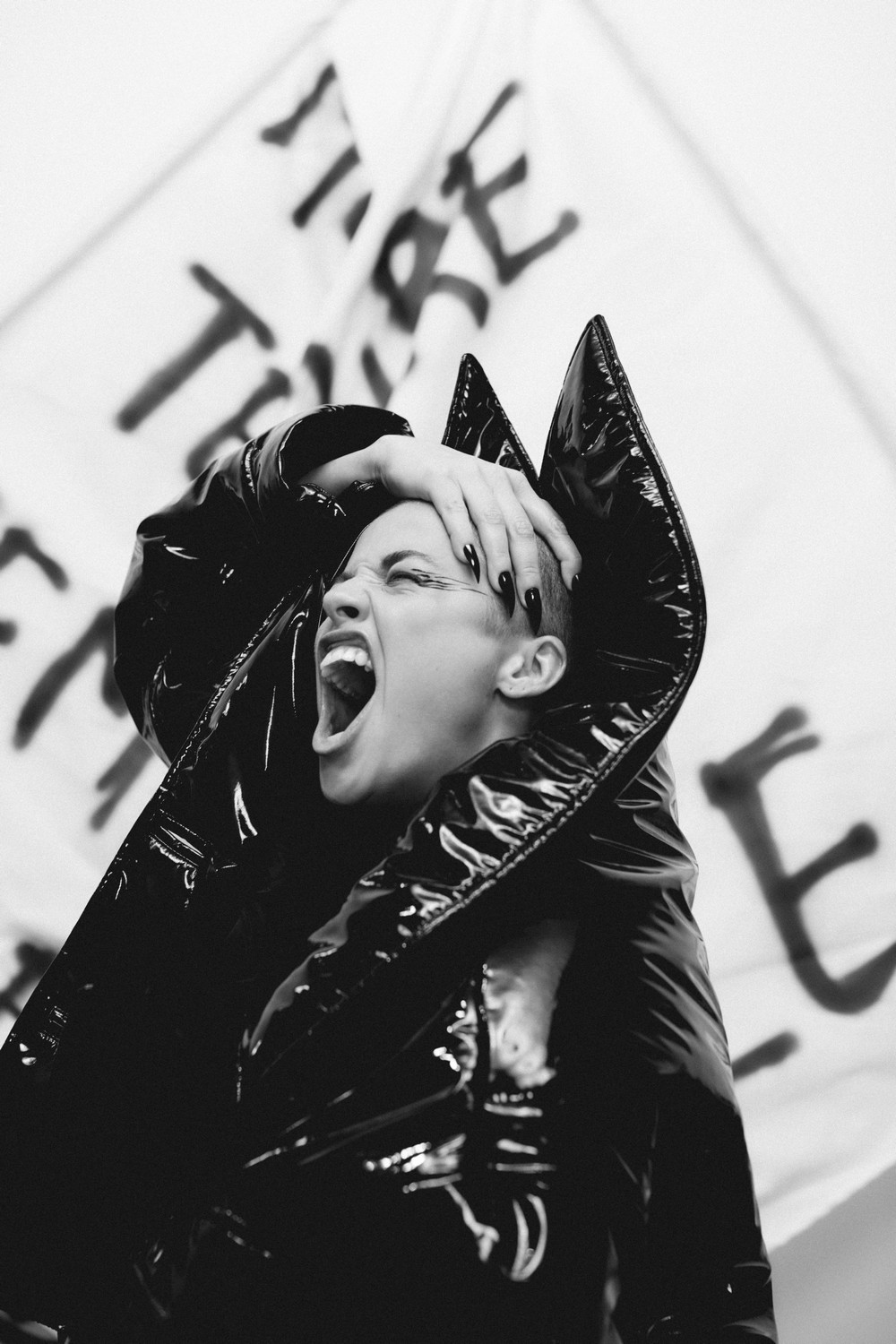 Naki Depass veste Yves Saint Laurent por Anthony Vaccarello – Foto: Ace Amir, com styling de Jahulie Elizalde, edição executiva de Filipa Bleck, cabelo de Erol Karadag e maquiagem de Christyna Kay