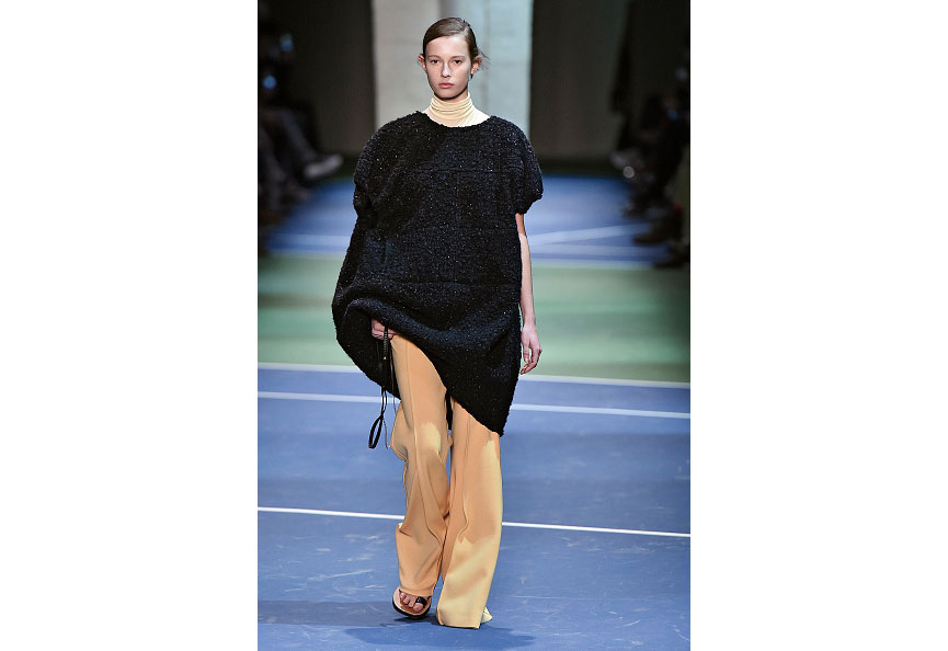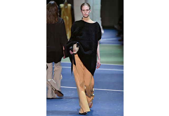 Roupas demais, acessórios demais, coleções demais, tendências demais. Quando tudo é demais, é no simples e familiar que encontramos conforto e segurança. E assim, no inverno 2016 da Céline, Phoebe Philo deixa um pouco de lado a exploração (e experimentação) sobre o que define o vestir da mulher do século 21, para se concentrar naquilo que fez sua fama à frente da marca: a silhueta ampla e alongada, sempre confortável e indefectivelmente prática. Pantalonas com leve corte flare, sob maxicasacos, túnicas transparentes e ajustadas sobre camisas amplas, suéteres de proporções infladas com com blusas de gola rulê, todos os elementos-chave do closet da mulher Céline, agora um pouco mais oversized e sempre meio amassadinha e torções, como de roupas que custamos a desapegar (e tirar do corpo).