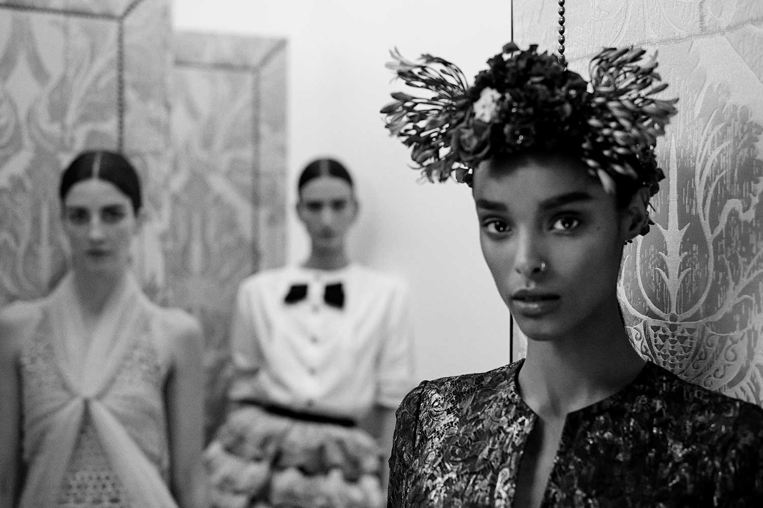 A sensualidade dos ombros a mostra com finas tiras bordadas ganha reforço em sutis transparências que aparecem em saias, mas em especial no vestido preto ao fim do desfile. A aguardada noiva deste casamento inventado por Viard surge a cavalo com bordados de borboletas em silhueta anos 20 e gola monástica para de aplausos das convidadas.