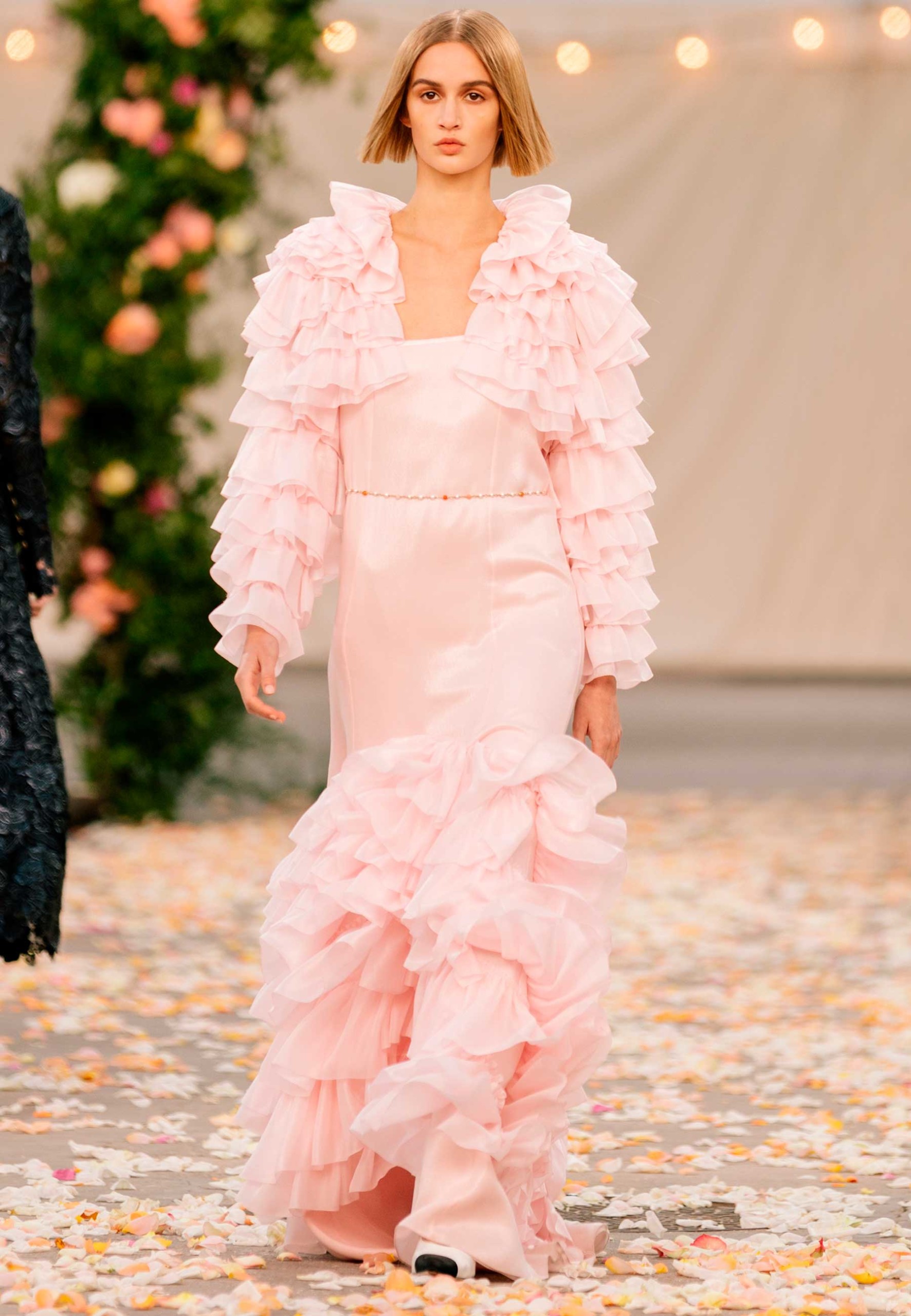 Este look rosa em específico mostra como Virgine Viard, atual diretora criativa da marca, sabe trabalhar os babados com maestria.