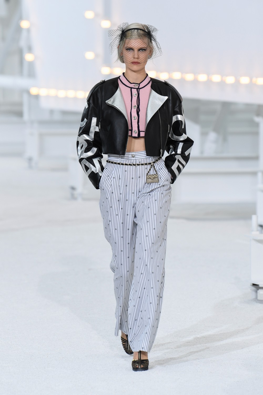 Com ombros arredondados e modelagem ampla, as jaquetas de couro ganharam um toque da marca com detalhes diferentes, como golas em outros tecidos e Chanel estampado nas mangas.