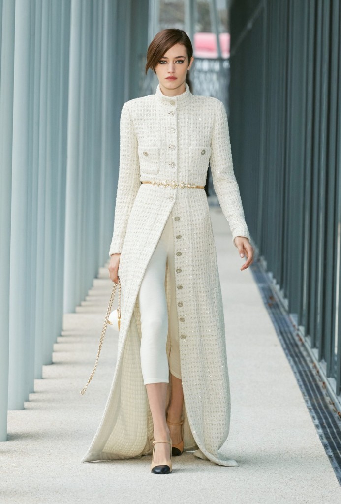Sem deixar de ser sofisticada, esta coleção tem ares metropolitanos. Jaquetas em tweed com mangas de moletom caminham lado a lado com peças em jeans – carregando em comum o trabalho impecável da Chanel. Os bordados são inspirados na estrutura do edifício e os looks trazem de volta o clássico sapato bicolor criado por Coco Chanel. Pérolas, couro, mix de joias e bolsas complementam a coleção. Veja na galeria dez looks que amamos do desfile: