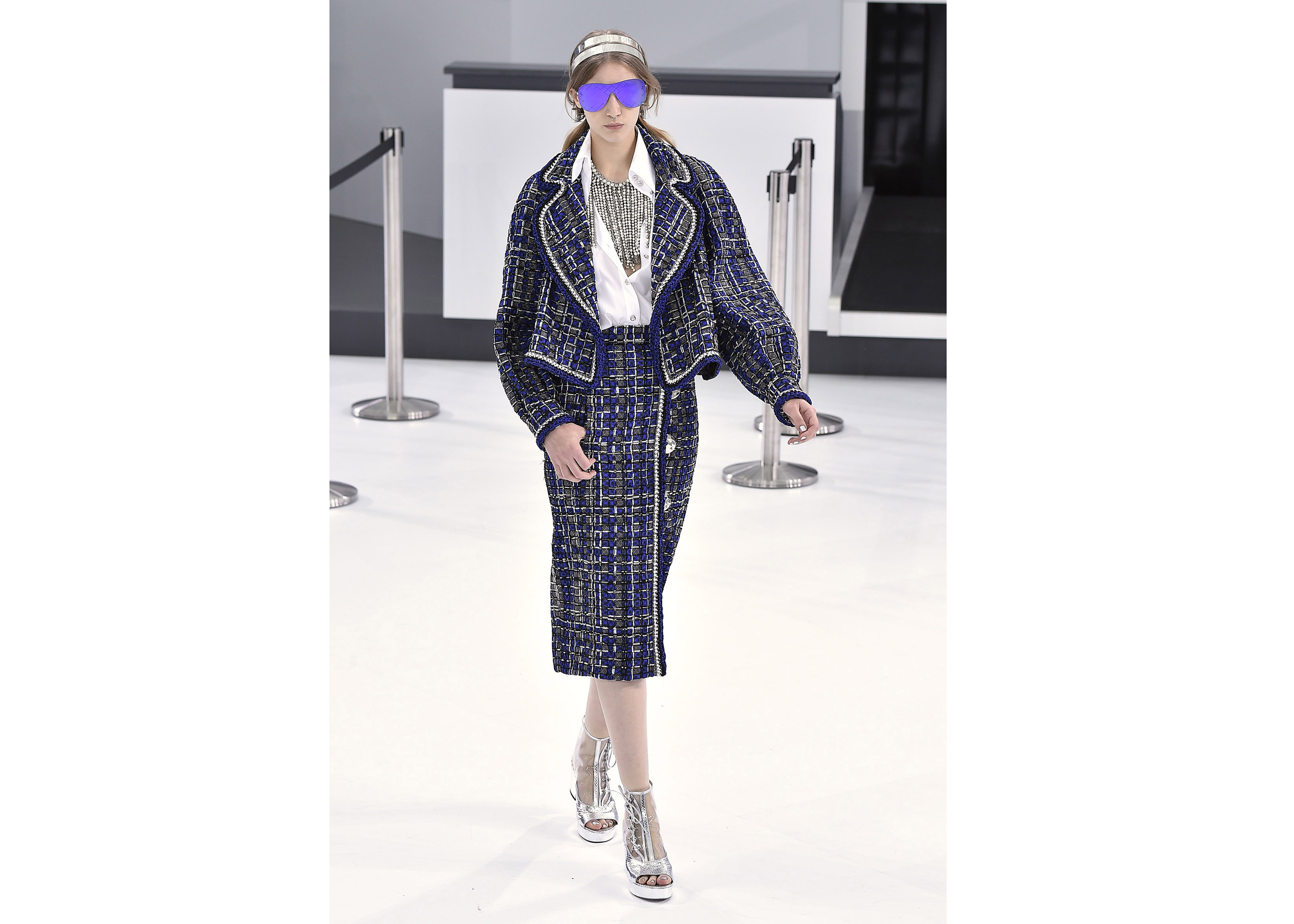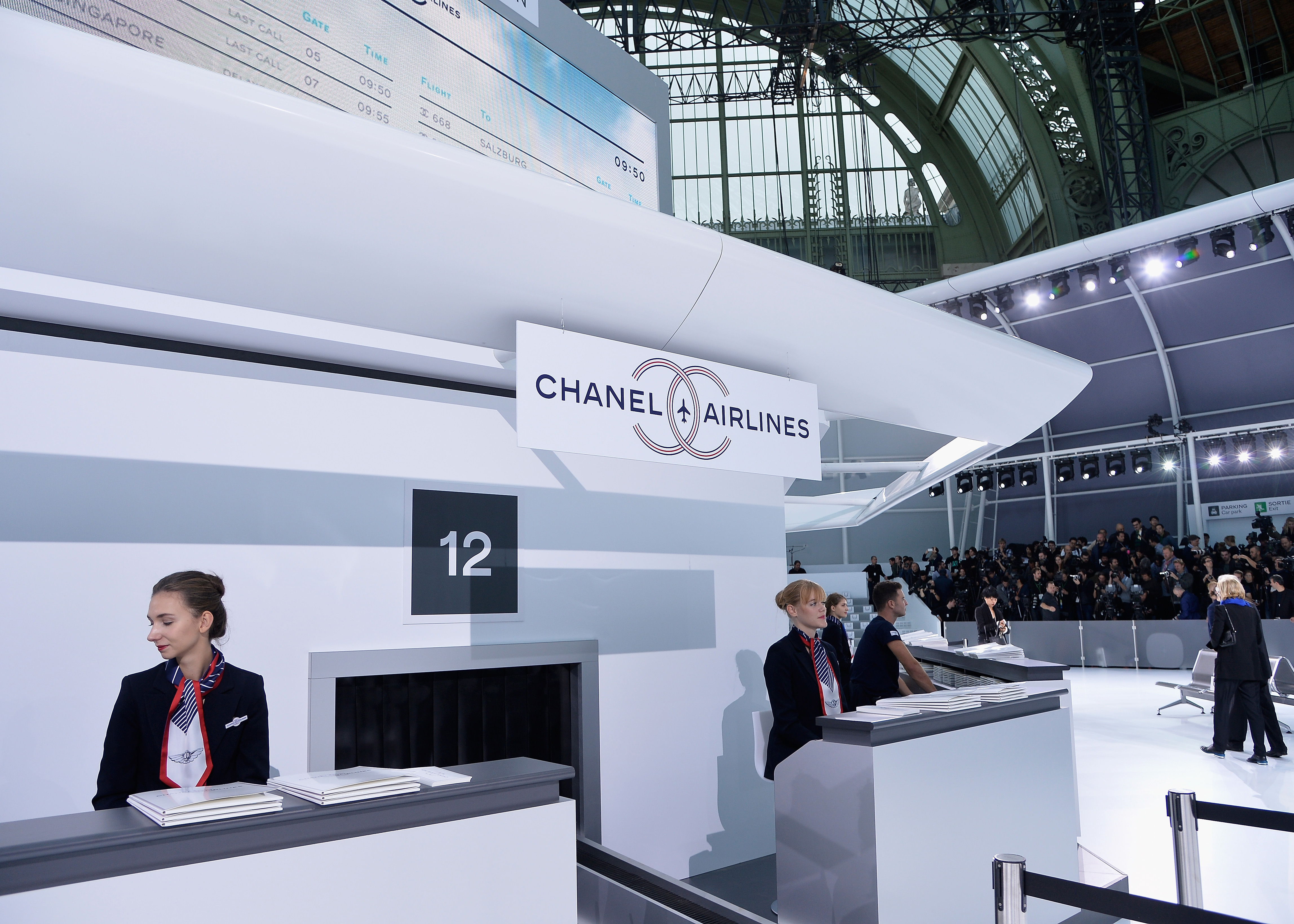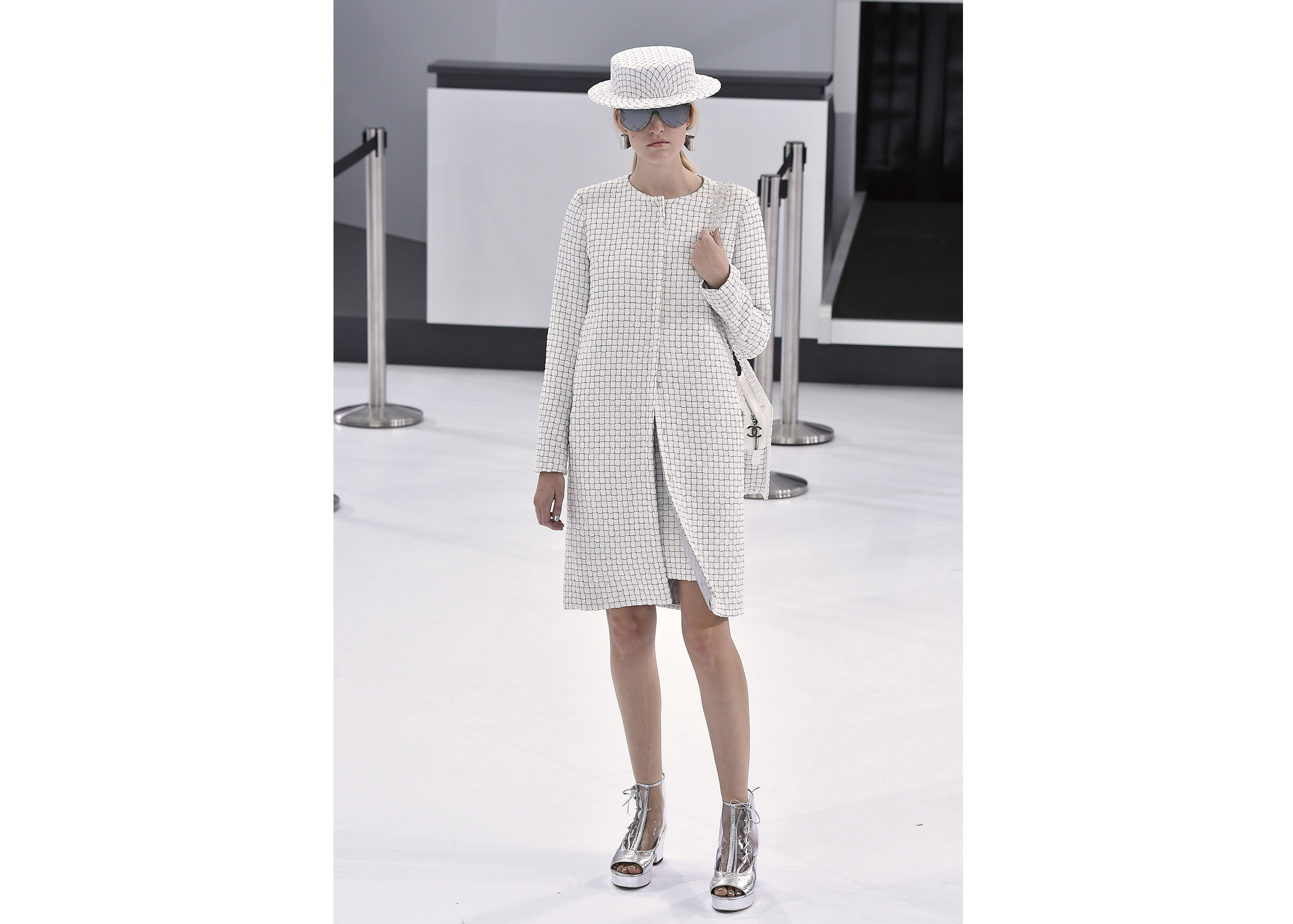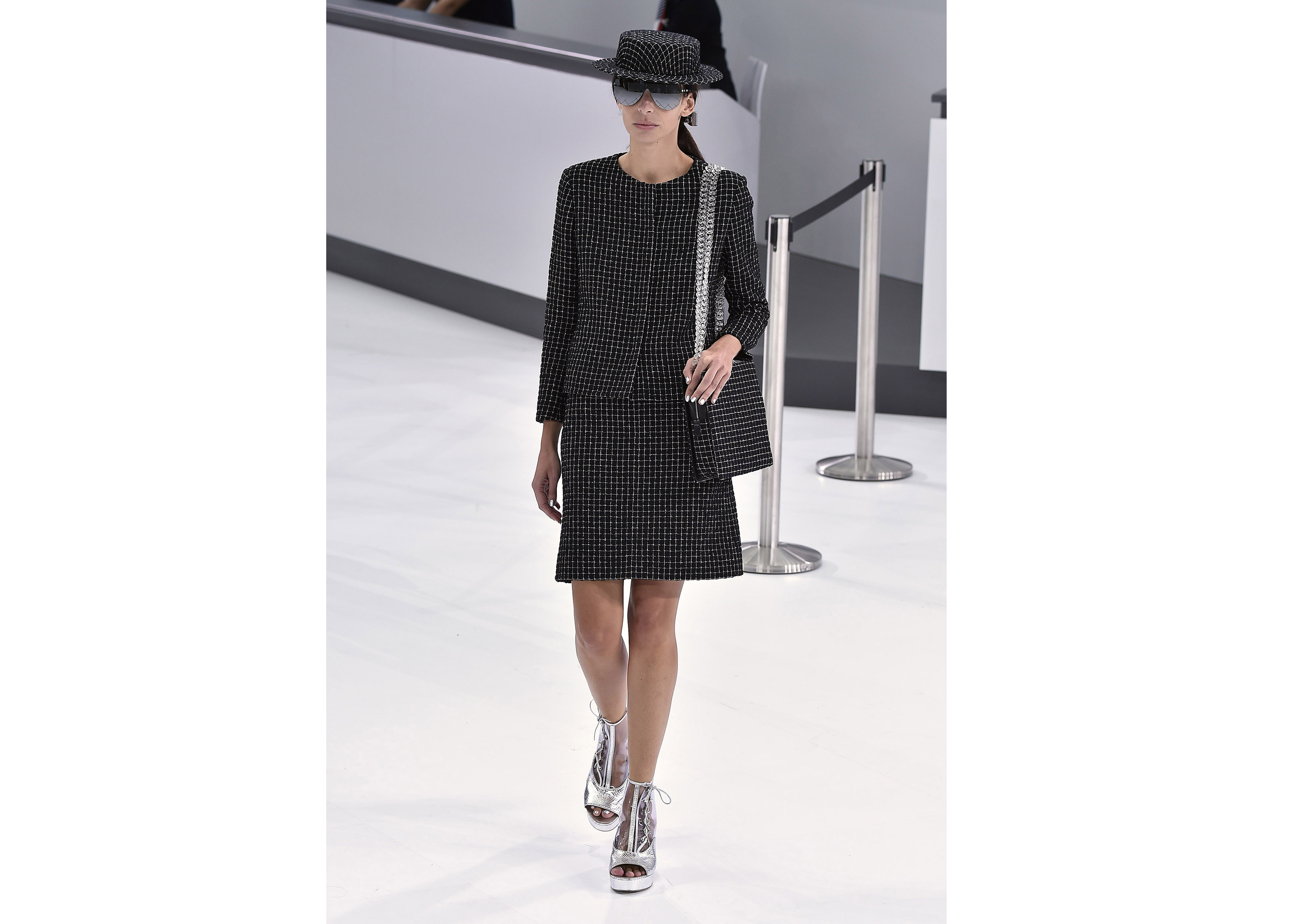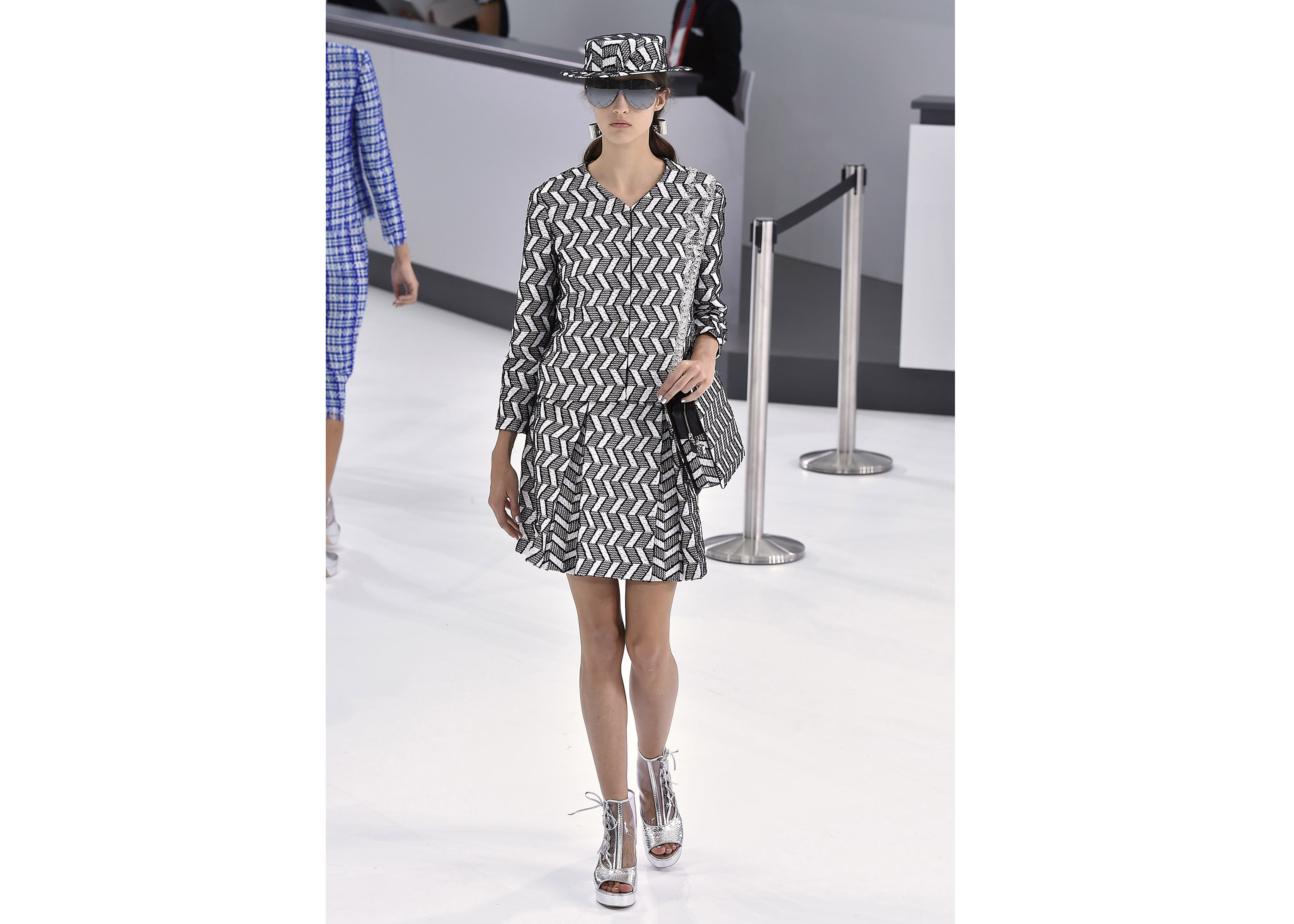 Se ainda restava alguma dúvida sobre a urgência escapista da temporada, Karl Lagerfeld a eliminou por completo. Para o verão 2016 da Chanel, criou um terminal de embarque em pleno Grand Palais e idealizou o uniforme da viajante de luxo sobre as lentes de Coco Chanel – ou quase. Este uniforme não é muito diferente daquele visto em qualquer aeroporto: calças soltas e confortáveis tipo moletom, suéter amarrado na cintura, jaquetas afastadas do corpo, sandálias baixas com meias e os óculos de sol à prova de jet-lag. Só que aqui, as pantalonas e seus casaquetos são de bouclé; a jogging pant, de cashmere; o vestidos amplos, de seda; e as rasteiras, decoradas com pérolas.