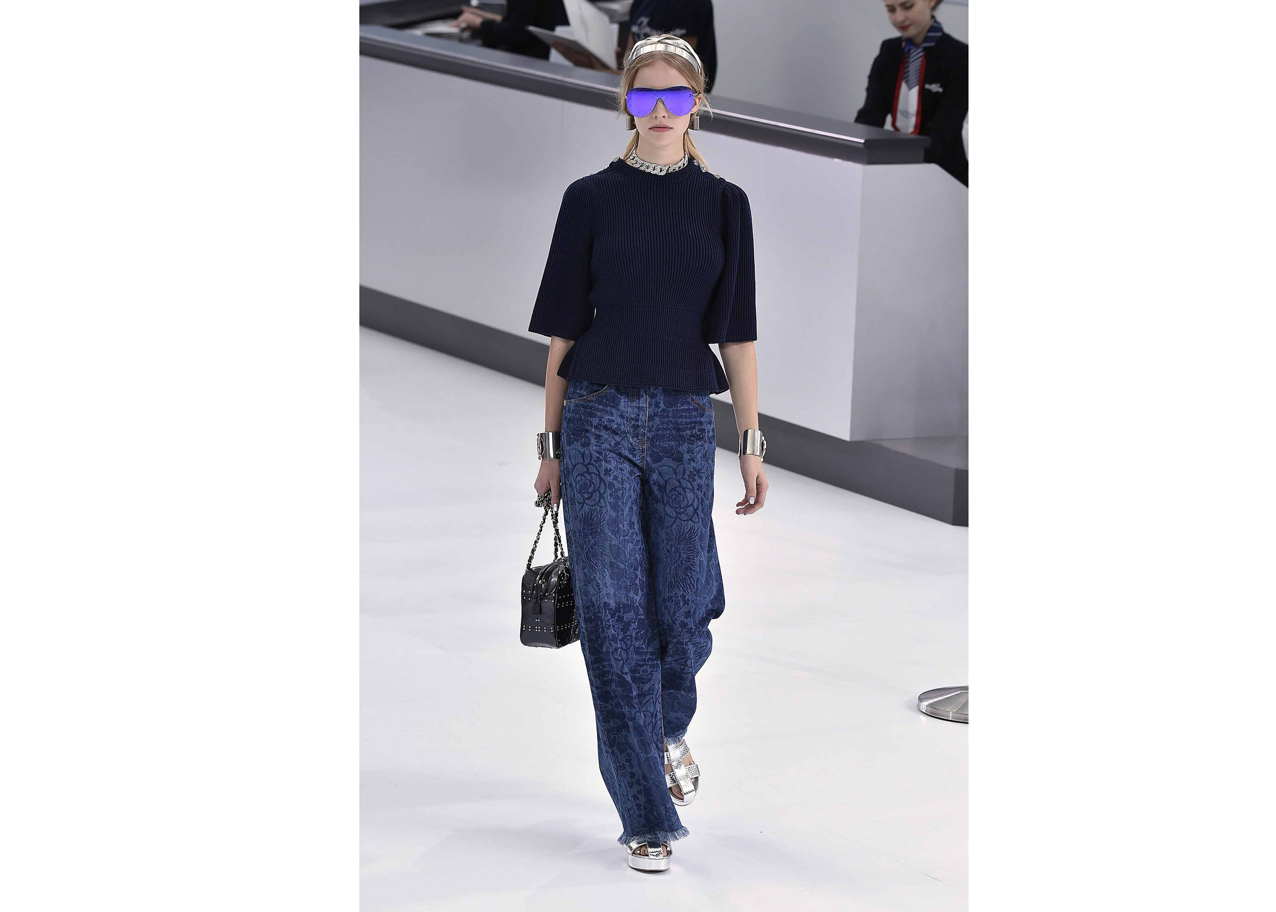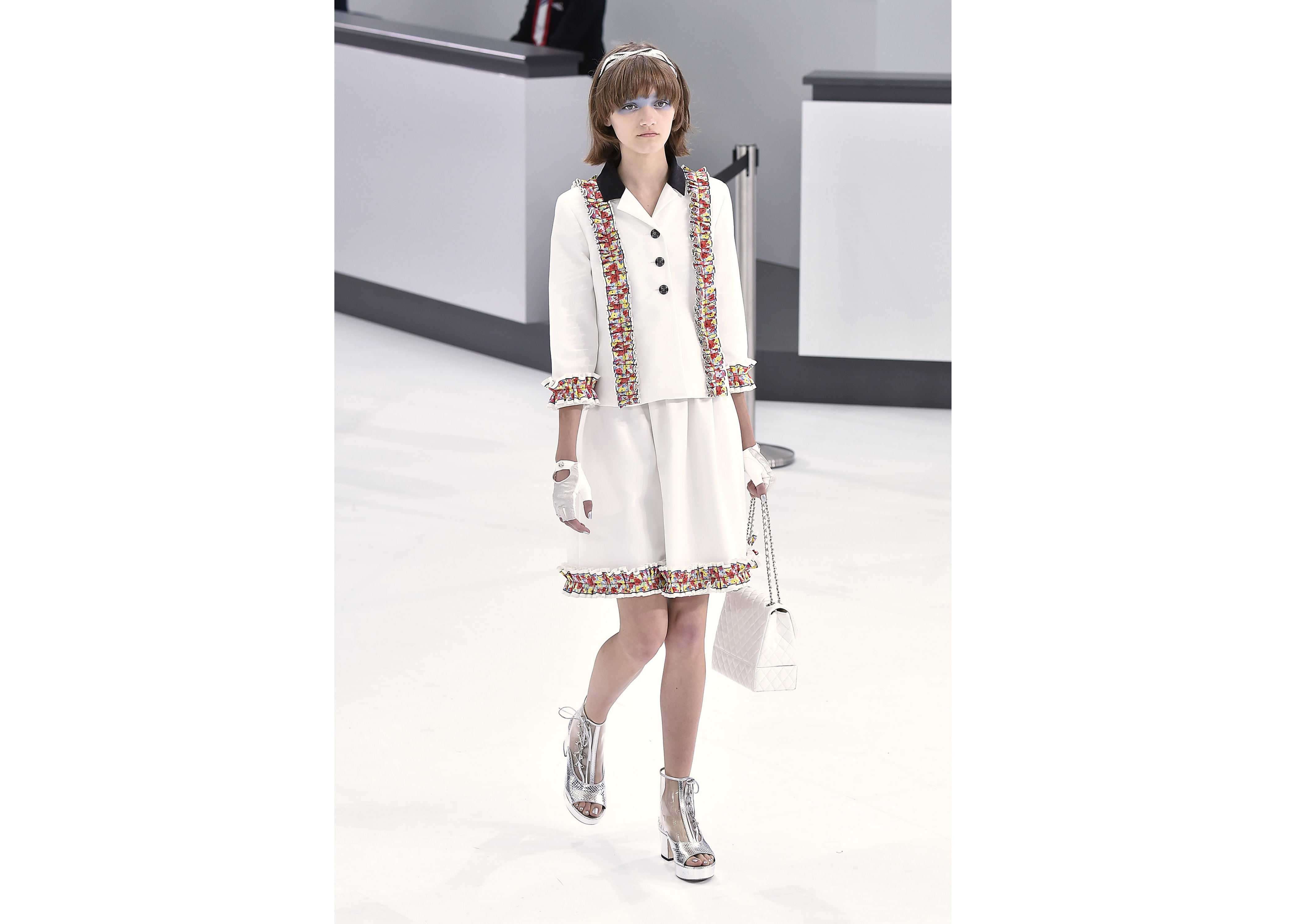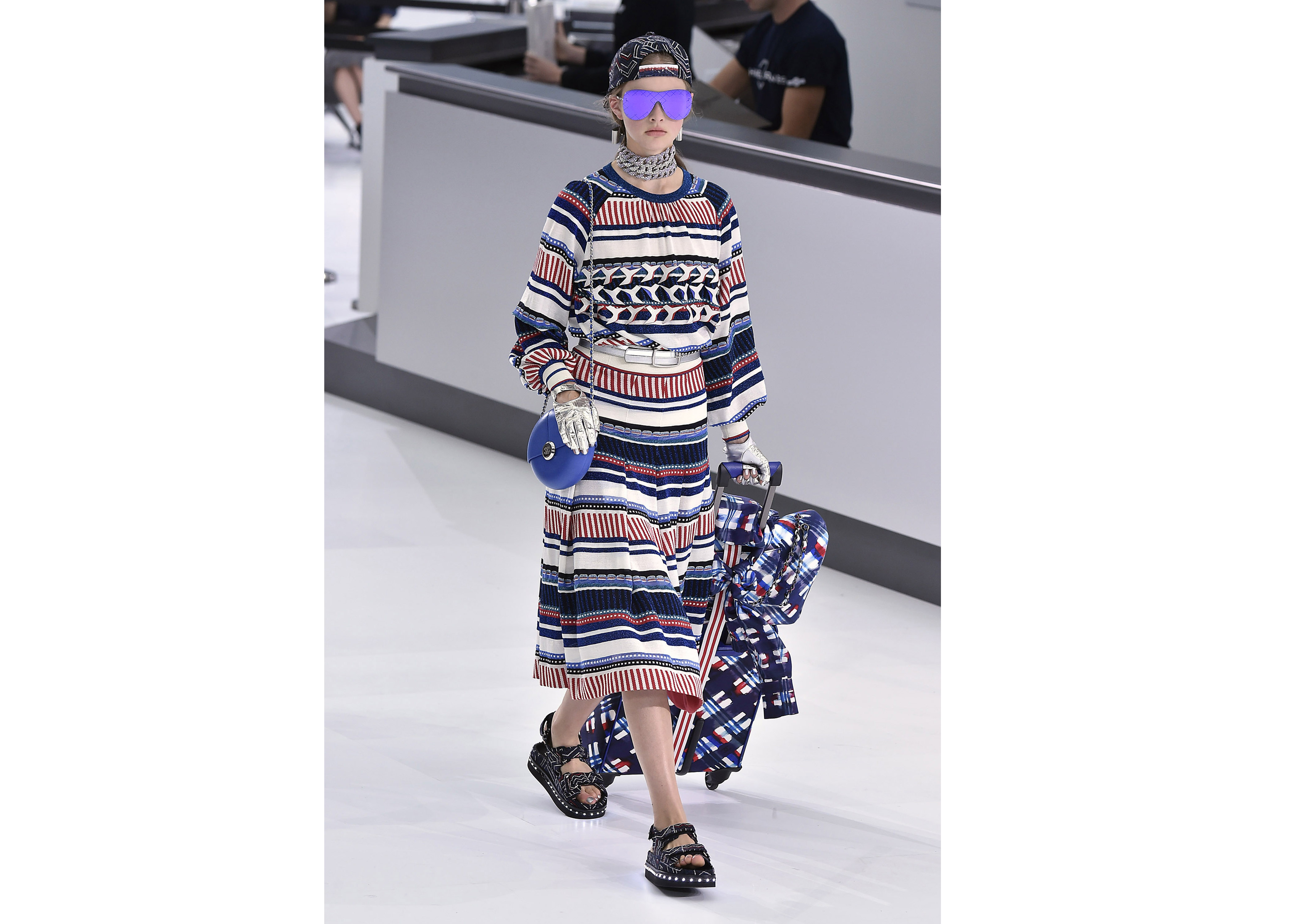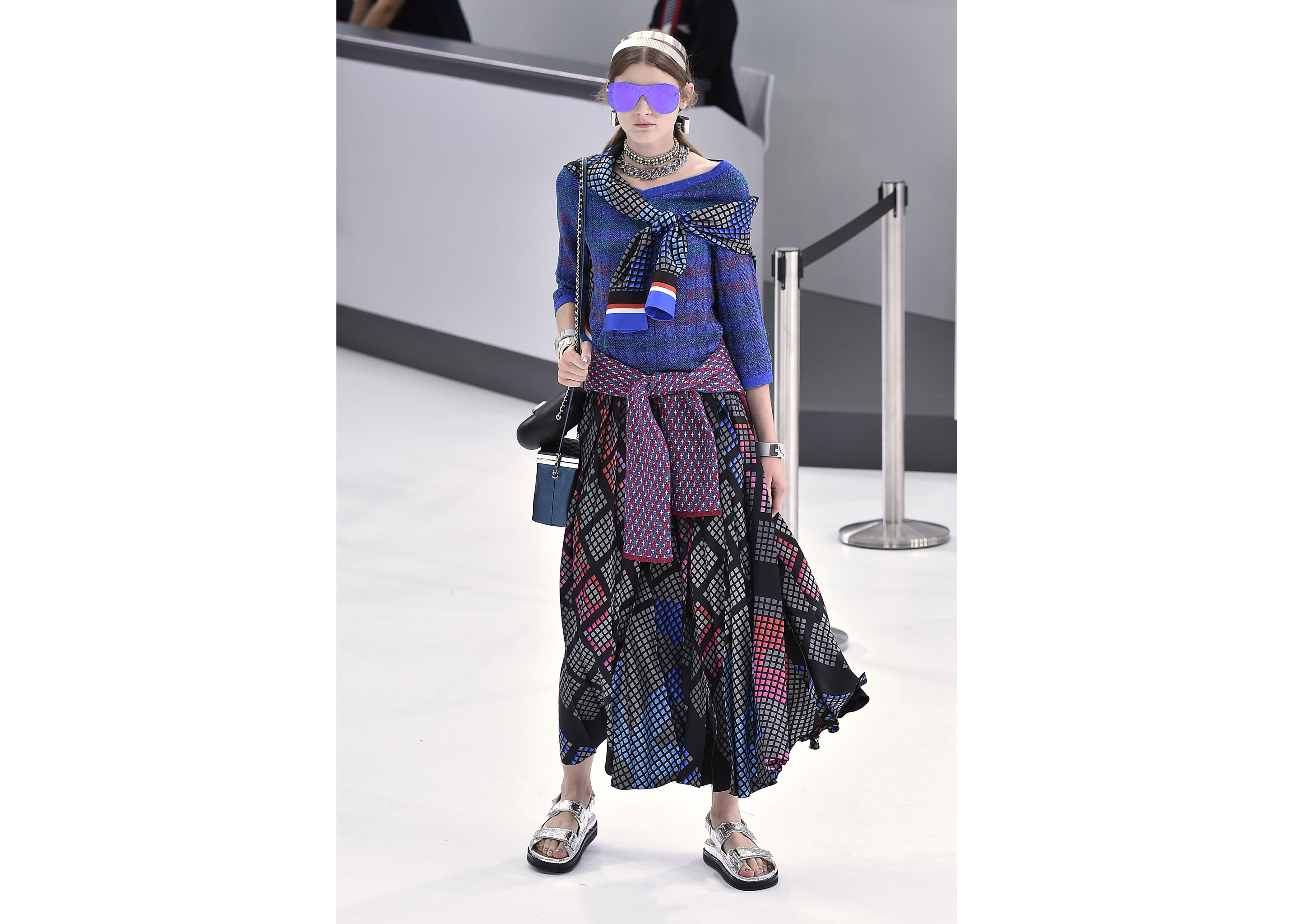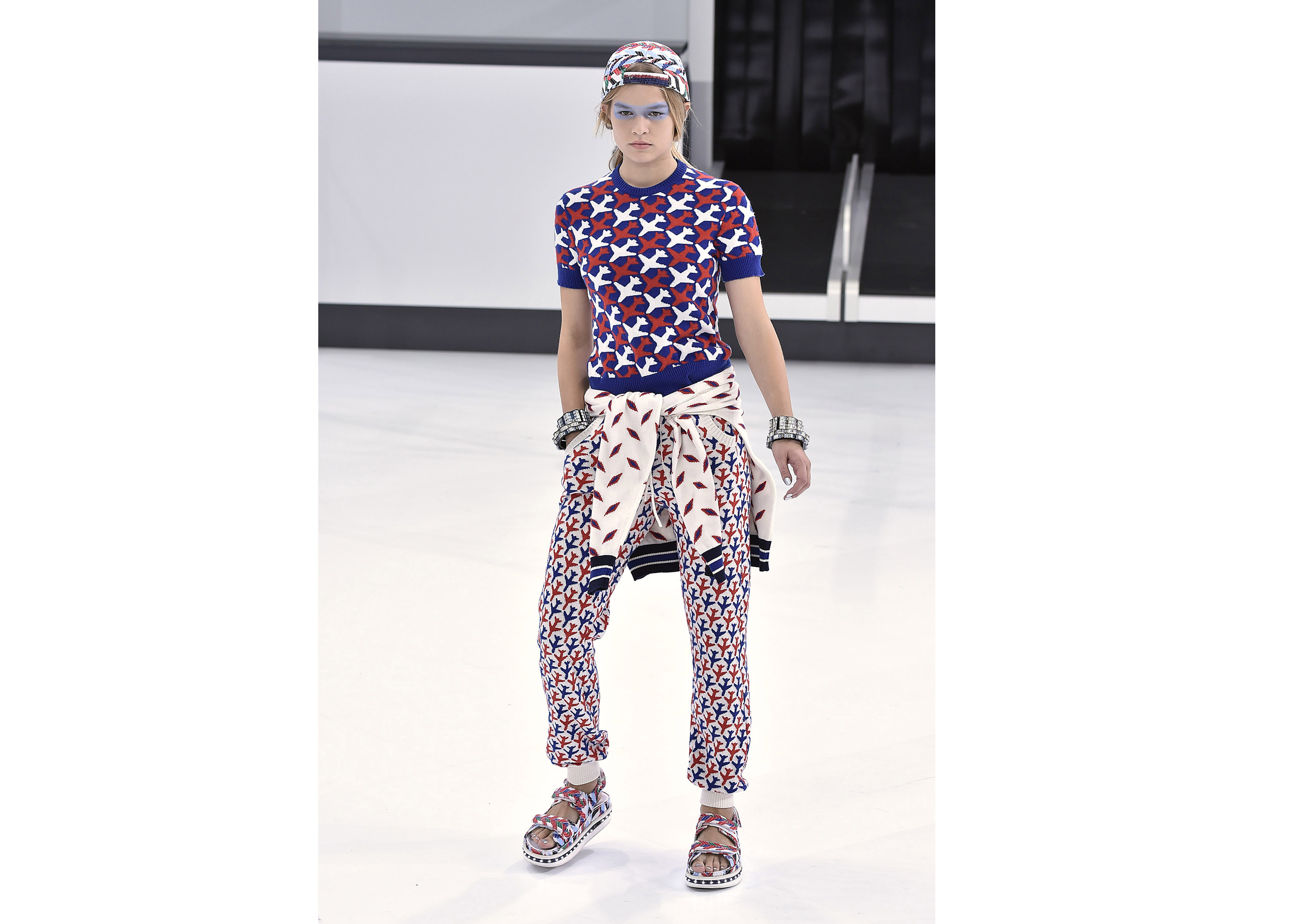 Se ainda restava alguma dúvida sobre a urgência escapista da temporada, Karl Lagerfeld a eliminou por completo. Para o verão 2016 da Chanel, criou um terminal de embarque em pleno Grand Palais e idealizou o uniforme da viajante de luxo sobre as lentes de Coco Chanel – ou quase. Este uniforme não é muito diferente daquele visto em qualquer aeroporto: calças soltas e confortáveis tipo moletom, suéter amarrado na cintura, jaquetas afastadas do corpo, sandálias baixas com meias e os óculos de sol à prova de jet-lag. Só que aqui, as pantalonas e seus casaquetos são de bouclé; a jogging pant, de cashmere; o vestidos amplos, de seda; e as rasteiras, decoradas com pérolas.