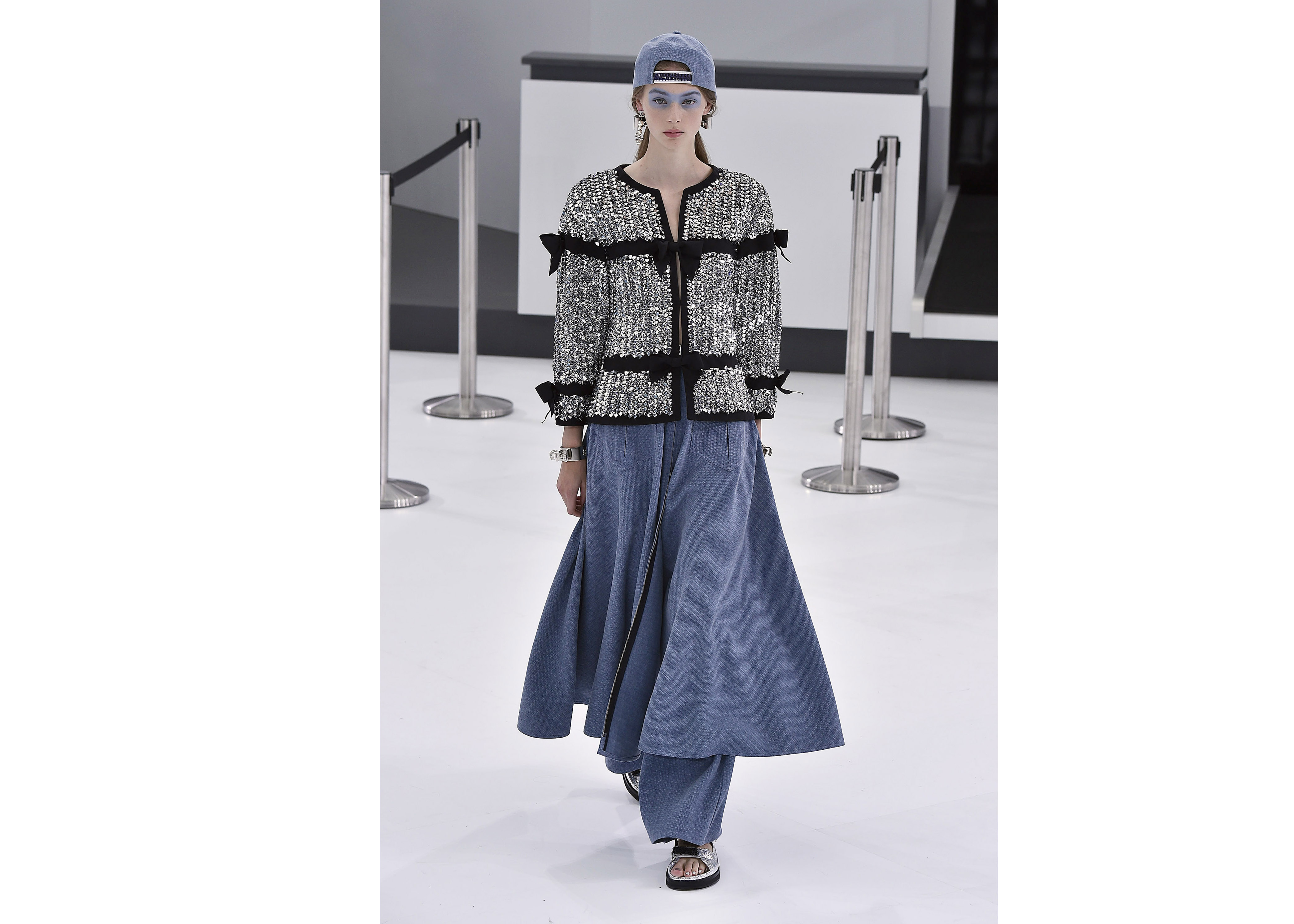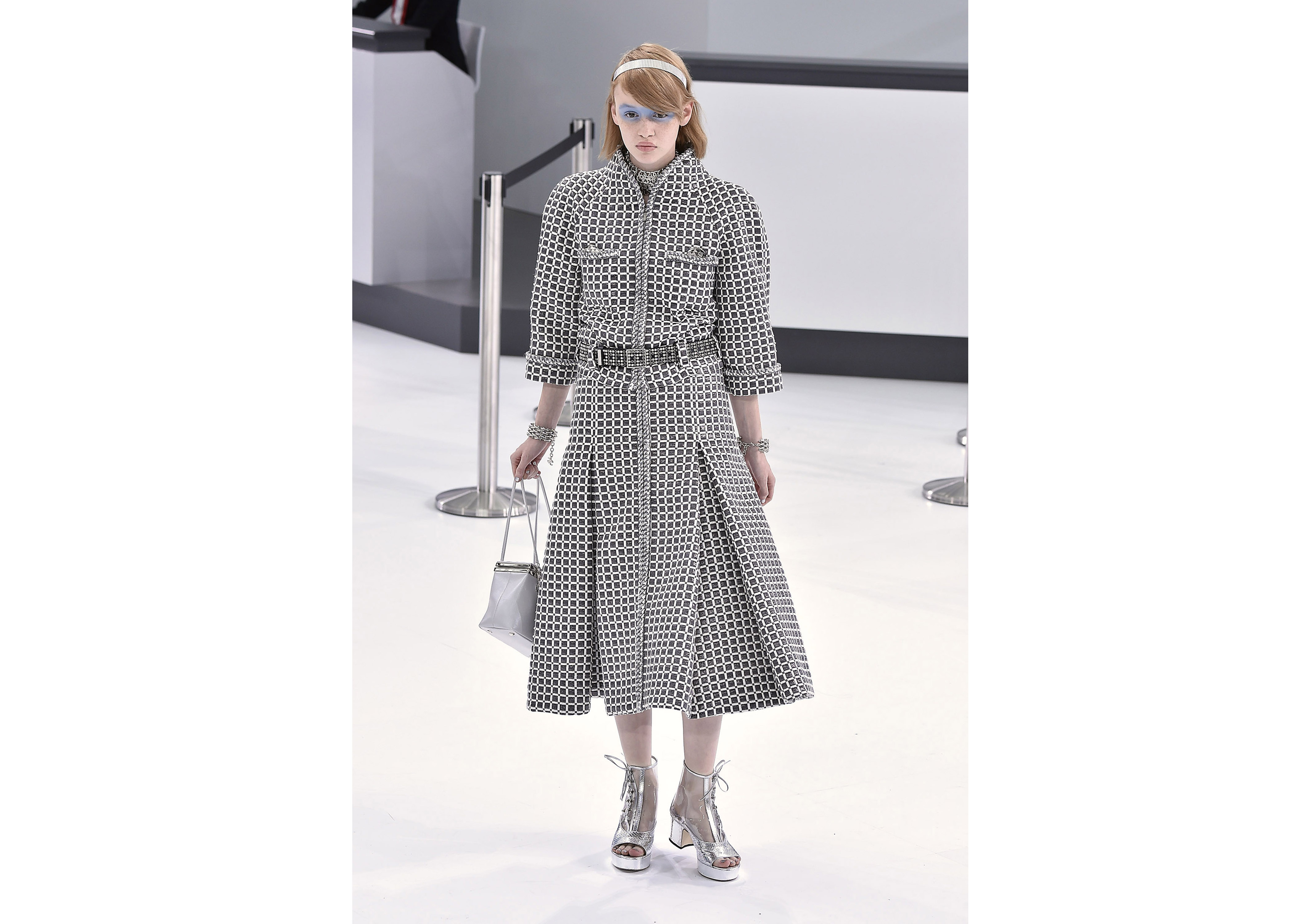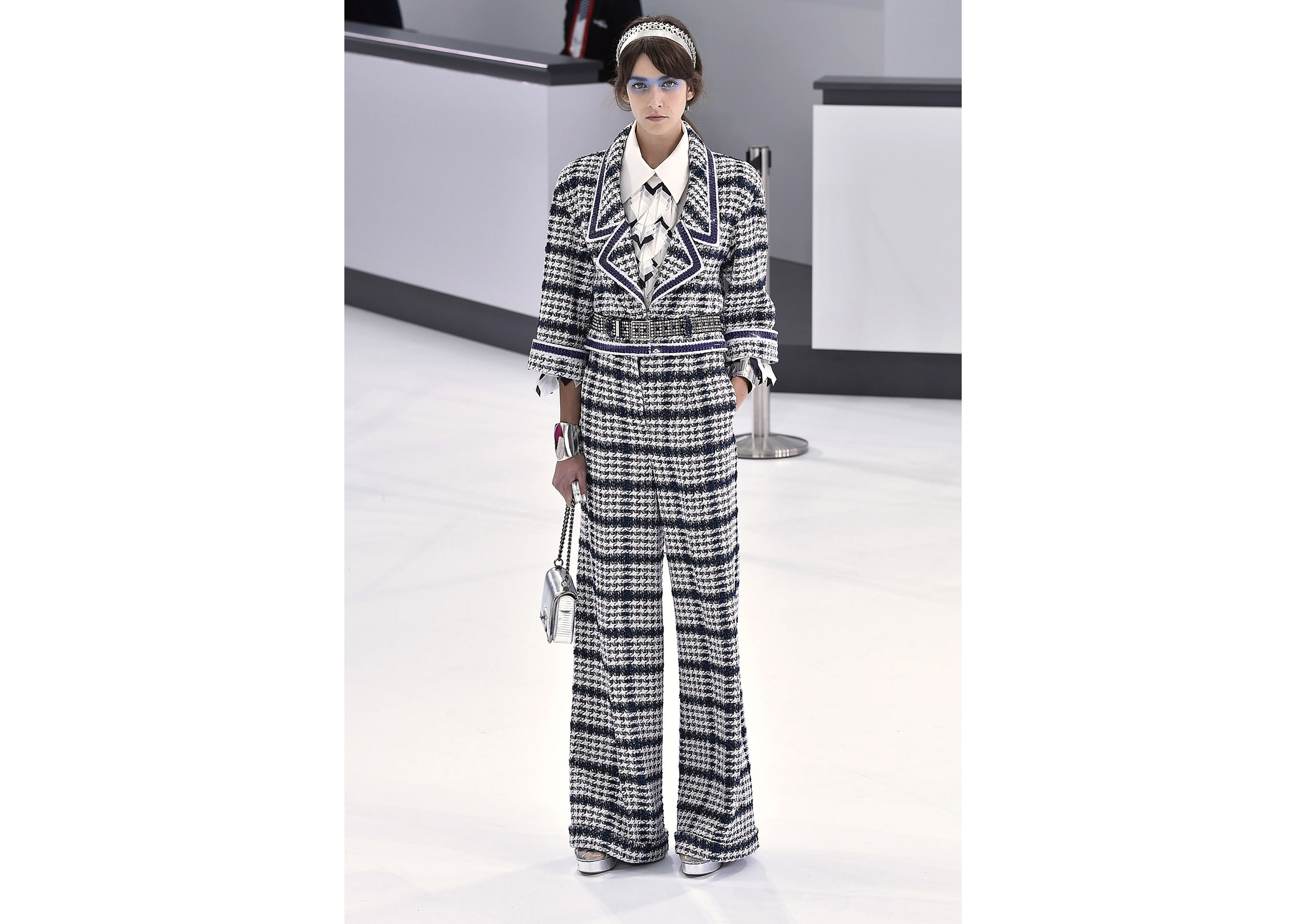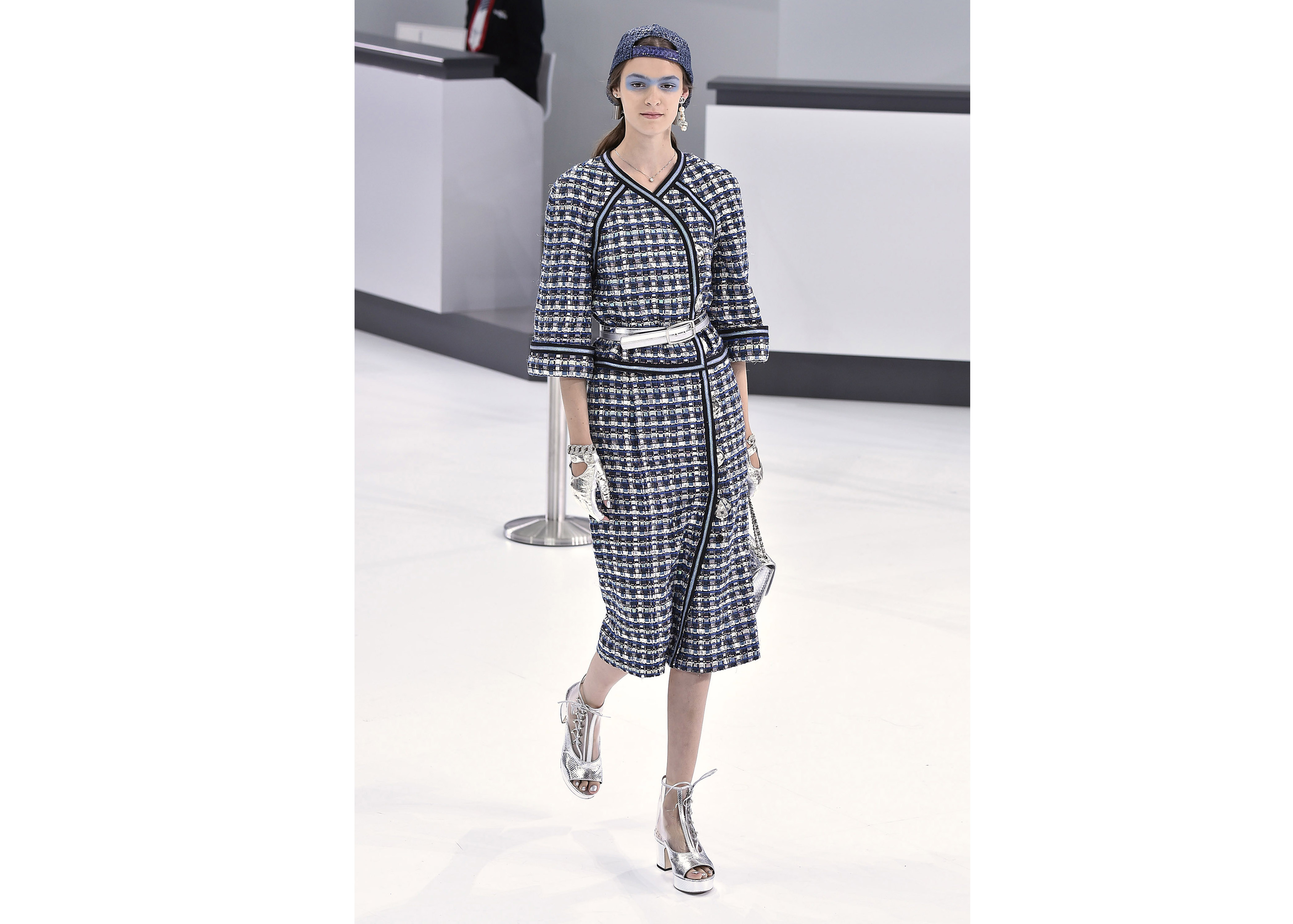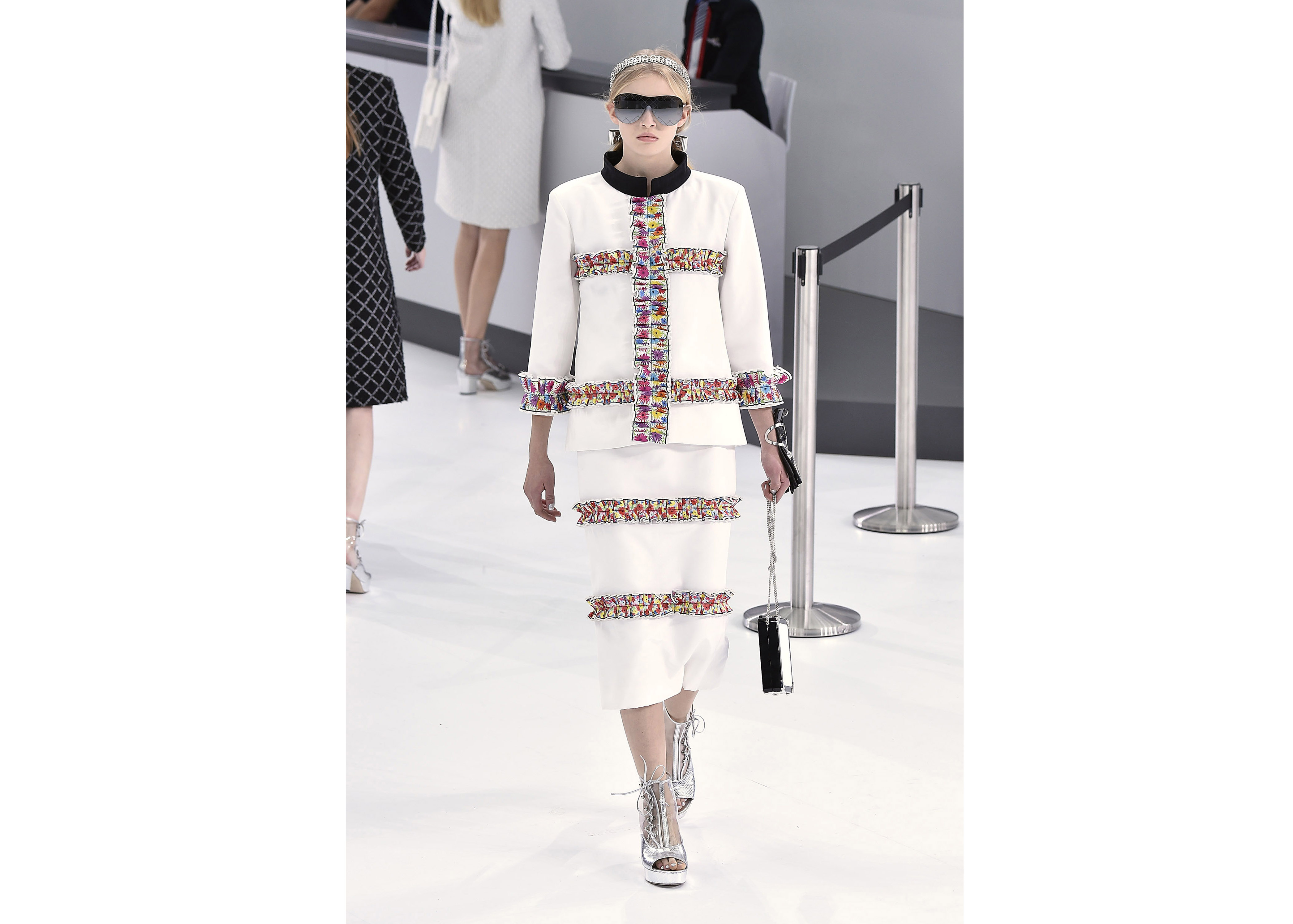 Se ainda restava alguma dúvida sobre a urgência escapista da temporada, Karl Lagerfeld a eliminou por completo. Para o verão 2016 da Chanel, criou um terminal de embarque em pleno Grand Palais e idealizou o uniforme da viajante de luxo sobre as lentes de Coco Chanel – ou quase. Este uniforme não é muito diferente daquele visto em qualquer aeroporto: calças soltas e confortáveis tipo moletom, suéter amarrado na cintura, jaquetas afastadas do corpo, sandálias baixas com meias e os óculos de sol à prova de jet-lag. Só que aqui, as pantalonas e seus casaquetos são de bouclé; a jogging pant, de cashmere; o vestidos amplos, de seda; e as rasteiras, decoradas com pérolas.