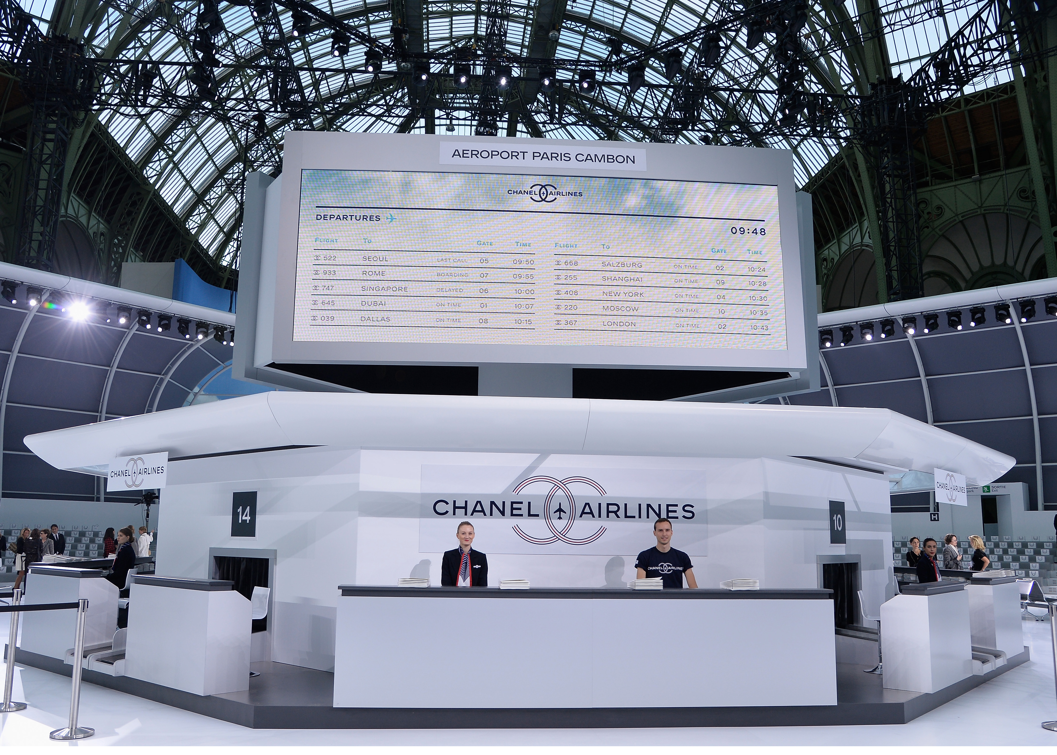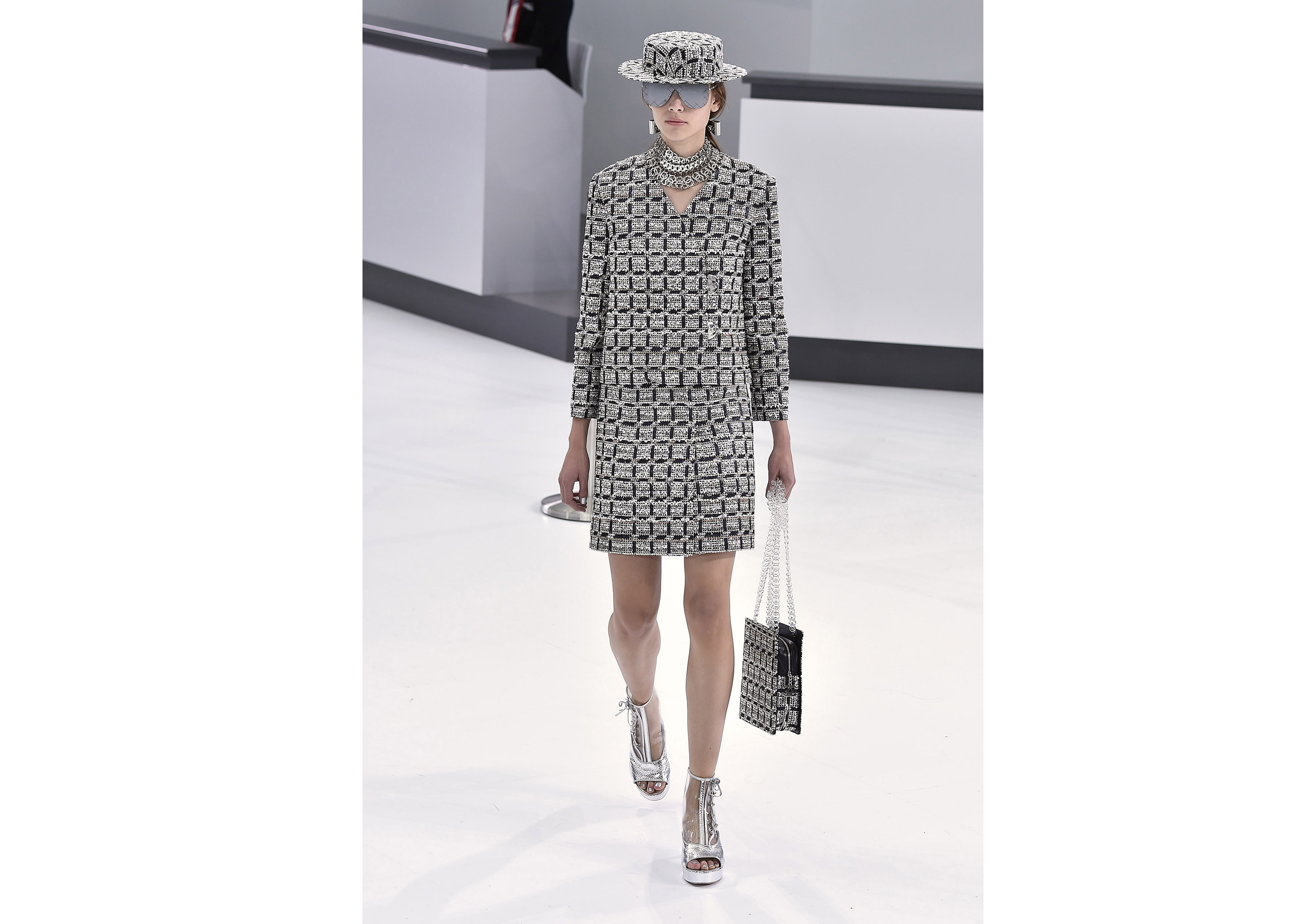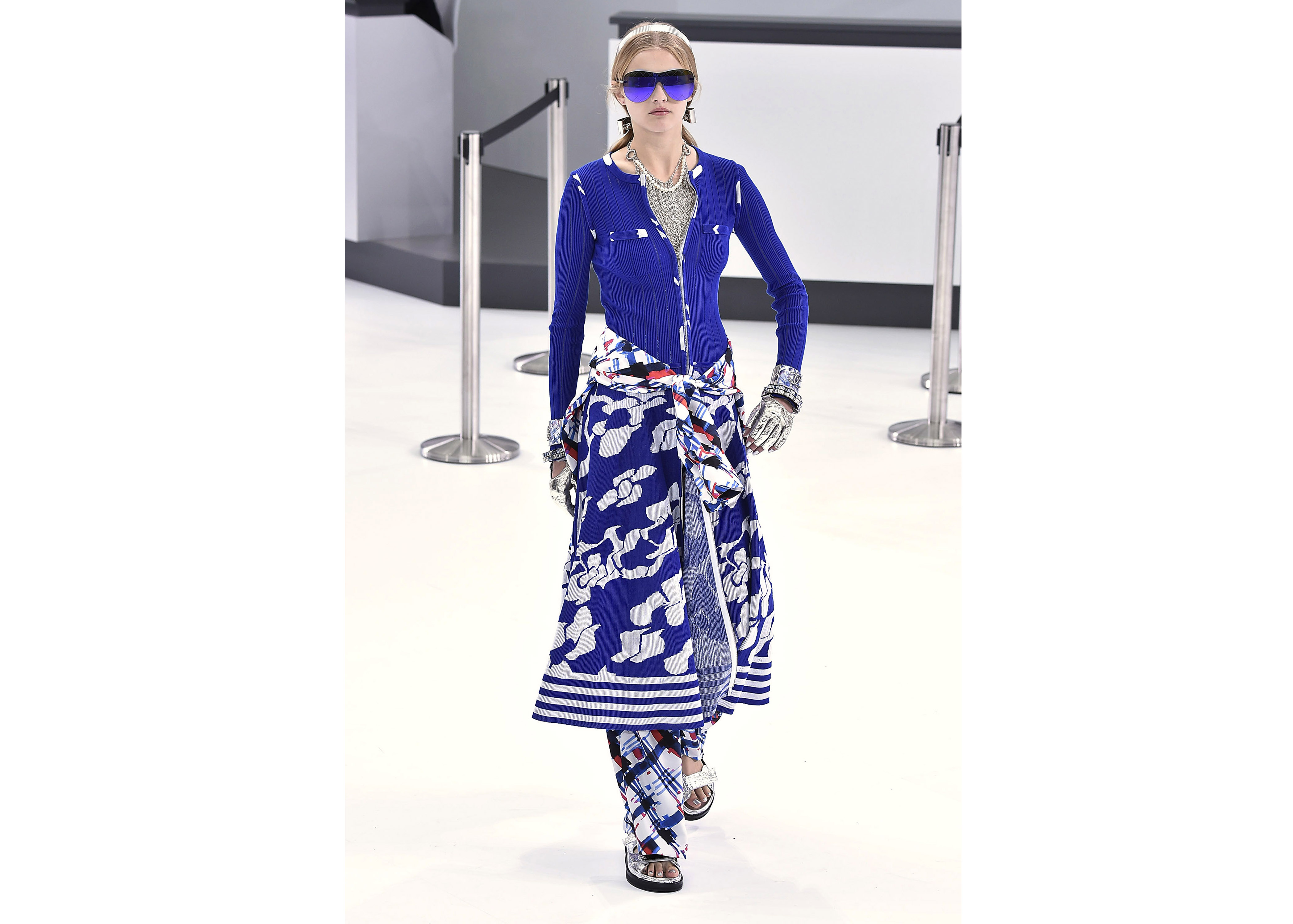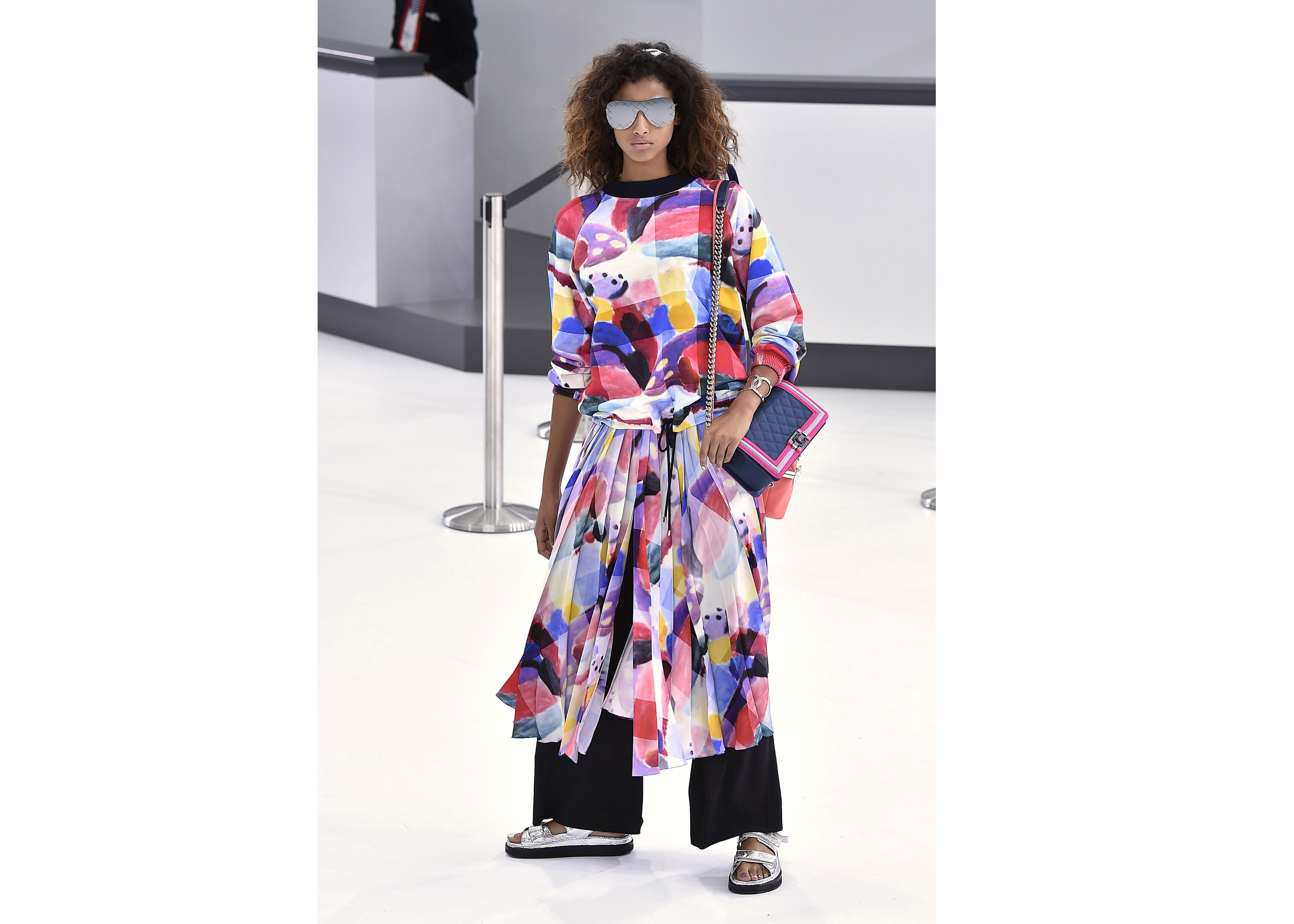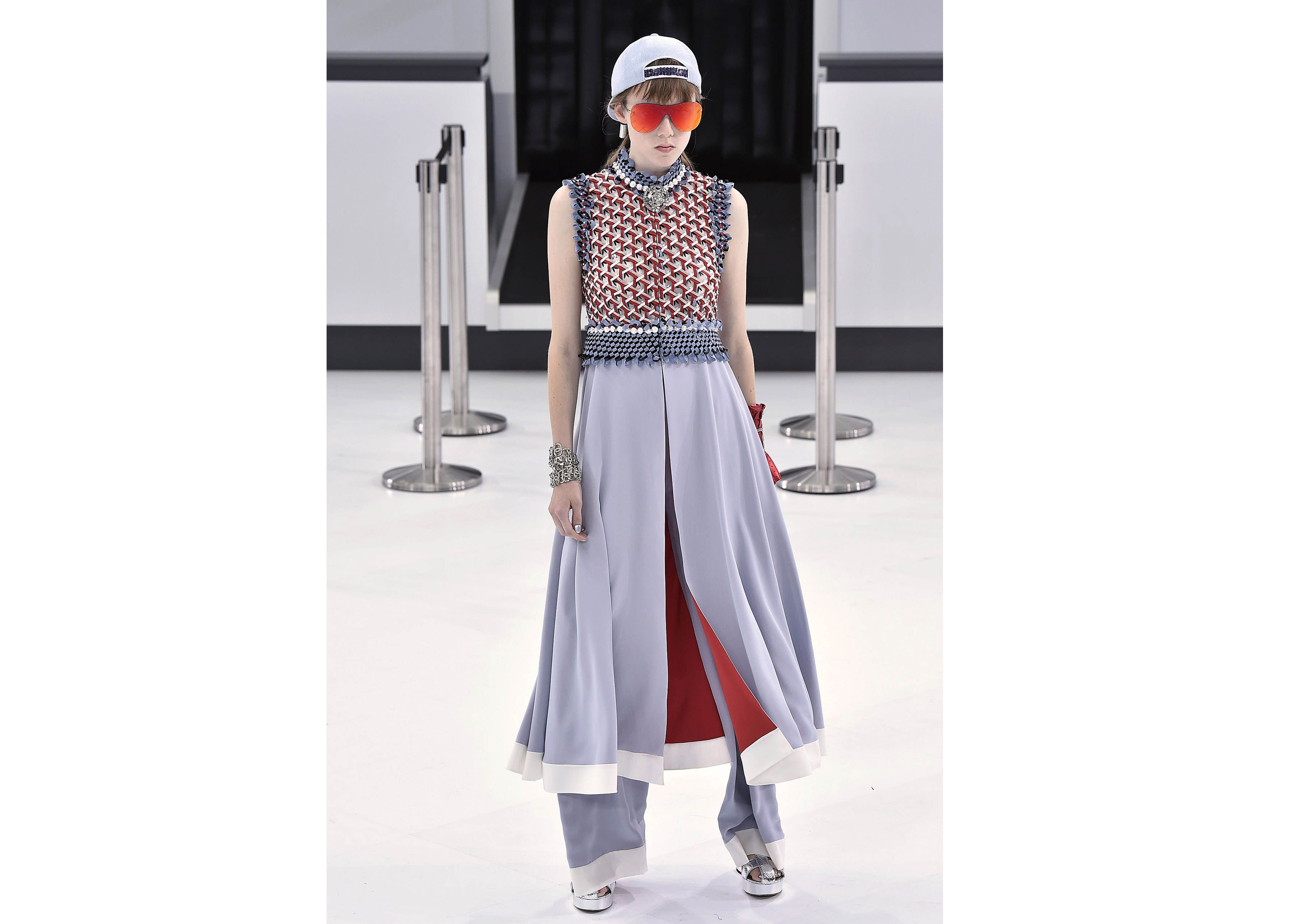 Se ainda restava alguma dúvida sobre a urgência escapista da temporada, Karl Lagerfeld a eliminou por completo. Para o verão 2016 da Chanel, criou um terminal de embarque em pleno Grand Palais e idealizou o uniforme da viajante de luxo sobre as lentes de Coco Chanel – ou quase. Este uniforme não é muito diferente daquele visto em qualquer aeroporto: calças soltas e confortáveis tipo moletom, suéter amarrado na cintura, jaquetas afastadas do corpo, sandálias baixas com meias e os óculos de sol à prova de jet-lag. Só que aqui, as pantalonas e seus casaquetos são de bouclé; a jogging pant, de cashmere; o vestidos amplos, de seda; e as rasteiras, decoradas com pérolas.