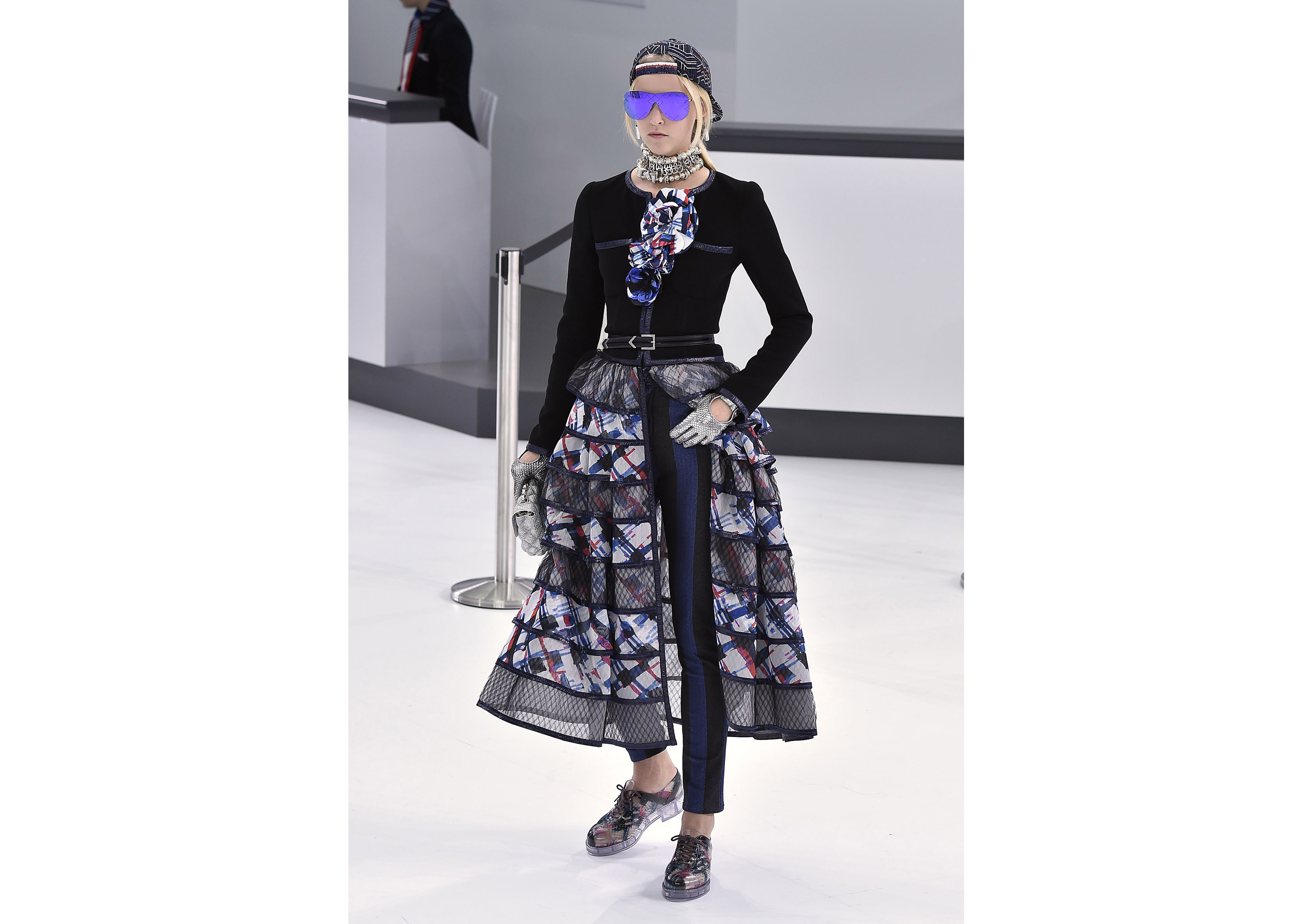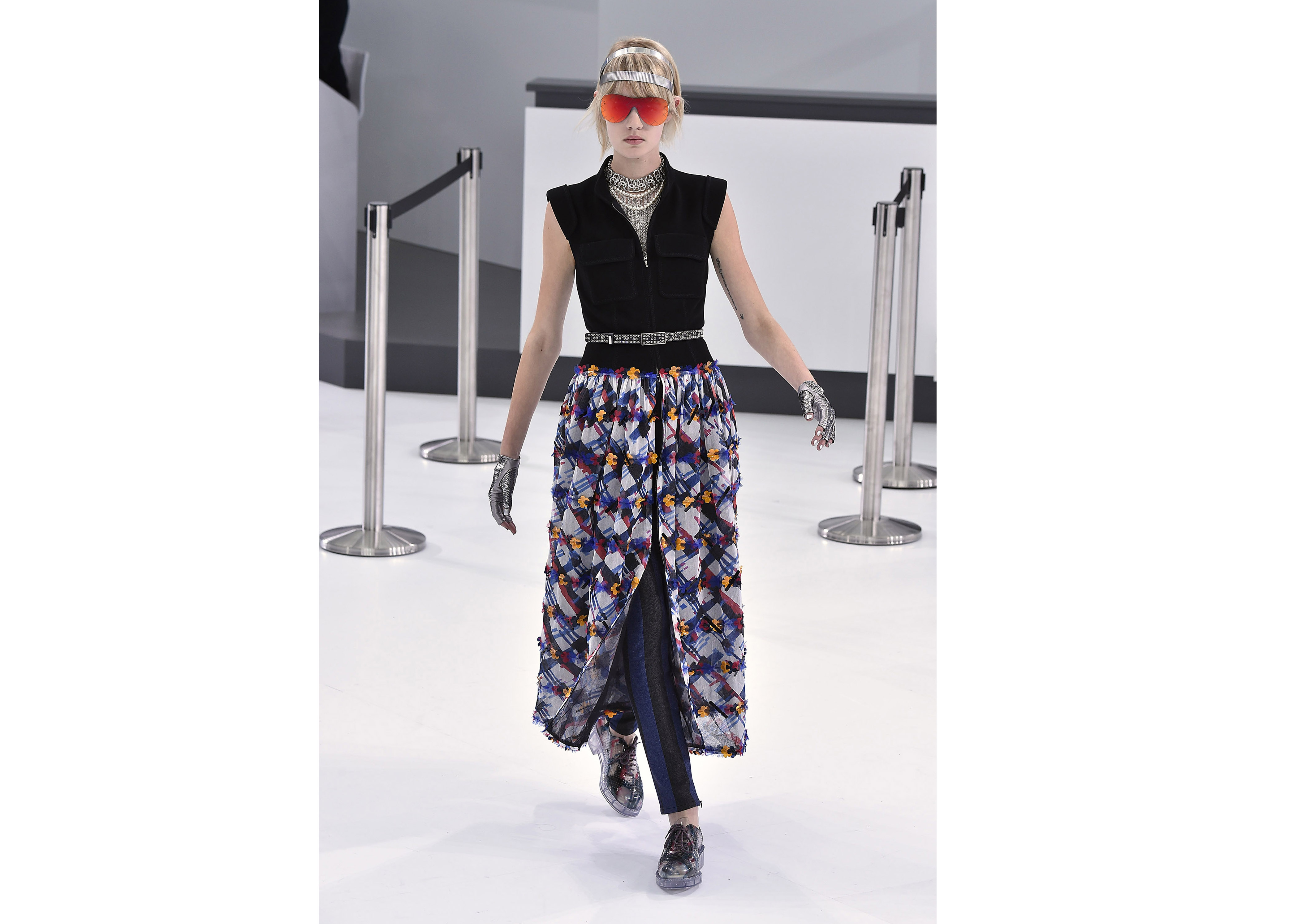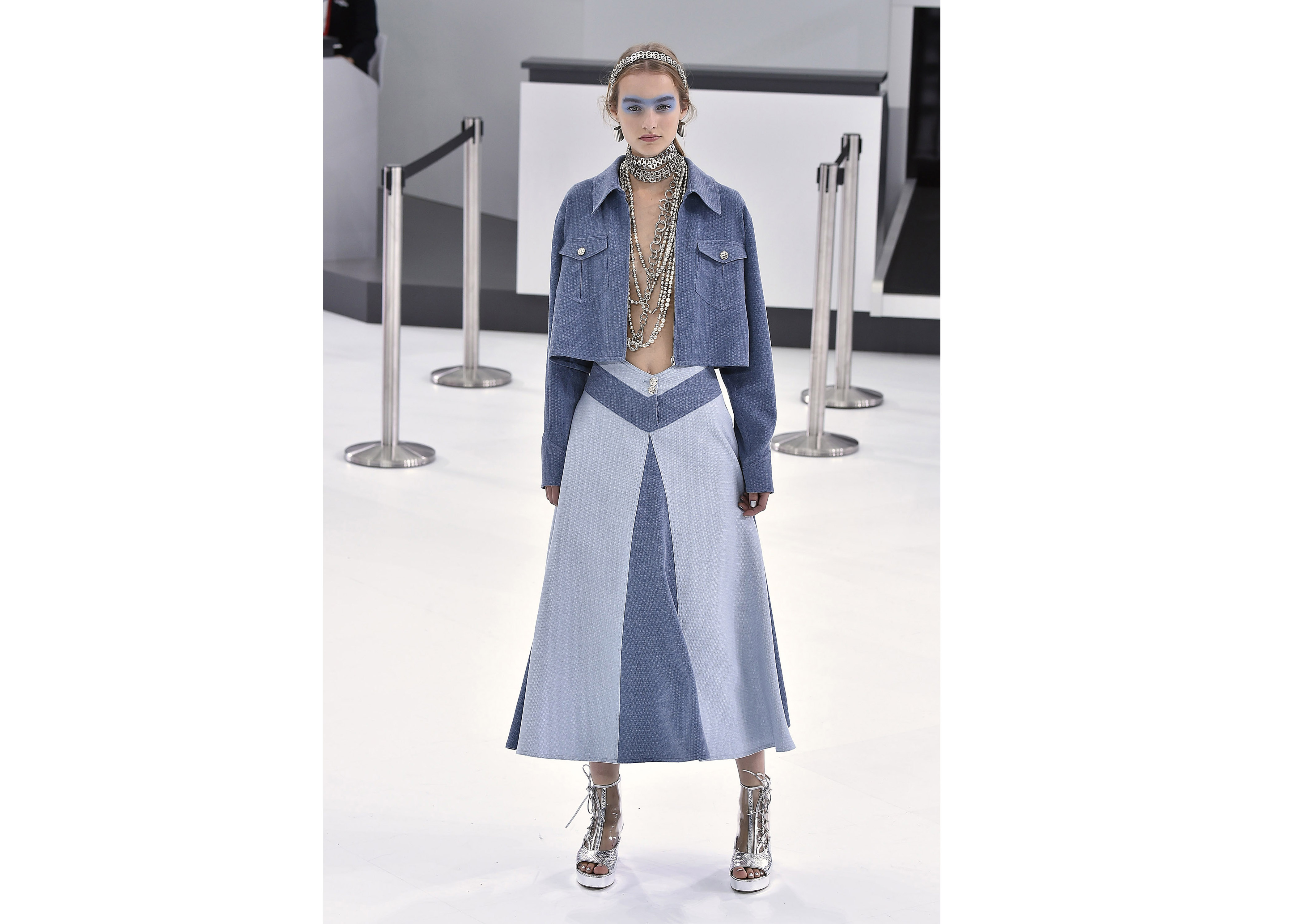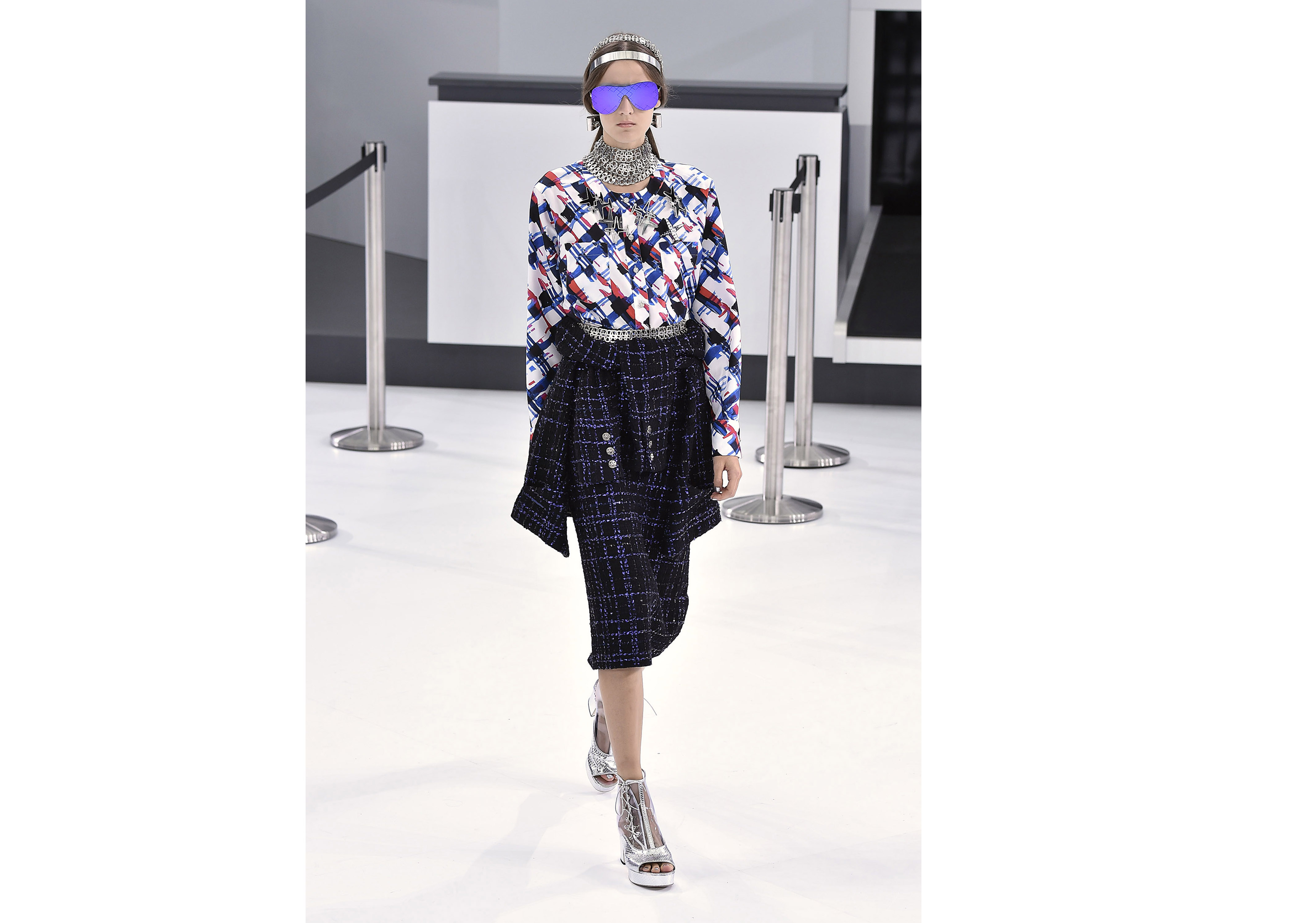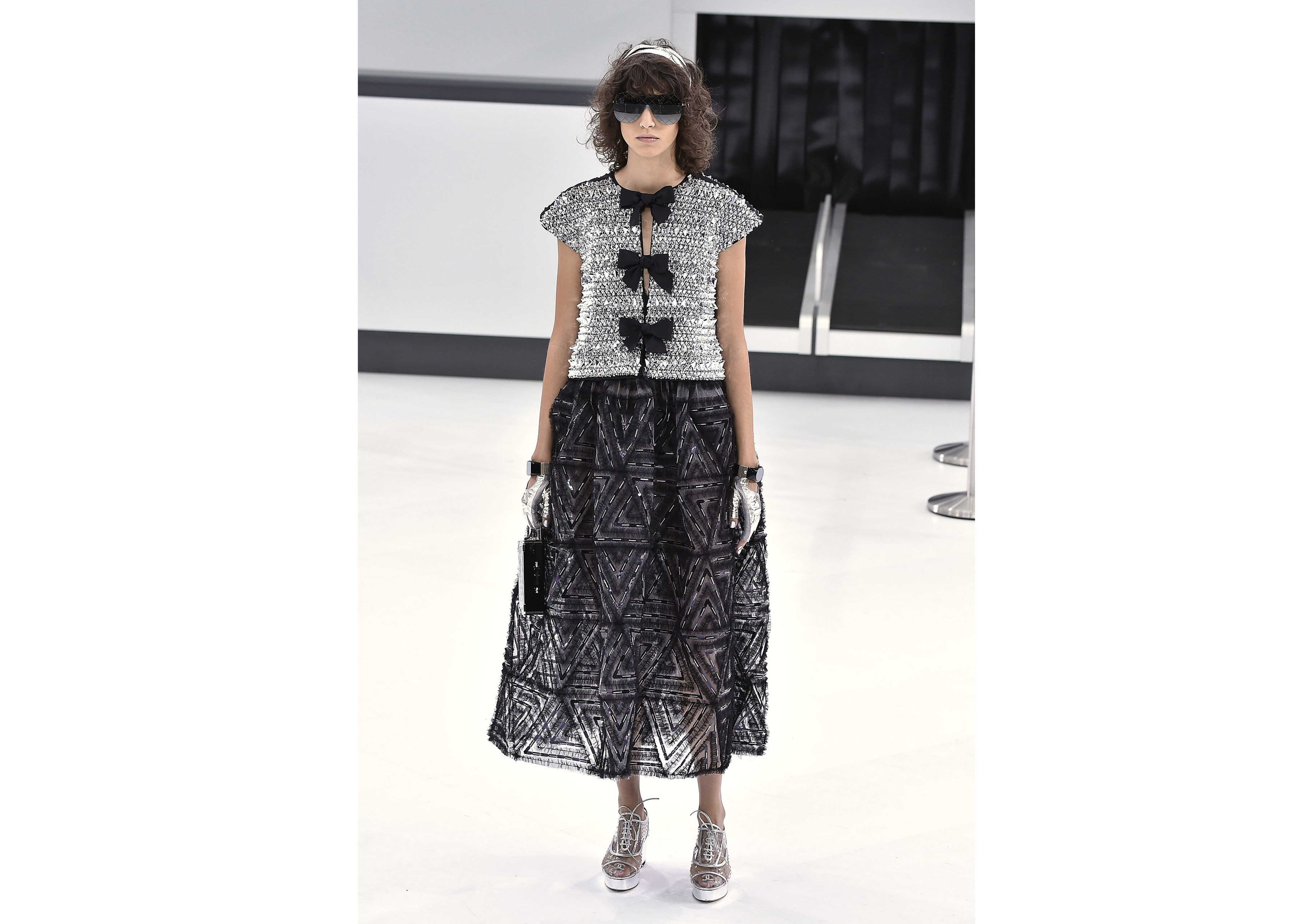 Se ainda restava alguma dúvida sobre a urgência escapista da temporada, Karl Lagerfeld a eliminou por completo. Para o verão 2016 da Chanel, criou um terminal de embarque em pleno Grand Palais e idealizou o uniforme da viajante de luxo sobre as lentes de Coco Chanel – ou quase. Este uniforme não é muito diferente daquele visto em qualquer aeroporto: calças soltas e confortáveis tipo moletom, suéter amarrado na cintura, jaquetas afastadas do corpo, sandálias baixas com meias e os óculos de sol à prova de jet-lag. Só que aqui, as pantalonas e seus casaquetos são de bouclé; a jogging pant, de cashmere; o vestidos amplos, de seda; e as rasteiras, decoradas com pérolas.