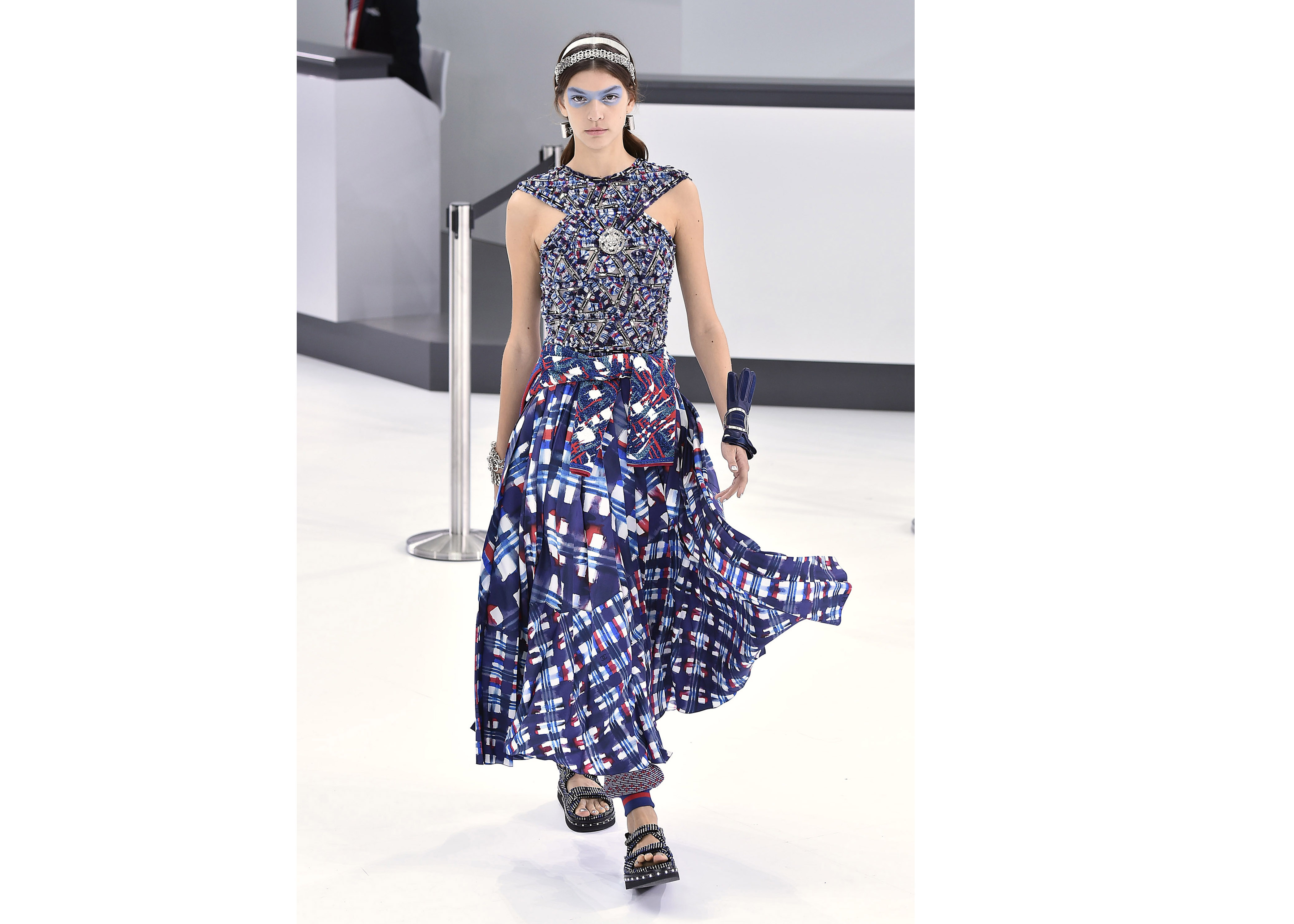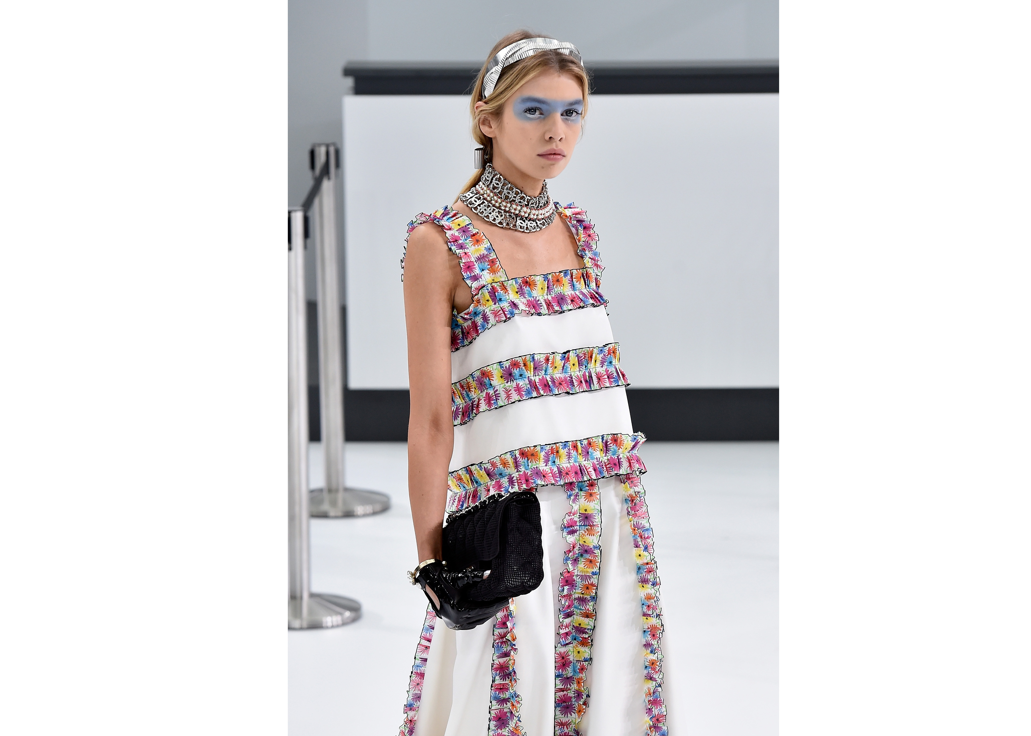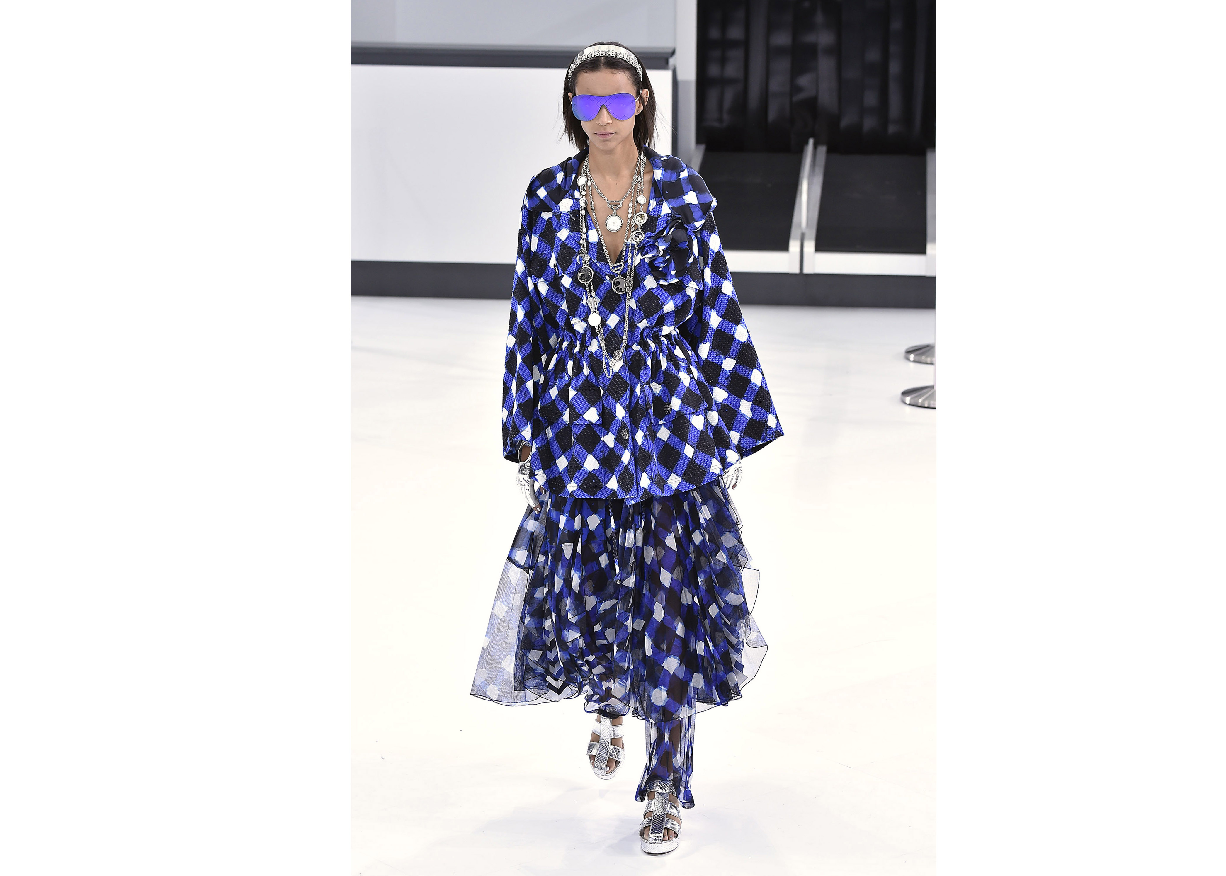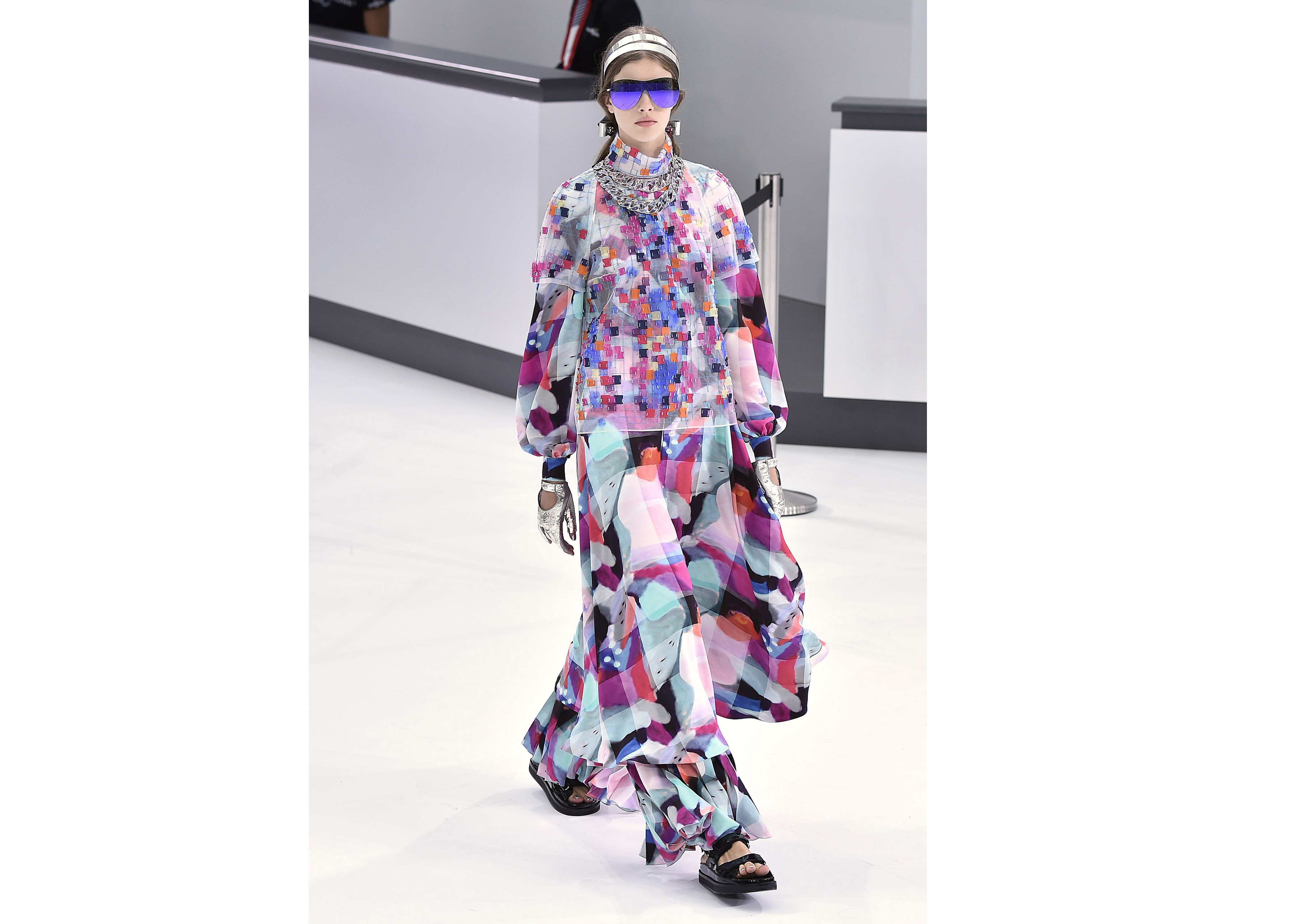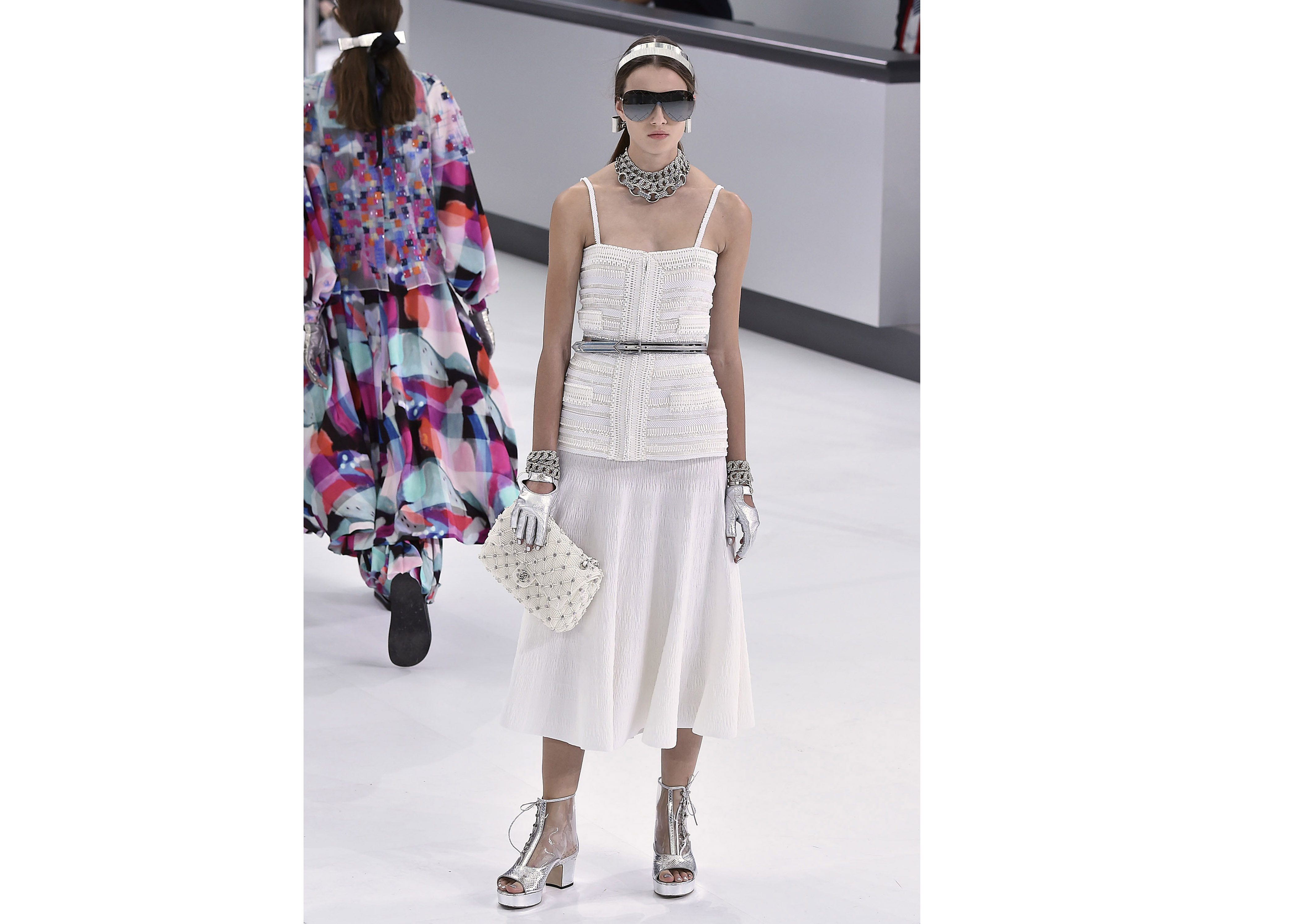 Se ainda restava alguma dúvida sobre a urgência escapista da temporada, Karl Lagerfeld a eliminou por completo. Para o verão 2016 da Chanel, criou um terminal de embarque em pleno Grand Palais e idealizou o uniforme da viajante de luxo sobre as lentes de Coco Chanel – ou quase. Este uniforme não é muito diferente daquele visto em qualquer aeroporto: calças soltas e confortáveis tipo moletom, suéter amarrado na cintura, jaquetas afastadas do corpo, sandálias baixas com meias e os óculos de sol à prova de jet-lag. Só que aqui, as pantalonas e seus casaquetos são de bouclé; a jogging pant, de cashmere; o vestidos amplos, de seda; e as rasteiras, decoradas com pérolas.