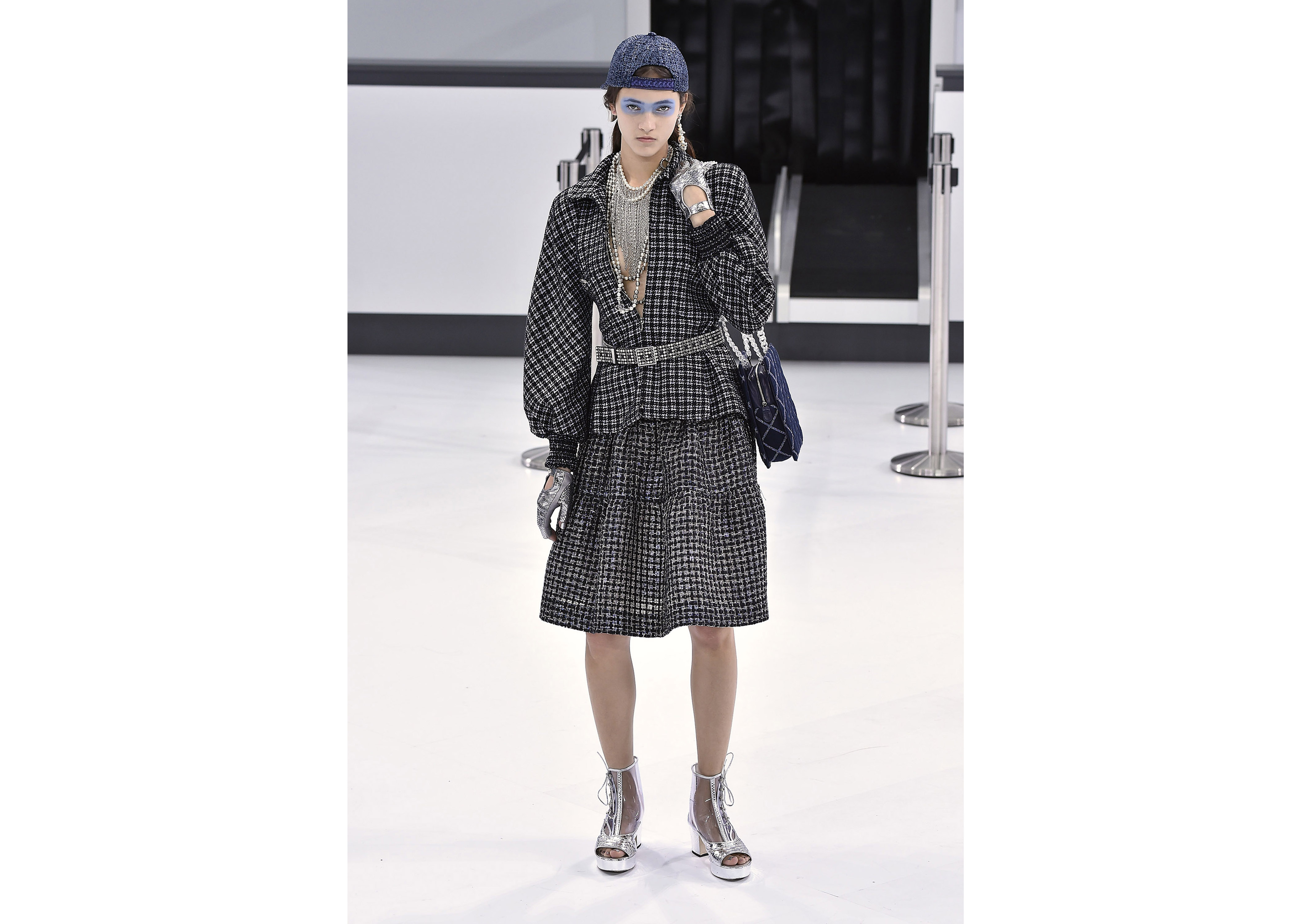 Se há algo que Karl sabe fazer como poucos é revestir de novidade o que é mais clássicos e atemporal. Com styling que bebe na fonte de street style, dá um banho de luxo nos mais kitsch, controversos e improváveis dos itens e cria toda uma nova gama de produtos-desejo (os aviadores metalizados, as papetes com alças de tweed, os bonés de baseball e as malas de viagem). Upgrade de closet e ainda sem esquecer daqueles que viram, automaticamente, à esquerda ao embarcar no avião Chanel. Aqueles que preferem à tradição dos tailleurs de corte reto e das pantalonas e jaquetas alongadas – e os tempos em que voar era algo glamouroso.