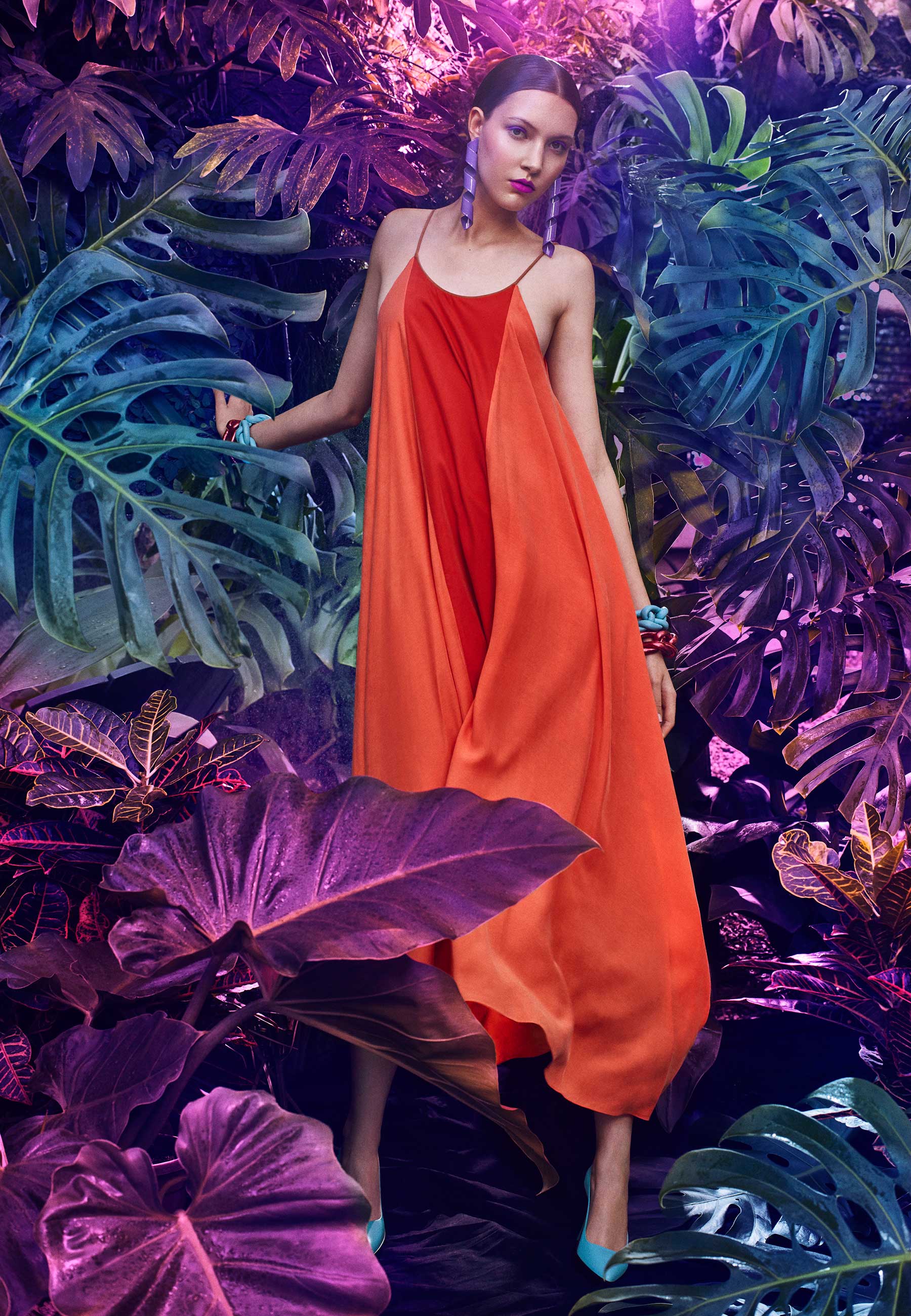 A cartela em tons vibrantes de verde, turquesa, rosa choque, vermelho e laranja permite jogos de cor inesperados – mas sofisticados.