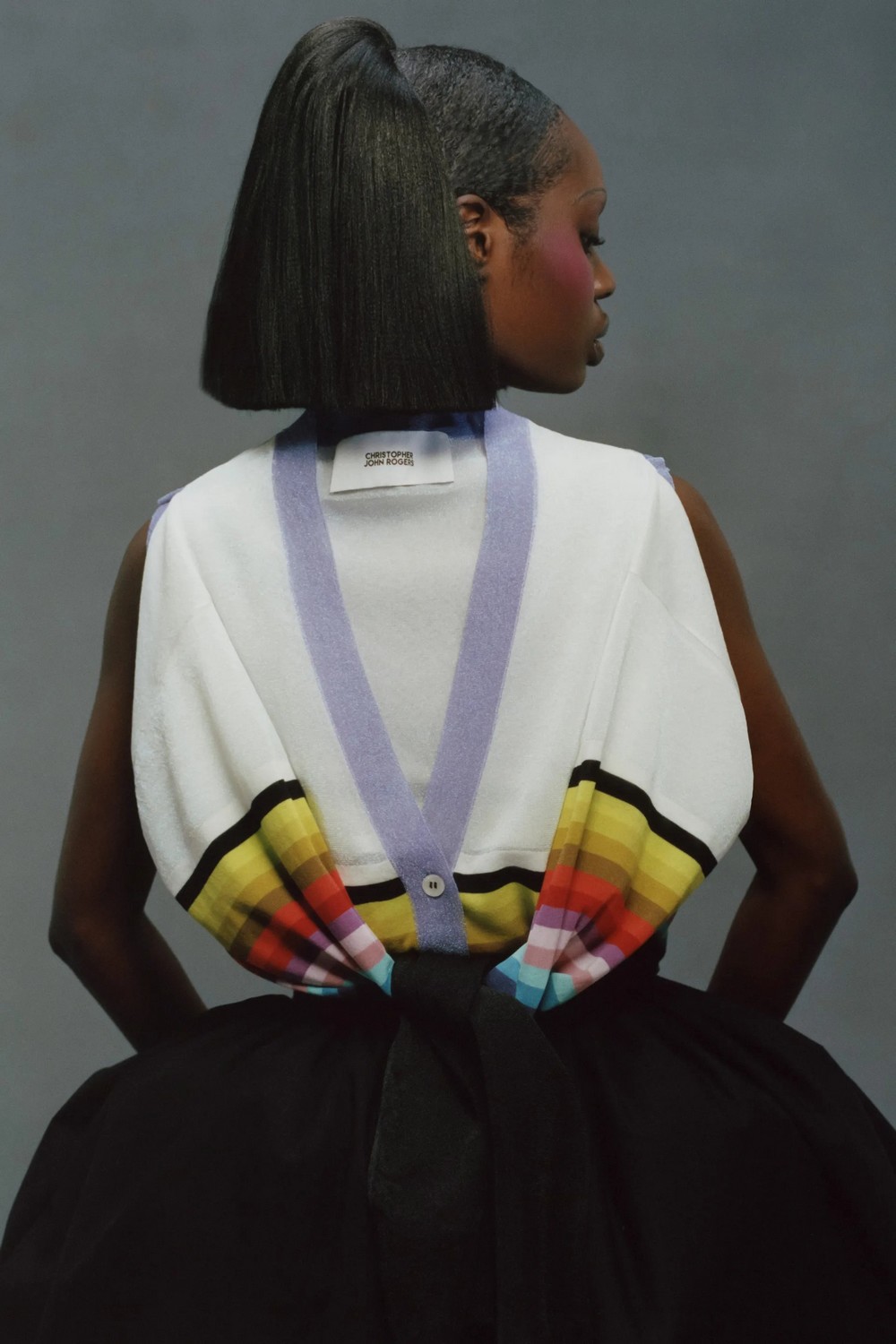 Quem acompanha o trabalho de Christopher John Rogers pode estranhar os primeiros looks do seu pre-fall 2023 – já que o estilista conhecido por suas estampas e cores intensas optou por criar visuais mais neutros para mostrar o poder de suas criações para além dos tons impactantes.
