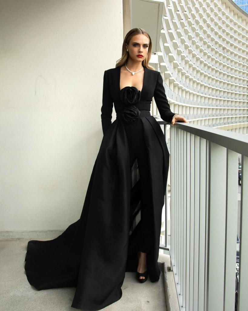 O clássico que resistiu aos testes do tempo, continuando um dos visuais sofisticados e cheios de personalidade. As silhuetas mais encontradas no estilo de Cara Delevingne são os ternos, blazers e calças de alfaiataria. Sempre aparecem com sucesso e construídos e estilizados de formas que imprimem a personalidade da atriz.