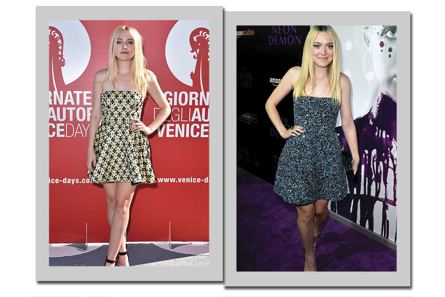 O vestido curto, tomara que caia e com saia rodada é um must para Dakota Fanning. E atenção: os modelos estampados ou bordados enriquecem o look.