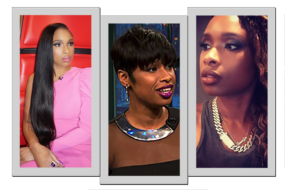 O cabelo de Jennifer Hudson é versátil: curto, longo liso ou crespo, a cantora sabe usar dos penteados para enriquecer seus looks. No make, o olho é esfumado e a boca têm licença para o vermelho.