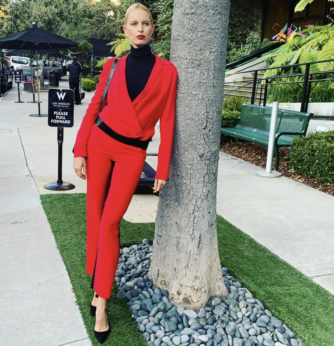 O blazer é peça must-have no closet dos fashionistas. E Karolina kurkova aposta no cinto para arrematar o look.