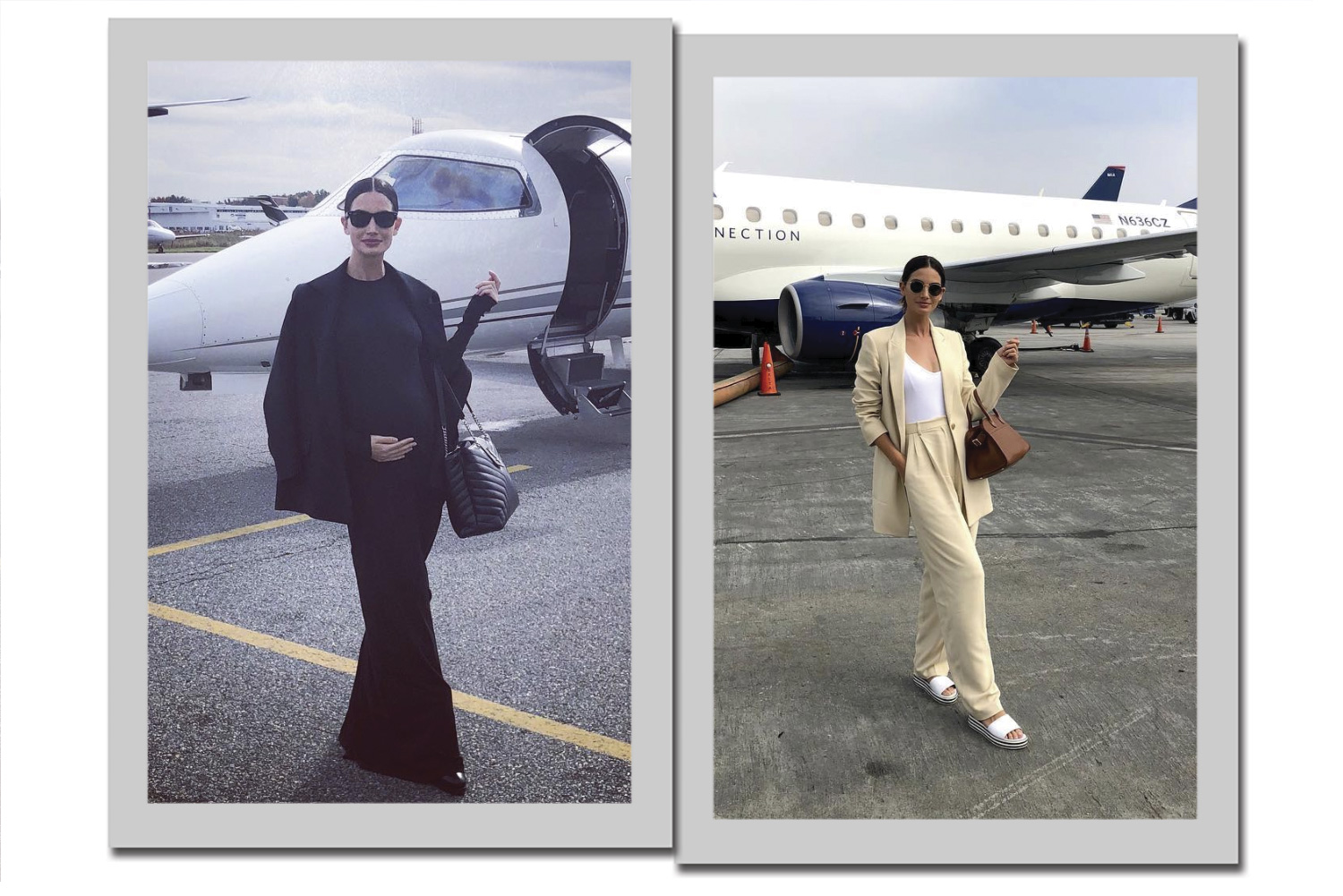 O look aeroporto da modelo é chique! A combinação blazer e calça é confortável e garante elegância, principalmente quando montado no all black ou no bege e branco. Óculos escuros são acessórios must have para qualquer viajante, além de arrematarem o visual.