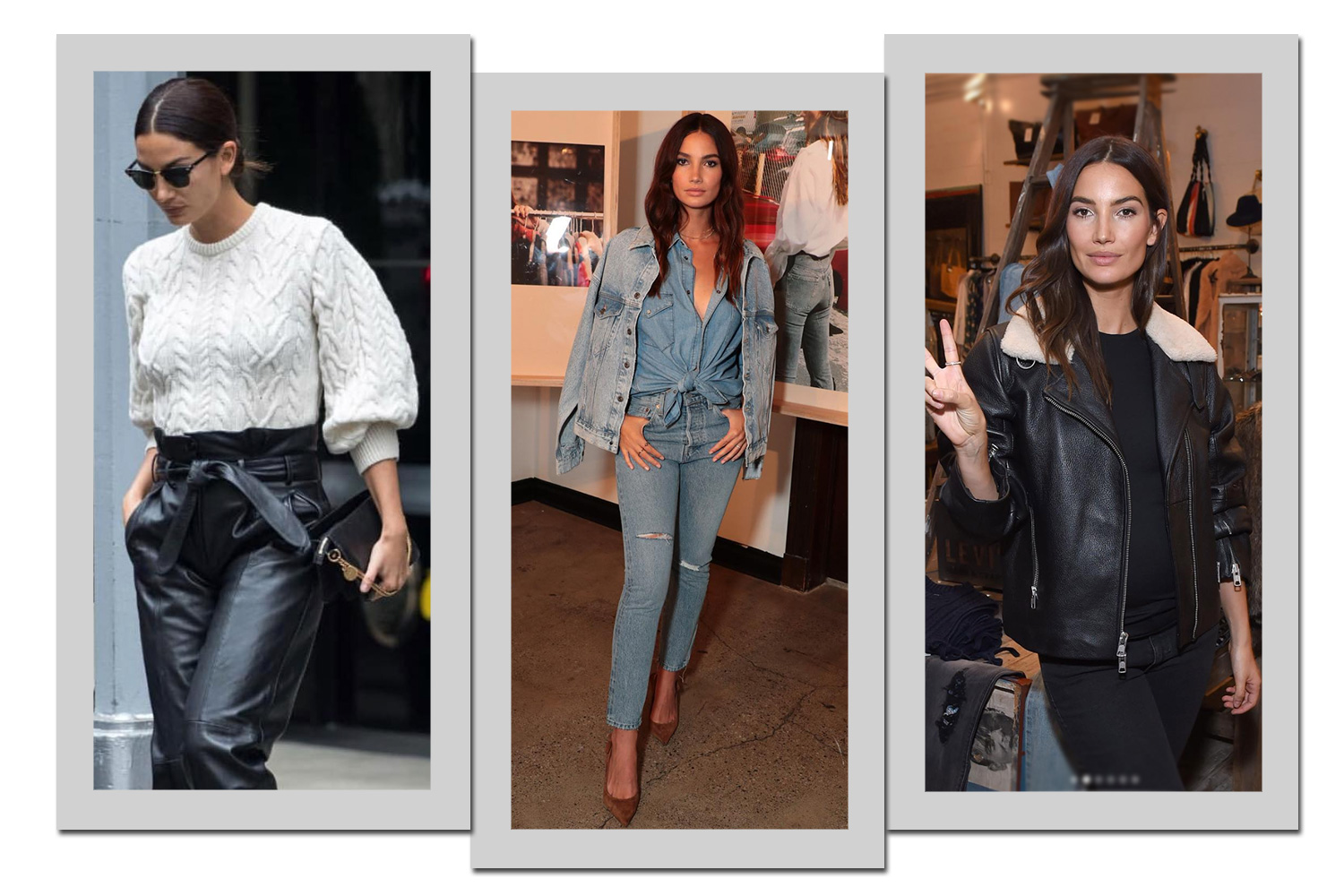 No street style, Lily Aldridge aposta no clássico: preto e branco ou all jeans. O look casaco de lã e calça de couro é a pedida certa para acertar no visual descontraído e chic. O all jeans cabe em todas as situações e garante informação de moda. E a jaqueta de couro com gola de pelúcia bege é uma peça americana que não pode faltar no closet das fashionistas práticas.