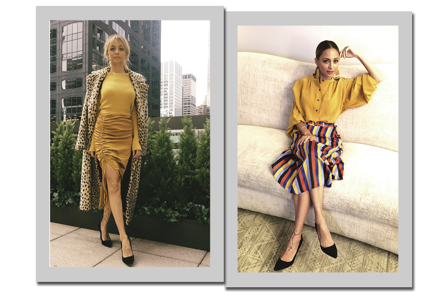 4. A socialite usa o amarelo como ponto de luz. E ela não tem medo de ousar: o casaco de onça e a saia listrada são peças que enriquecem o visual e vibram em contraste com o yellow fever.