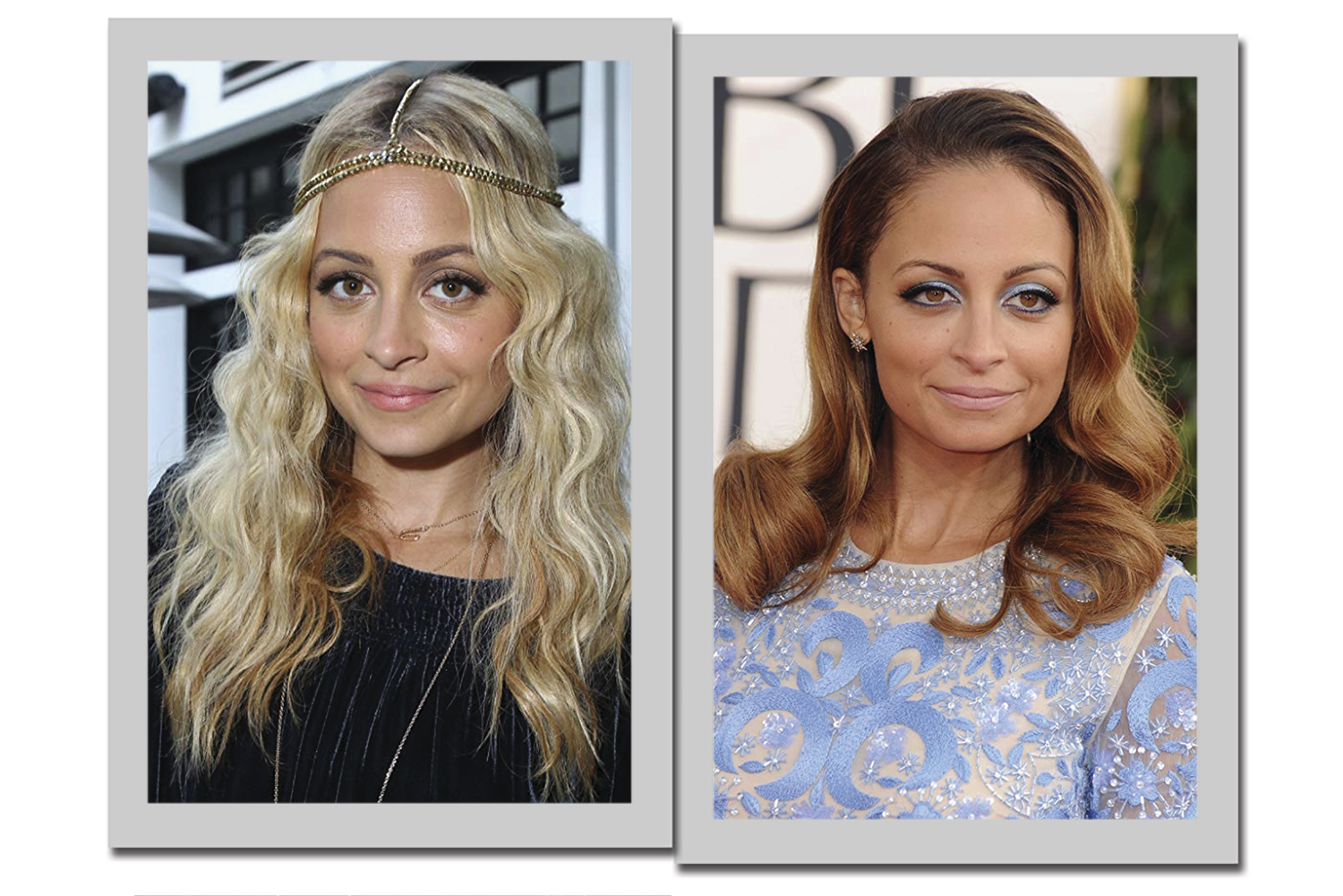 5. Loira ou morena, Nicole Richie opta por acessórios para arrematar o visual. Em ocasiões que pedem por um penteado mais clássico, ela escolhe pelo cabelo cheio. E, para não esquecer seu estilo, a sombra azul entra como detalhe ousadinho. Lápis preto sempre, com ou sem sombra. E lábios nude são sua marca registrada.