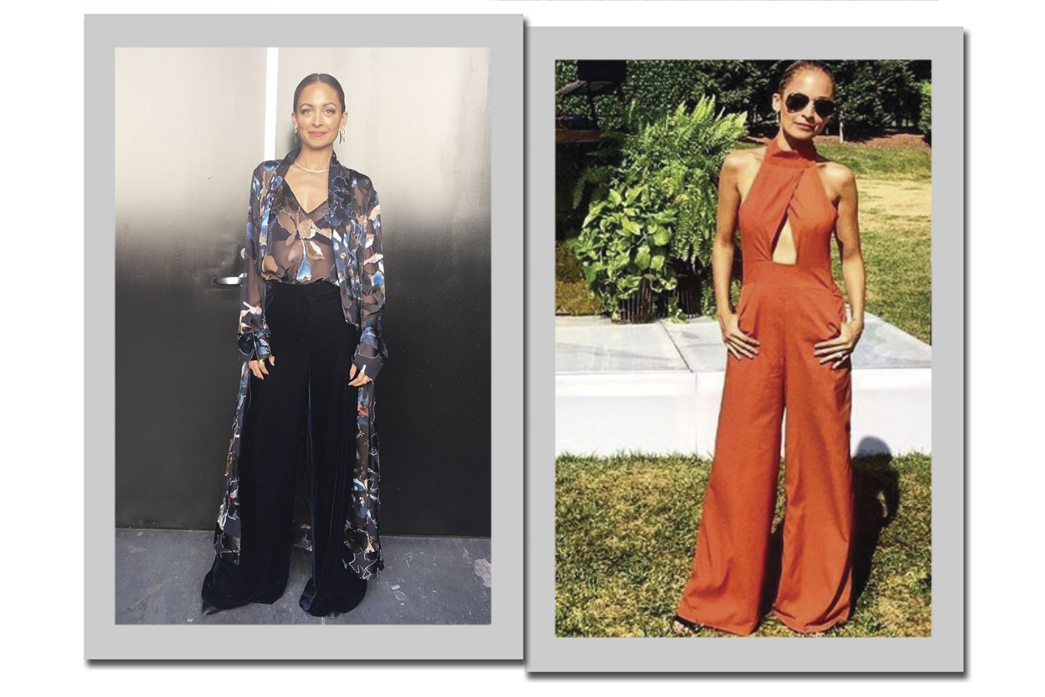 2. Sexy sem ser vulgar: a calça azul-marinho equilibrou a transparência da camisa floral. De macacão laranja, com recorte nadador, Nicole Richie garante conforto, elegância e sensualidade.