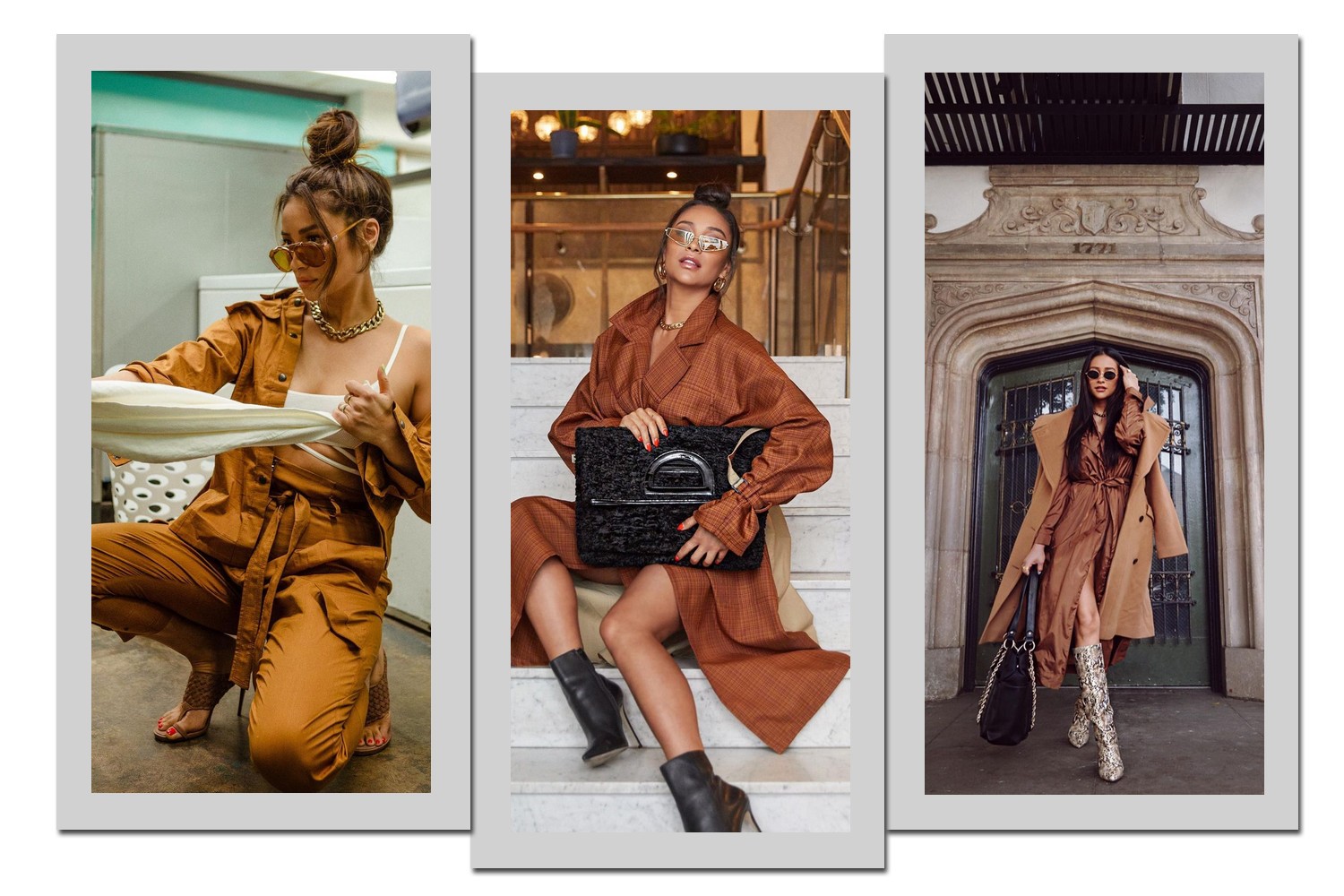 Uma das cores de preferidas de Shay Mitchell na hora de montar seus visuais é o camelo. O tom sóbrio é uma opção extremamente elegante para substituir cores clássicas, como marrom e branco. A atriz costuma montar visuais com mais de uma peça da mesma cor, o que pode ser uma boa substituição para o all black.