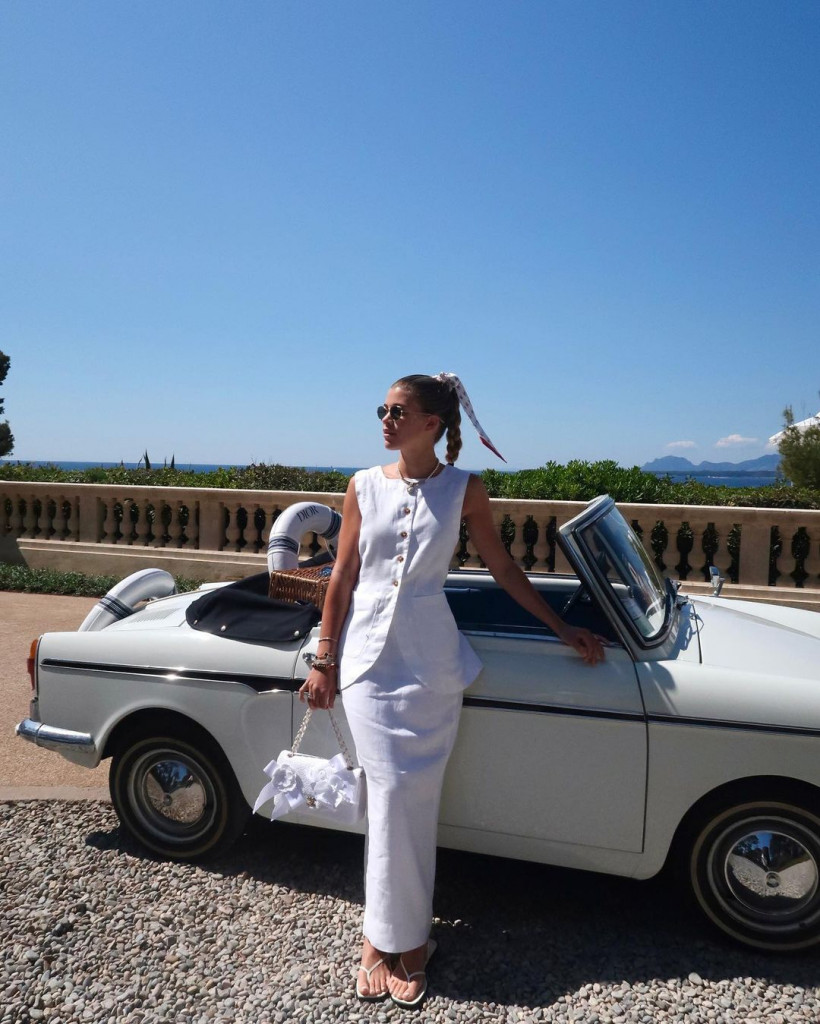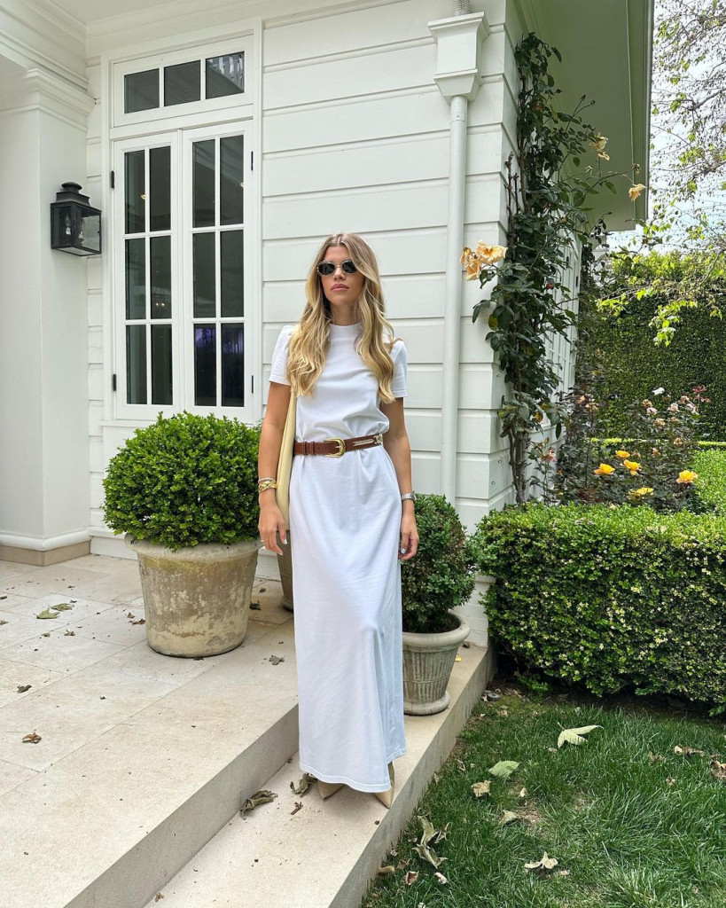 Seu casamento gerou expectativa nas redes sociais, desde os looks de noiva até os visuais para as festas que acompanharam a cerimônia. Mesmo com todo buzz em torno de seu dia especial, Sofia não esqueceu do visual monocromático branco para o dia-a-dia. Inclusive para sua lua de mel, ela optou por peças de linho em versão praiana, como também um vestidinho de tweed branco e acessórios como um cinto caramelo e bolsa tote.