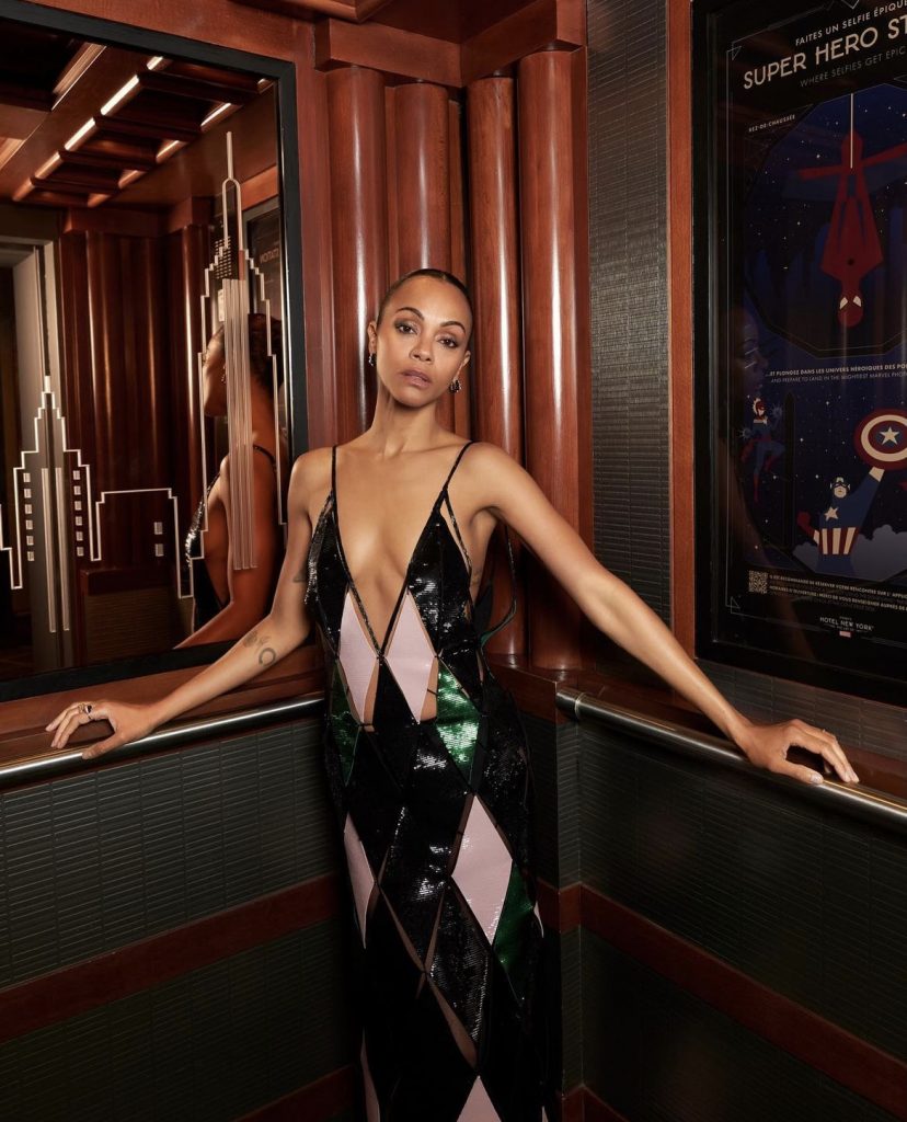 Zoe Saldaña sabe acentuar sua beleza natural – isso fica claro com o simples fato de que ela se mostra deslumbrante toda vez em que faz aparições públicas. Um de seus segredos é ter a coragem de ousar com detalhes que realçam o corpo, como grandes decotes sensuais e modernos. Esses looks criam uma aparência elegante e sofisticada ao realçar a linha do pescoço e dos ombros, além de adicionarem um toque de sensualidade e refinamento ao visual.