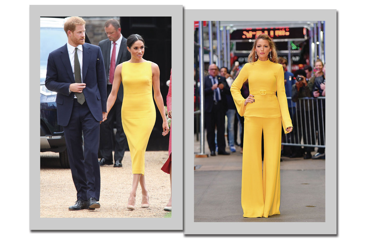 É a cor solar da vez! Meghan Markle fez história fashion com um tubinho amarelo do estilista Brandon Maxwell, e todo mundo está usando: Blake Lively já tem seu look.