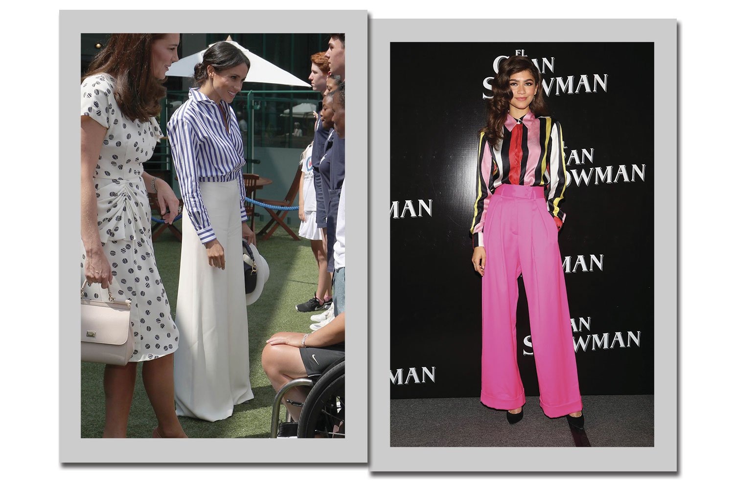 Clássico dos anos 1990, a pantalona está de volta! Ela pode ser lisa, como a de Meghan Markle; ou com pregas, como a de Zendaya.