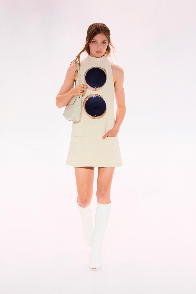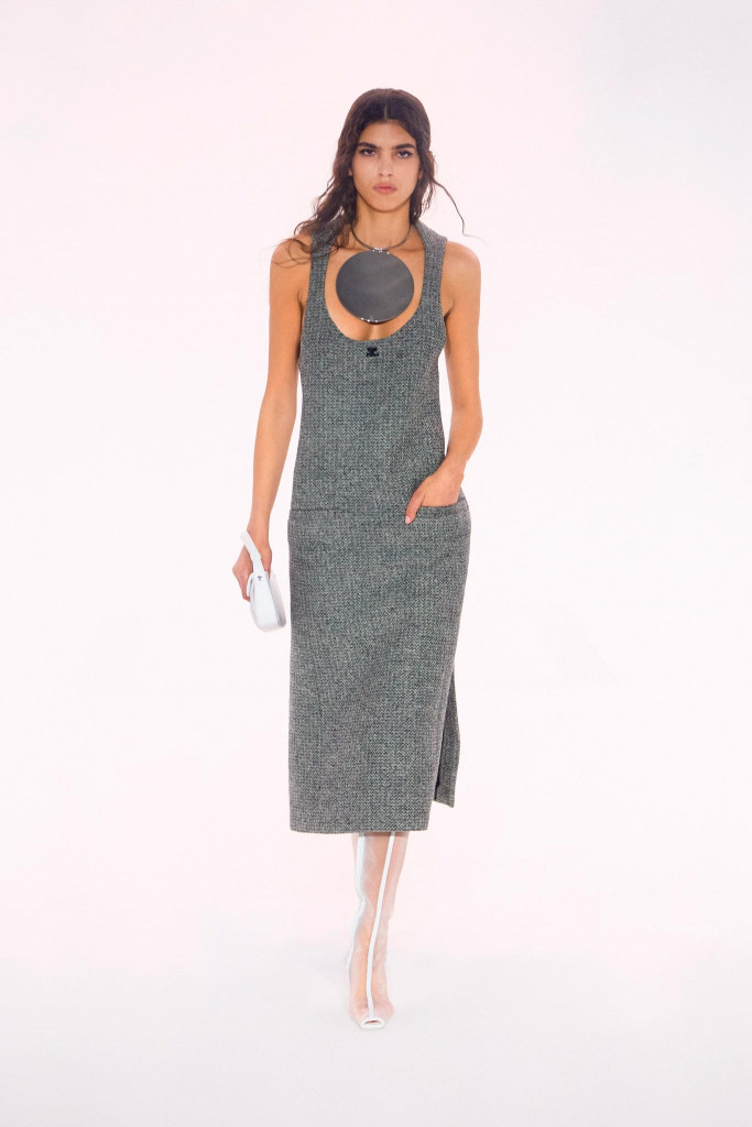 A coleção de inverno 2023 de Nicolas Di Felice para Courrèges focou em fumaça e nos espelhos. A fumaça era bombeada por aberturas no chão do local do desfile, uma caixa branca em sintonia com as raízes da Era Espacial da grife, enquanto o convite do show era um disco espelhado que acabou sendo um teaser para o que vinha à passarela: o círculo em evidência.