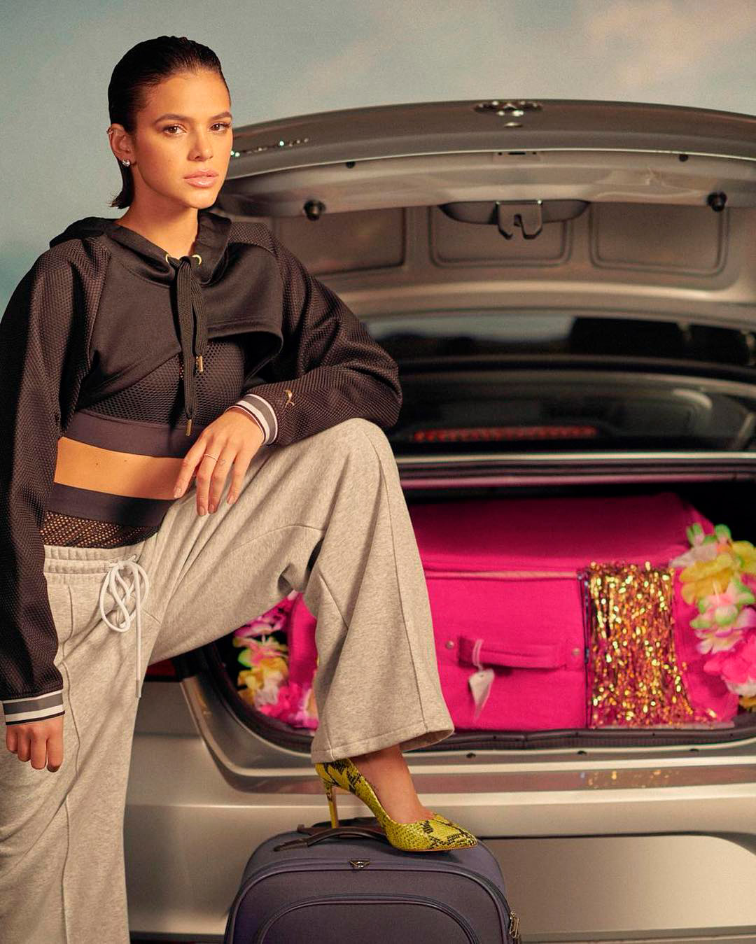 Bruna Marquezine aposta no moletom de cintura baixa, com a calcinha tipo boxer à mostra – Foto: Reprodução/Instagram/@brunamarquezine