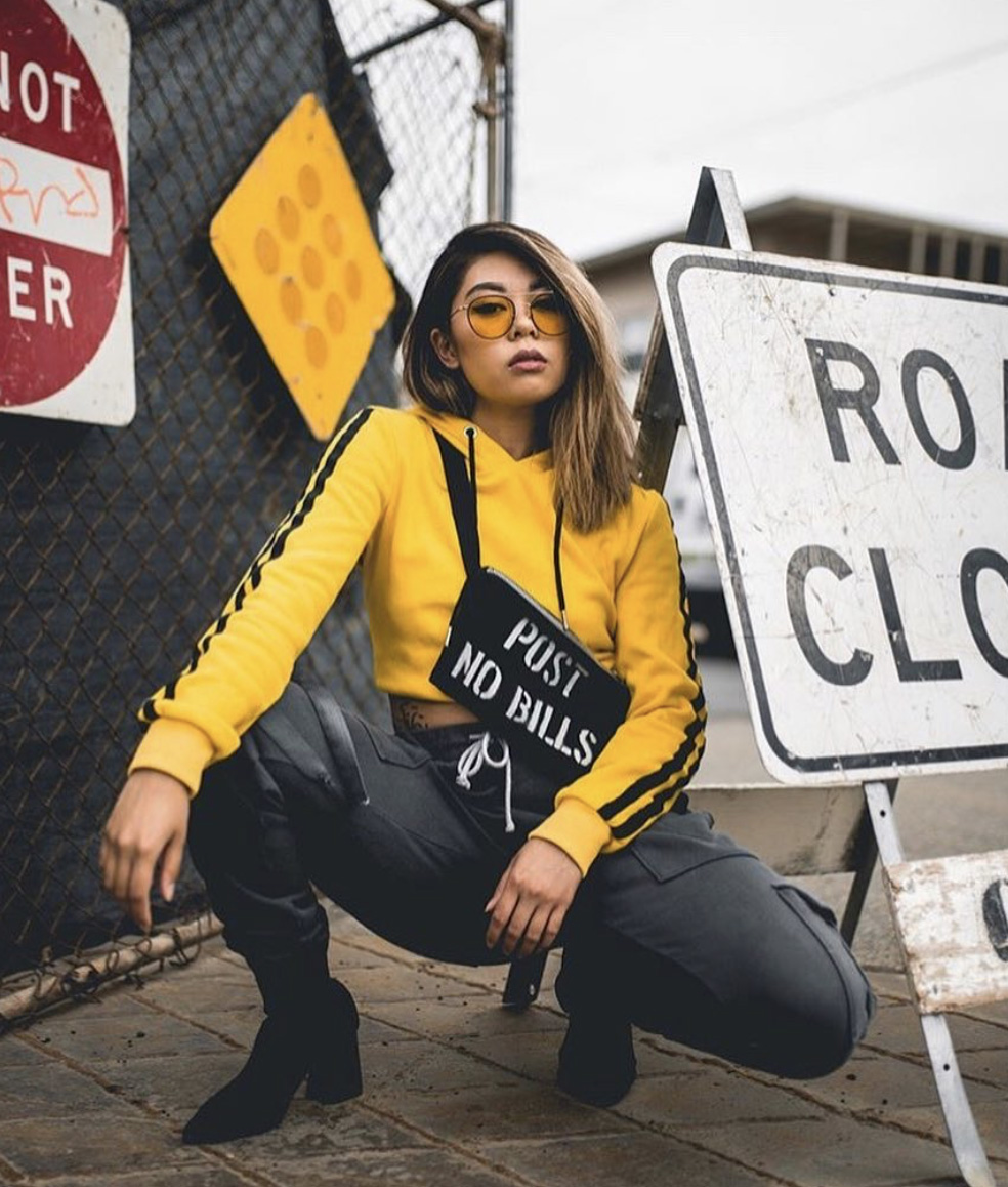 O amarelo vibra ainda mais quando contrastado com o cinza. É uma opção mais leve do que misturar a cor com o preto. Alegra o visual e cria um ponto de luz no look.