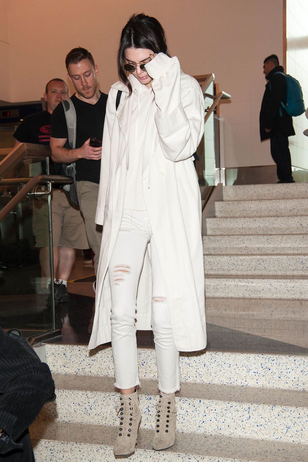 Como o visual de Kendall Jenner, que usa o look total white misturando jeans e moletom – é chique e casual.