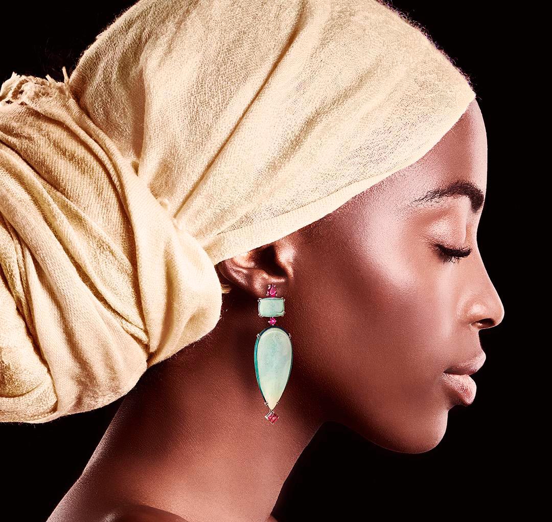 Ela começou trabalhando com prata e se encontrou na junção do ouro com pedras de alto valor – muitas delas saídas do terreno brasileiro, que ela define poeticamente, como um “arco-íris de possibilidades”.