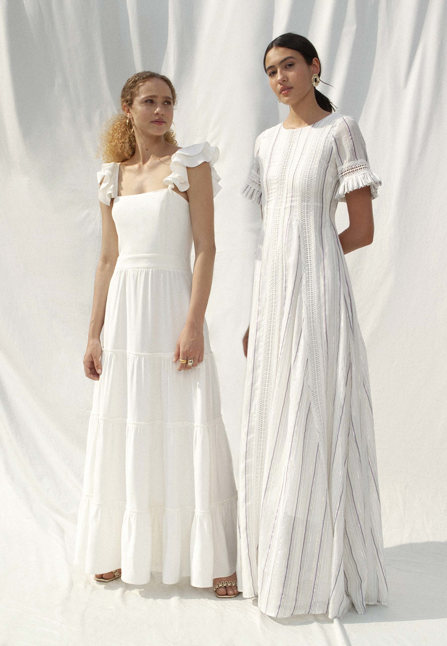 Desde vestidos aos tops e bottoms, a coleção vem como um respiro após os últimos anos, com modelagens fluídas, românticas, e tecidos leves.