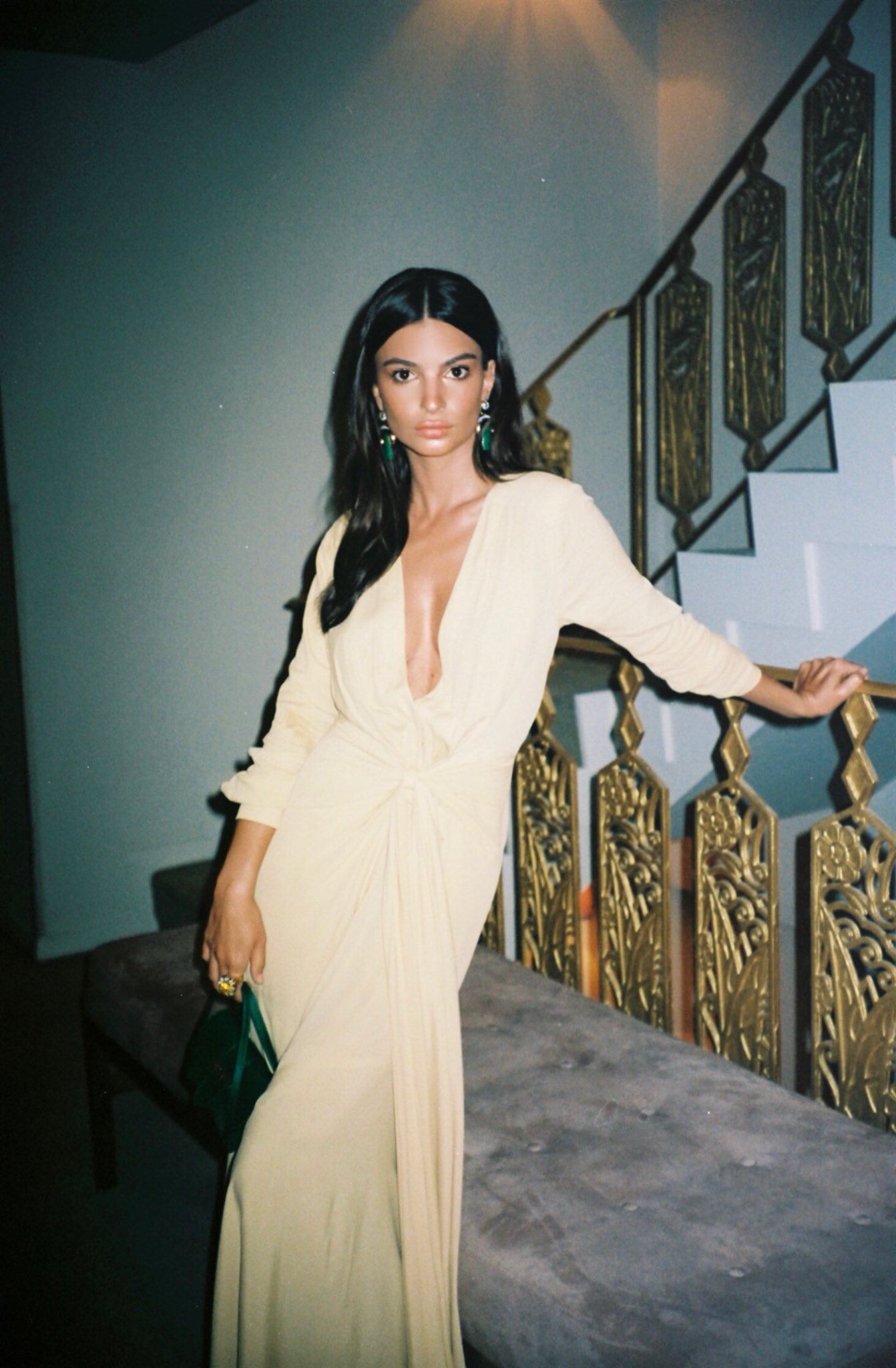 Emily Ratajkowski já possui o novo modelo, Le sac Minho, em verde escuro: