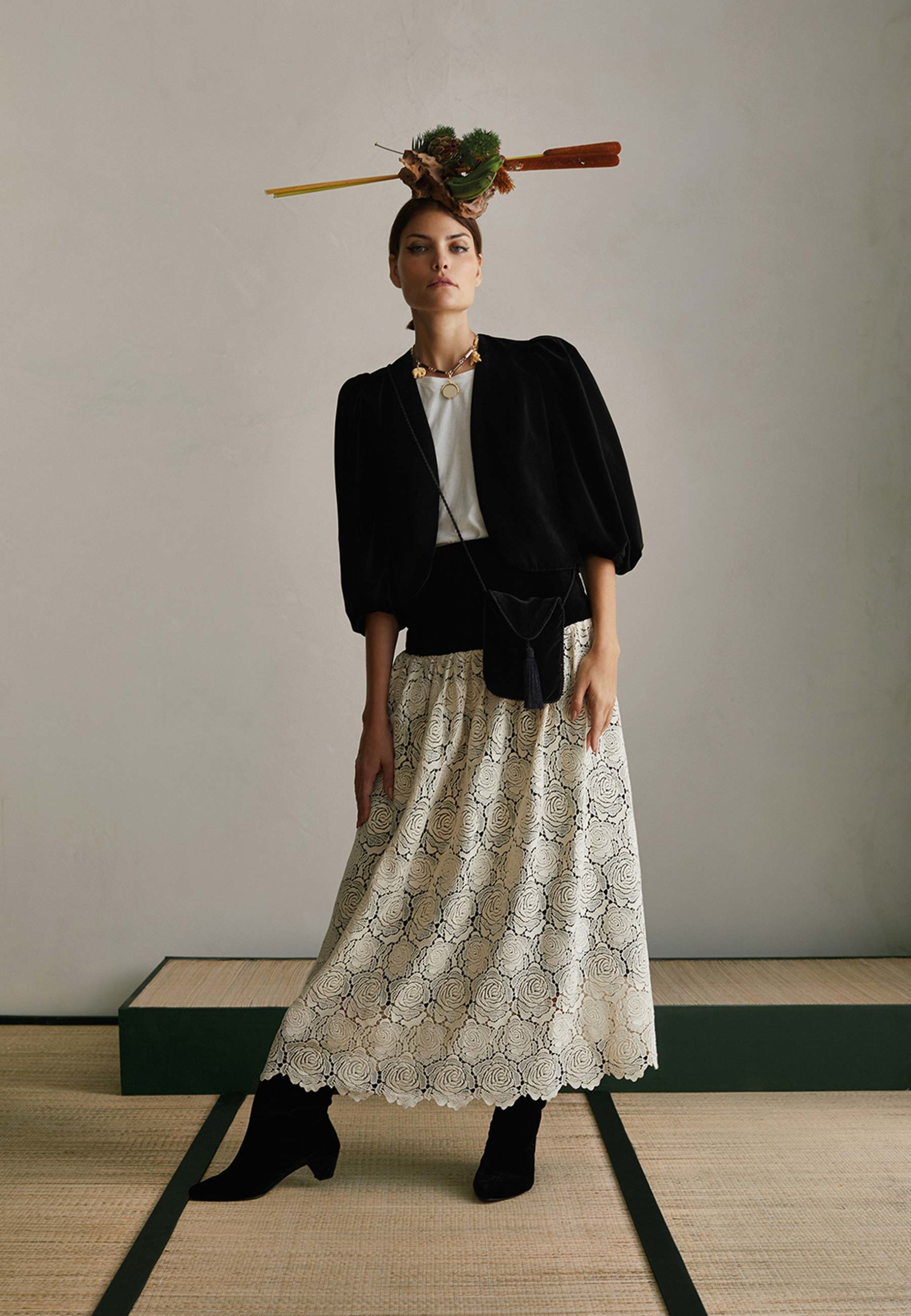 Em referência a arte milenar de composição de flores, a Ikebana, o alto-inverno 2020 da marca estuda o floral em diferentes formas, como nas estampas exclusivas, florais bordados e tecidos nobres trabalhados com transparência, sempre valorizados por shapes que inspiram movimento.