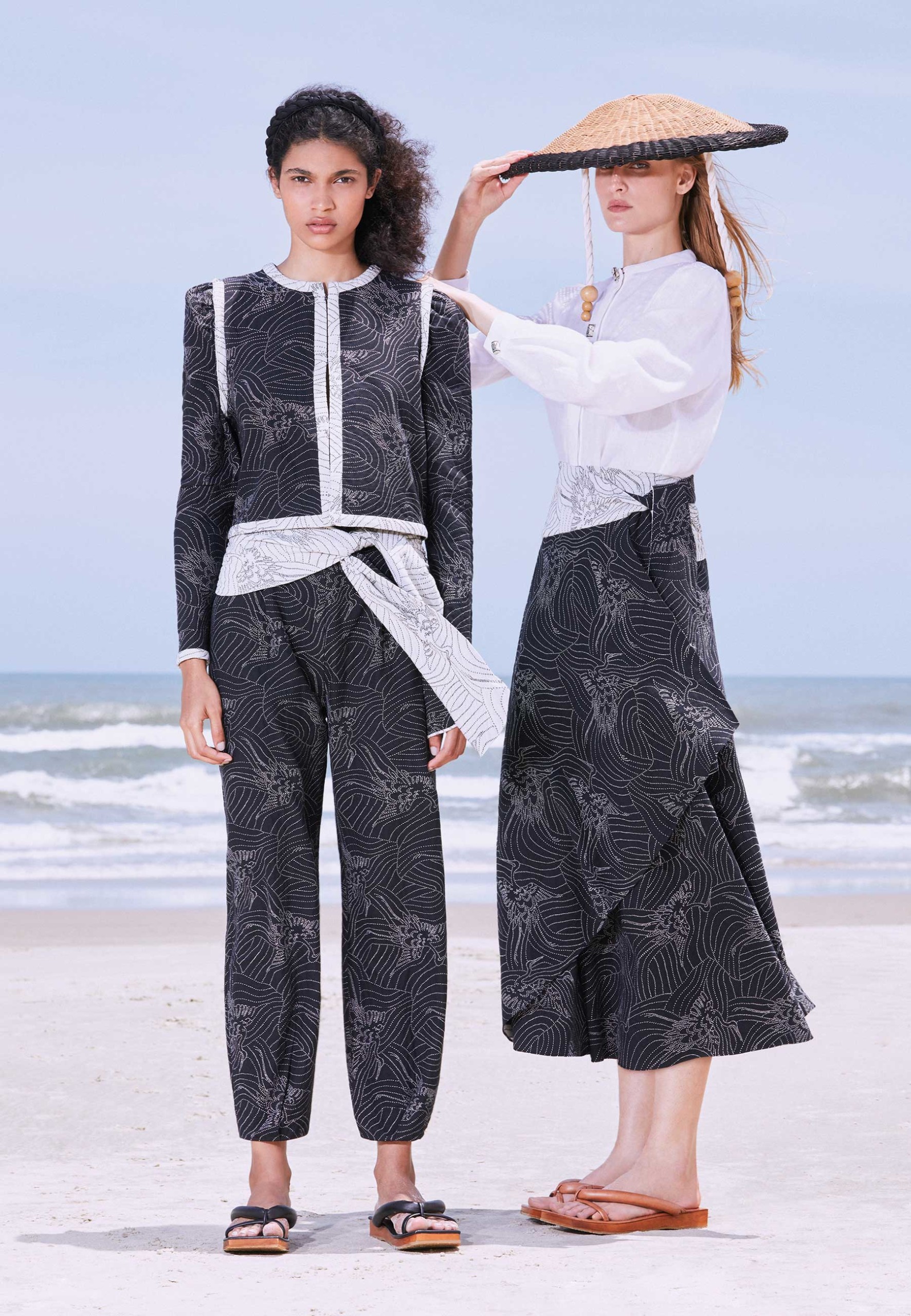 Destaque para os conjuntos de túnicas longas em tecidos delicados e fluídos, assim como as calças saruel inspiradas nas linhas orientais. A coleção traz, ainda, peças sustentáveis, como as t-shirts produzidas a partir de algodão ecológico com tingimento natural.