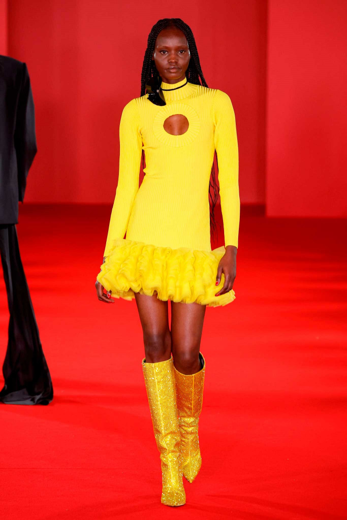 Marlene Dietrich e o glamour do século 20 dominaram o mood board de David Koma para o inverno 2023 – com um toque de dominatrix aqui e ali.