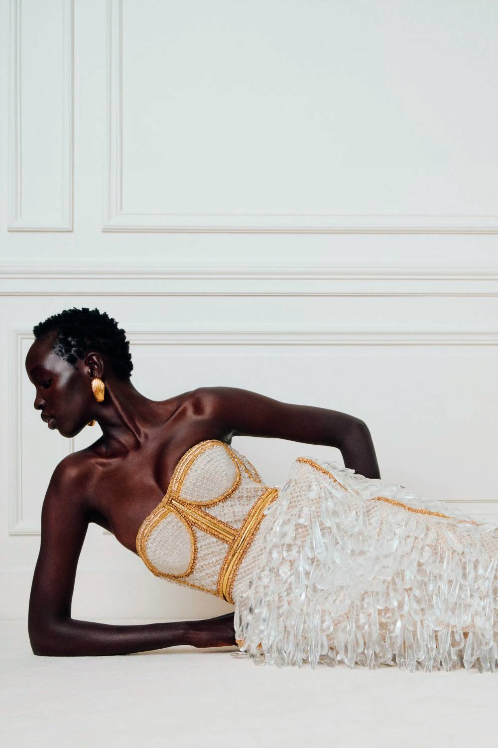 Por que você não… deita e rola em cristais maximalistas, como no look da Balmain? Pendurar no lustre já é tão démodé… – Foto: Divulgação