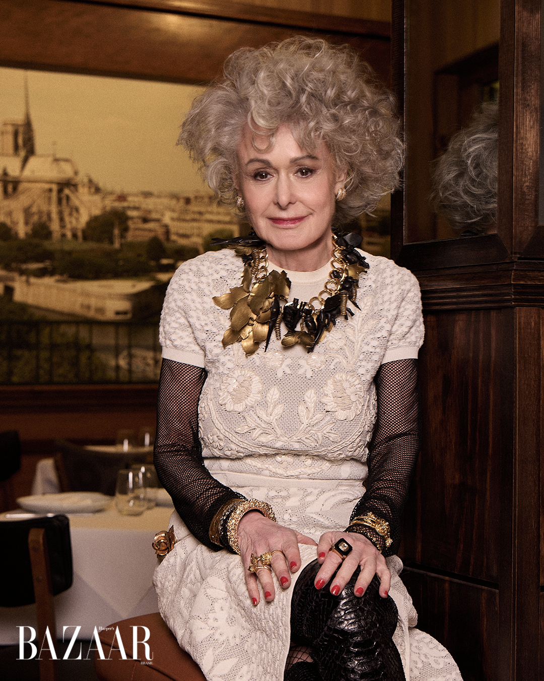 “Você acha que eu estou anormal?”, pergunta, antes de responder a si mesma: “Acho que estou completamente dentro do contexto.” Sobre a saia (de couro verde envernizado), também tem considerações importantes, que faz com uma piscadela – “eu mostro minhas pernas porque sei que são bonitas. Já os braços, não mostro por nada. É bom senso, sabe? Quer um café?”.