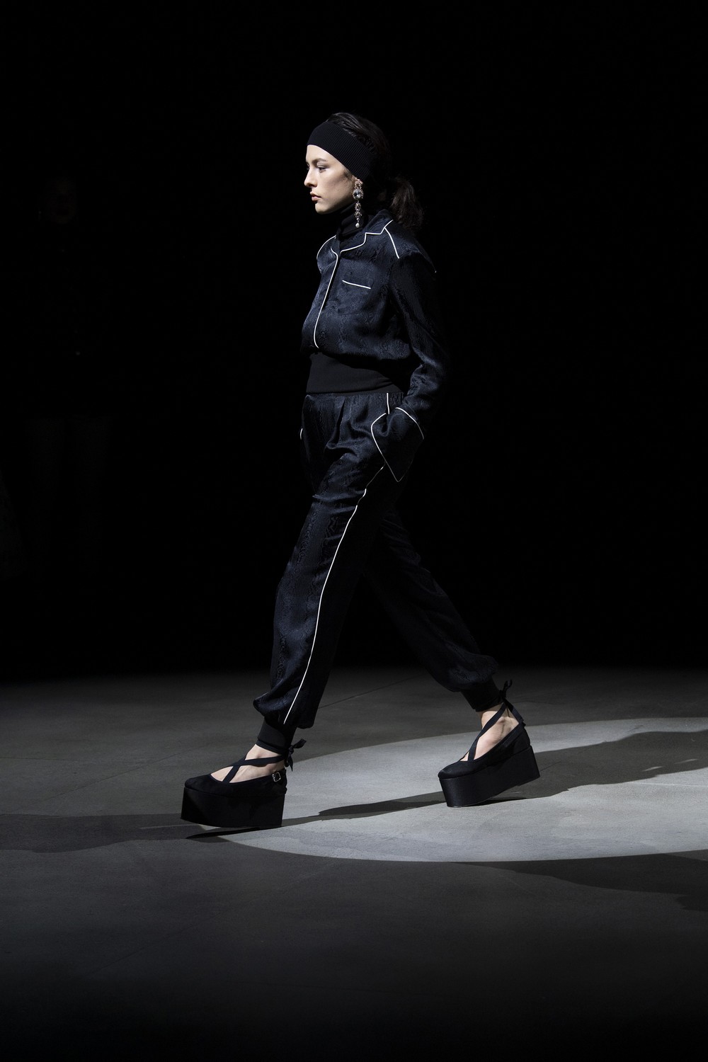 O ápice do conforto, o pijama foi inspiração de um dos looks – fazendo referência com a dualidade da moda atual.