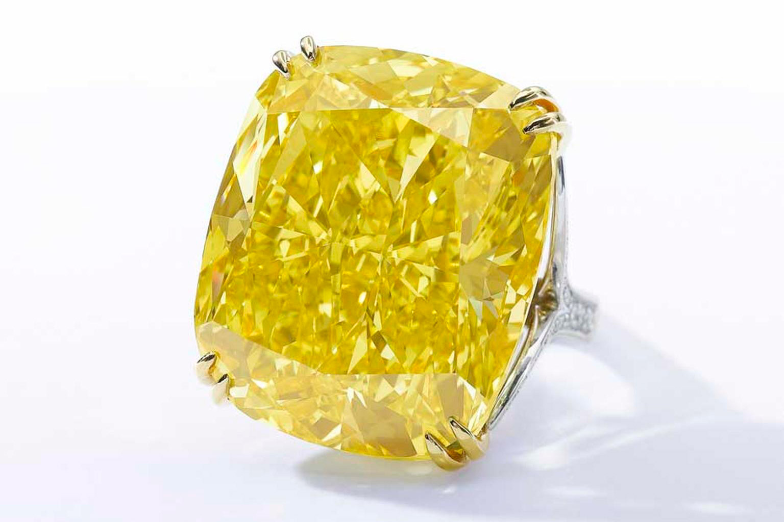 Em relação a diamantes amarelos, esse é o mais caro de todos os tempos. Vendido em um leilão em Genebra de Sotheby de Magnificent Jewels e Noble Jewels, esse anel parece como um pequeno narciso tanto em cor quanto em formato, e conta com dois diamantes nas laterais, totalizando mais de 100 quilates. Preço: US$ 16,3 milhões (R$ 62,5 milhões).
