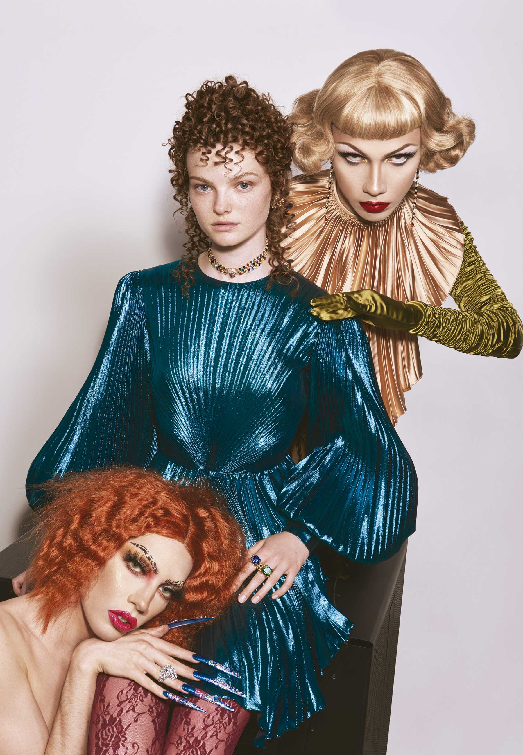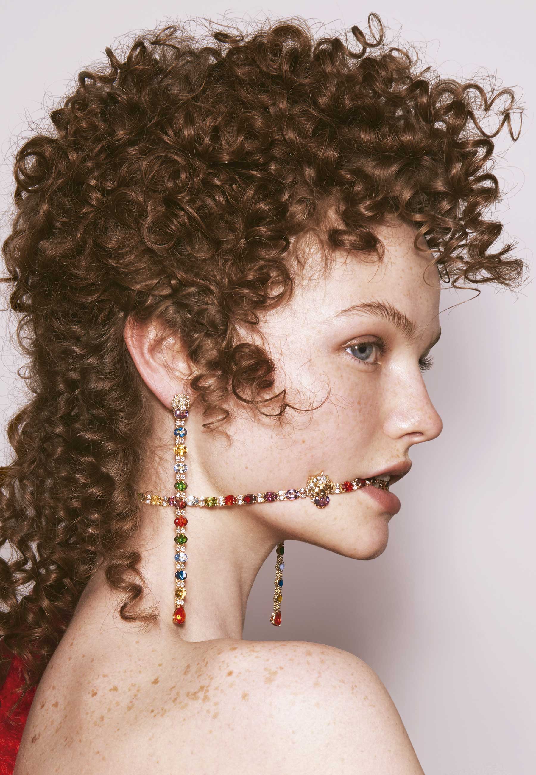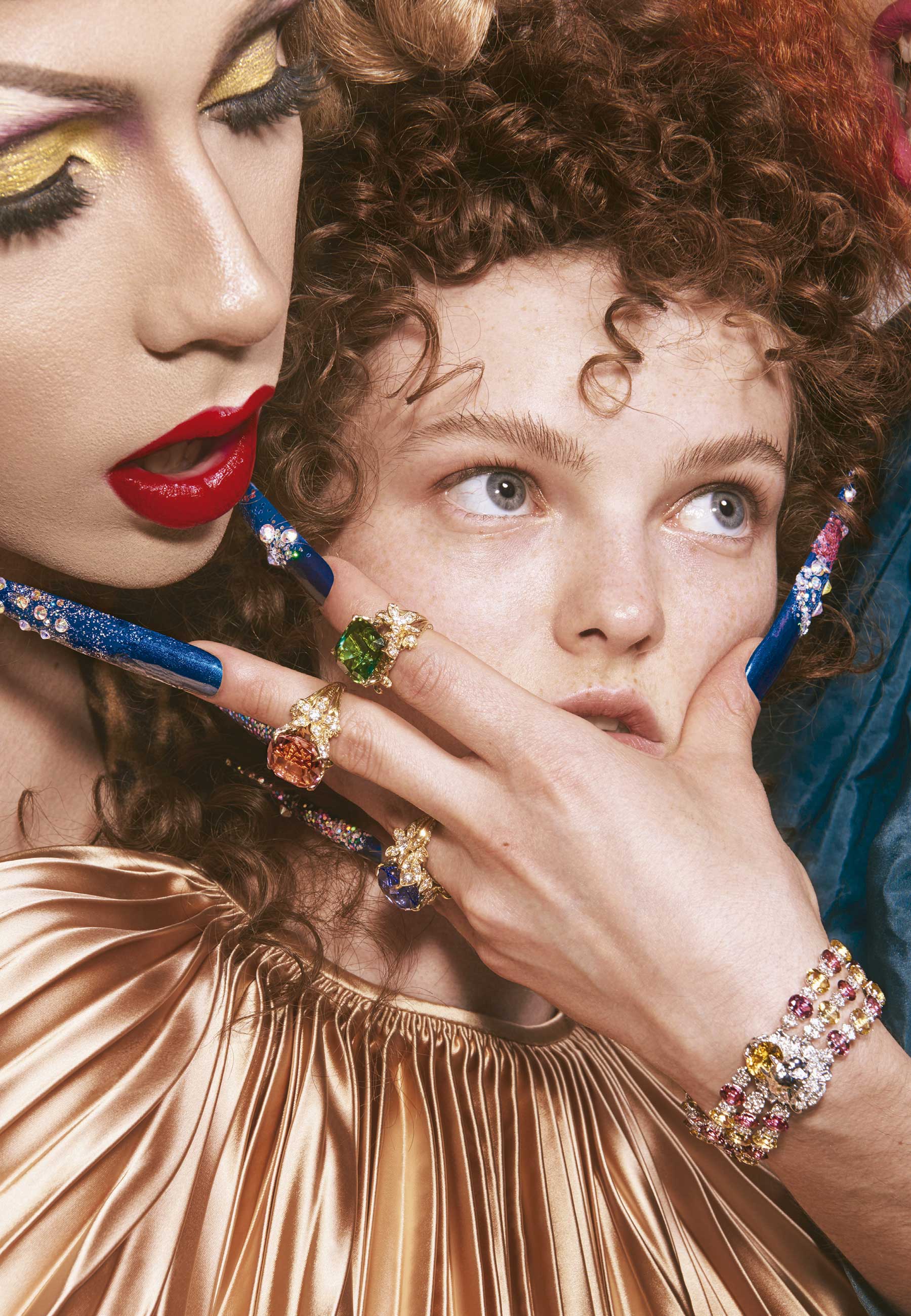 Amanda usa anel em ouro branco e diamantes. Ola usa brincos em ouro amarelo, rodolitas, opalas, topázios, ametistas, berilos amarelos e diamantes; gargantilha em ouro amarelo, ametista, rodolita, granadas, opalas, peridotos, berilos amarelos, topázio e diamantes; e anel em ouro amarelo com turmalina e diamantes. Lilly usa brincos em ouro amarelo, ametistas escuras, granadas, opalas, topázios, berilos amarelos e diamantes, tudo Gucci High Jewelry – Foto: Karel Losenicky, com edição de moda de Cori Amenta, edição executiva de Filipa Bleck, maquiagem de Giuseppe Giarratana, cabelo de Barbara Bertuzzi, manicure de Annarel Innocente Furina, assistência de fotografia de Roberto Grandi e pós-produção de Alessandra Distaso