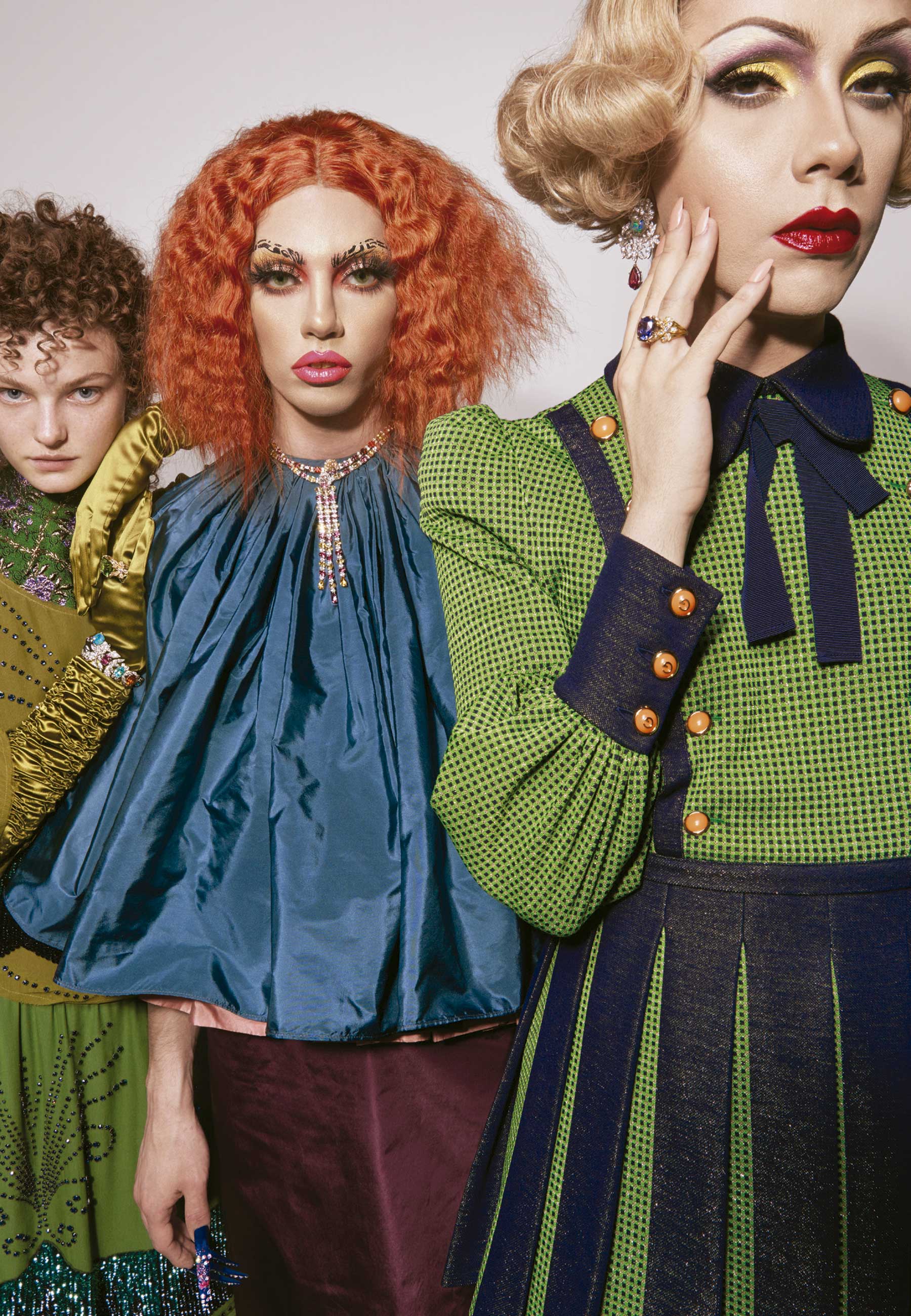 Lilly usa brincos em ouro branco, opalas verde-azuladas, espinelas vermelhas e diamantes; e anel em ouro amarelo com tanzanita e diamantes. Amanda usa colar com pingente em ouro branco, turmalinas rosas, berilos amarelos e diamantes; e colar em ouro amarelo, rodolita, granadas, topázio, opalas, berilos amarelos, peridotos, ametistas e diamantes. Ola usa pulseira em ouro branco, opala, safira amarela, turmalina paraíba, granada mandarim, turmalina azul, espinela, safira violeta, turmalina rosa, turmalina verde e diamantes; e anel em ouro amarelo com tanzanita e diamantes, tudo Gucci High Jewelry.