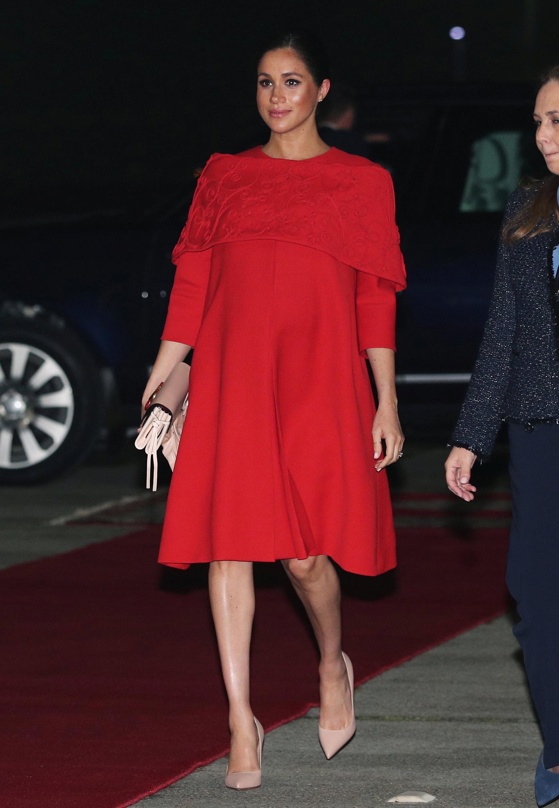 No mesmo dia, eles foram para uma recepção na casa do embaixador britânico em Marrocos, e Meghan arrasou com um vestido da francesa Dior feito sob medida para ela pela estilista da maison, Maria Grazia Chiuri.